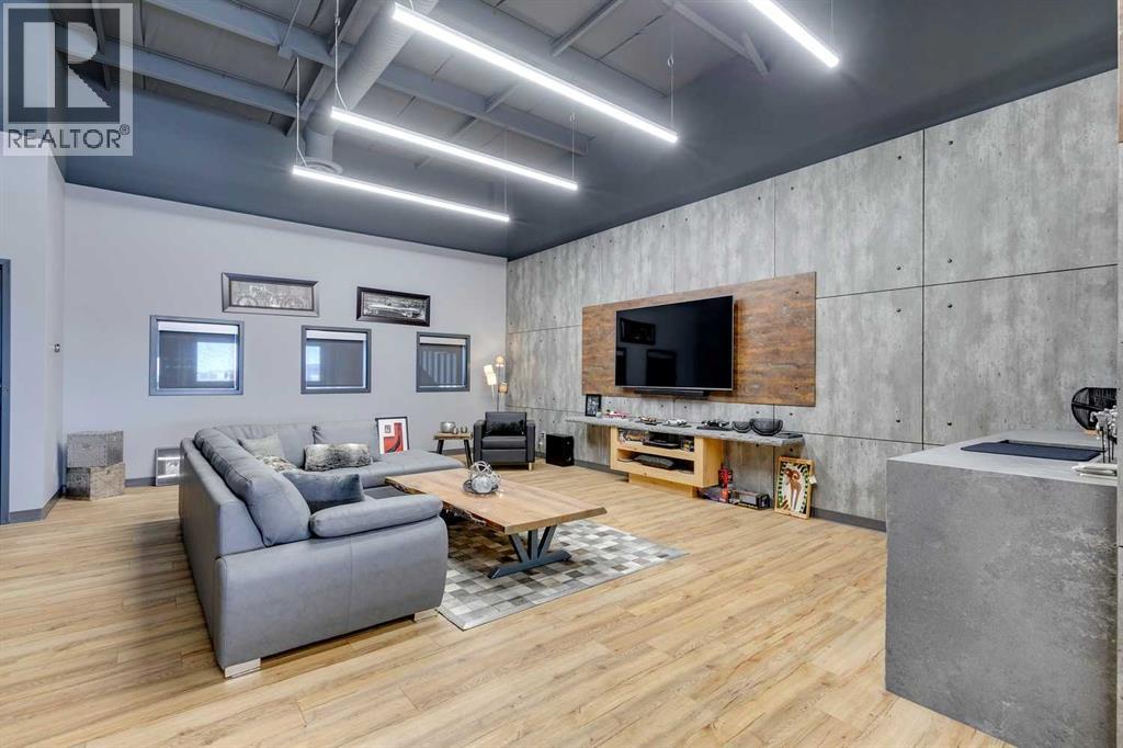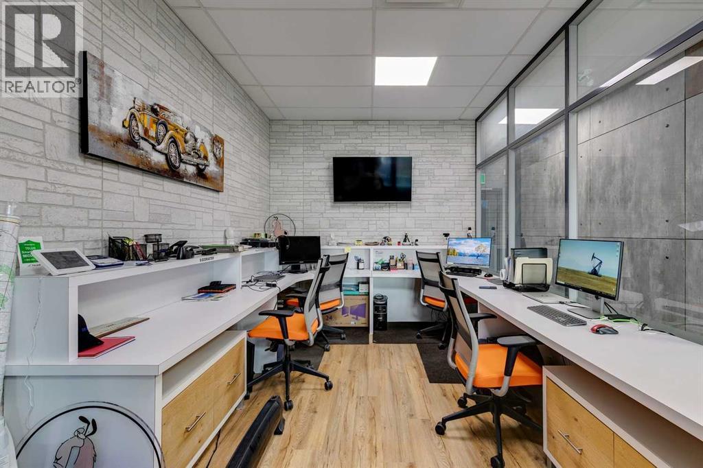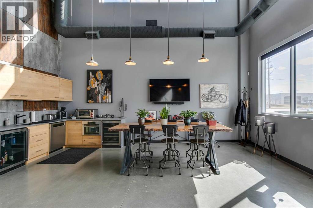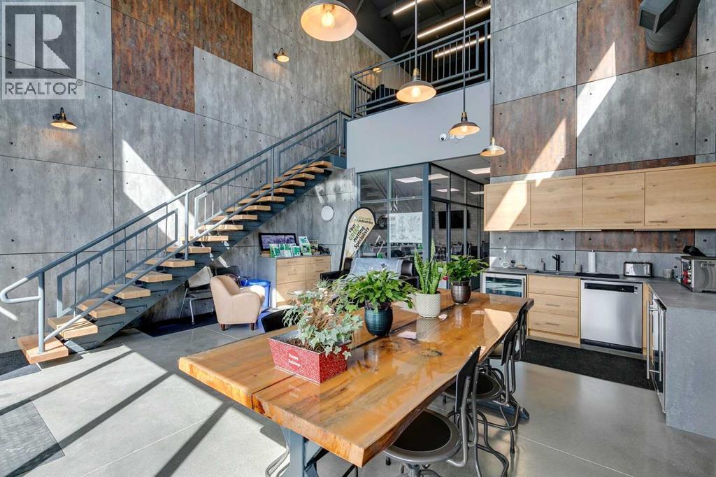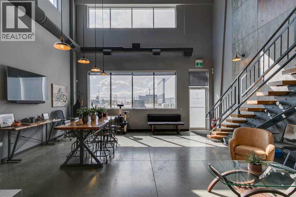 Exclusive turnkey industrial condo, ideally located 2 minutes north of Stoney Trail. Priced WELL below current market replacement cost. If you are serious about purchasing a luxury lifestyle industrial condo, this unit is worth consideration. In addition, this condo works very well as a functional and creative business workplace with an open space networking office with functional warehouse. The high attention to detail is evident in the construction and finishes throughout: steel and concrete second floor, multiple A/C and heating units, double compartment sump, custom cabinetry, custom floating stairs, executive washroom w/ shower, unique wall finishings, epoxy floor warehouse...the list goes on. All existing furnishings negotiable. Tours encouraged and available upon request. (id:55577)
