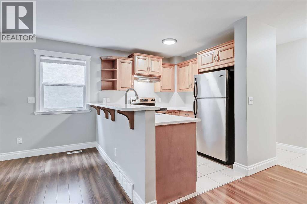 *VISIT MULTIMEDIA LINK FOR FULL DETAILS, INCLUDING IMMERSIVE 3D TOUR & FLOORPLANS!* STYLISH, AFFORDABLE, AND MOVE-IN READY! This Windsor Park townhome offers the perfect blend of lifestyle and convenience. With over 1,100 sq ft above grade, 2-beds, 3.5-baths, and a fully developed basement, this well-kept home offers fantastic value in a mature inner-city community known for its tree-lined streets, local parks, and convenient access to Chinook Centre, Britannia Plaza, and Macleod Trail’s many shops and restaurants — all with condo fees of just $175/month. This is an ideal opportunity for first-time homebuyers, young families, downsizers, or those seeking a flexible investment property who value both functionality and location. Inside, the tiled foyer with a handy coat closet opens into a bright living room featuring laminate floors, a cozy gas fireplace, and oversized windows overlooking the front yard. Natural light streams through the open-concept layout into the updated kitchen, complete with quartz countertops, bar seating, stainless steel appliances, dual sinks, and ample cabinetry. Just off the kitchen, a dedicated dining area with a designer light fixture offers the perfect place for dinner parties or casual family meals. At the back, a tiled mudroom and discreetly tucked-away 2pc powder room add everyday convenience. Upstairs, two spacious bedrooms each enjoy private 4pc ensuites. The primary retreat includes a walk-in closet with built-ins, while the second bedroom offers dual closets for added storage. Downstairs, the fully developed basement adds an additional 500 sq ft of flexible living space, featuring a large rec room with a built-in wet bar, another 4pc bathroom, and a generous laundry/storage area with full-sized appliances. A private, fully fenced front yard with a concrete patio creates the perfect outdoor escape, while an assigned paved parking stall with plug-in adds convenience in the winter. A recently updated roof in the complex adds peace of mind for years to come. Beyond the home itself, Windsor Park’s location is hard to beat. The surrounding area offers favourites like Lina’s Italian Market, Sunterra, Starbucks, Monogram Coffee, Village Ice Cream, and Native Tongues. Outdoor enthusiasts will appreciate quick access to Stanley Park, Sandy Beach, and the Elbow River pathways, while commuting is effortless with nearby bus routes, Chinook LRT, and major roadways including Macleod Trail, Glenmore, and Elbow Drive. This home combines a functional floorplan, desirable updates, and a location that puts everything within reach—making it a standout choice in Windsor Park. Schedule your private showing today! (id:55577)