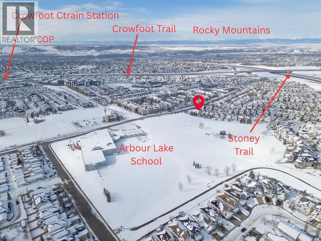 Welcome to this well-maintained home with mountain views from upstairs bedrooms and east facing backyard beside School Playground located in the highly sought-after Only Lake Community of Arbour Lake in NW Calgary. Just 4-minutes walking distance to Arbour Lake School (G5-9), 8-minutes to St. Ambrose School (K-G9) individually and 10 minutes to the community amenities. The main floor provides open concept layouts with a flexible room, a formal dining room with a big side window, a high ceiling living room with large east facing bright windows allowing for tons of natural light in, an updated Kitchen with SS appliances, a large island and a walk-in pantry, and a spacious breakfaster area with a French Door leading to a nice composite deck (2020) to the backyard for outdoor entertaining, a 2-piece powder room and a laundry room leading to the Double Garage. You are impressed by a grand staircase with iron railings leading to the upper floor. It provides a primary bedroom with an east facing large window towards the school playground and to take in the morning sunshine, a walk-in closet, and a 4-piece En-Suite, another two west facing bedrooms with gorgeous mountain views and a family 4-piece bathroom. The basement is unfinished with lots of potential to renovate in the future. The updates include Garage Door (2012), Roof (2013), Interior Paint (2014), Electric Car Charger Circuit (Permit-2019, does not come with Charge Point Charger), Natural Gas Outlet (Permit 2020), A/C (2021), Furnace and Humidifier (2022), Newer Water Softner and Tinted Windows. Arbour Lake offers a great community life, and amenities including year-round lake access for water sports, swimming, skating, tennis courts etc., playgrounds, schools, walking/biking paths, YMCA, Library, Crowfoot Crossing, and the Crowfoot LRT Station. Easy access to major commuting routes such as Crowchild Trail and Stoney Trail to U of C, Downtown, COP and National Parks etc. Call now for your own viewing! (id:55577)