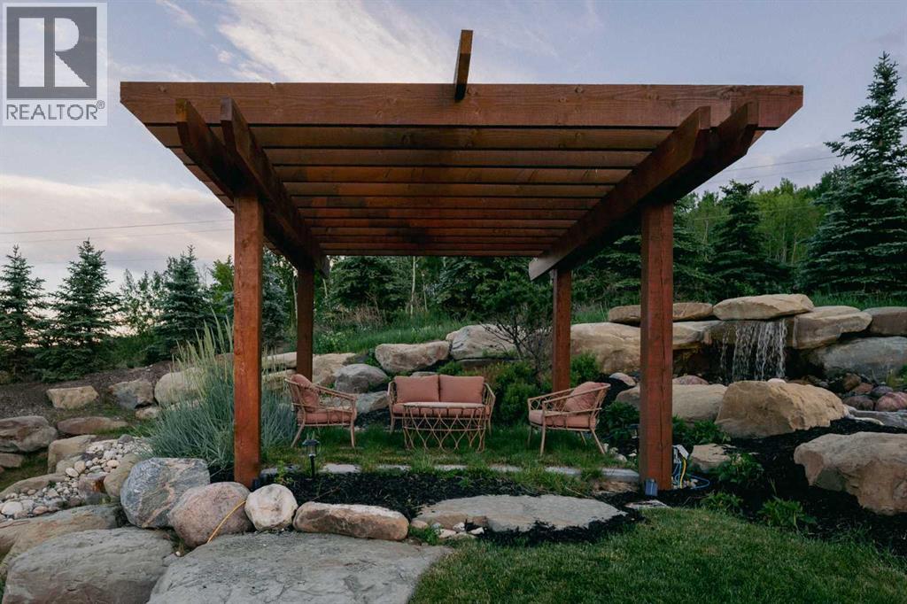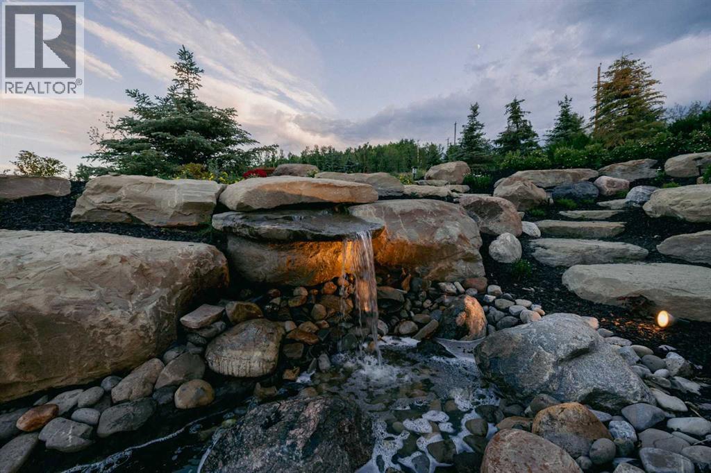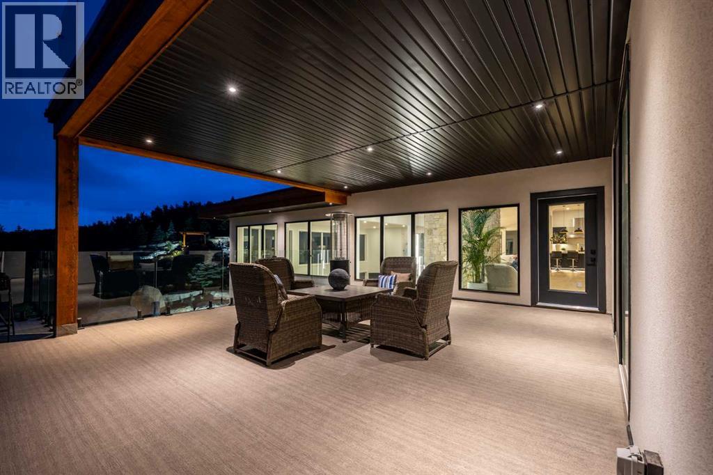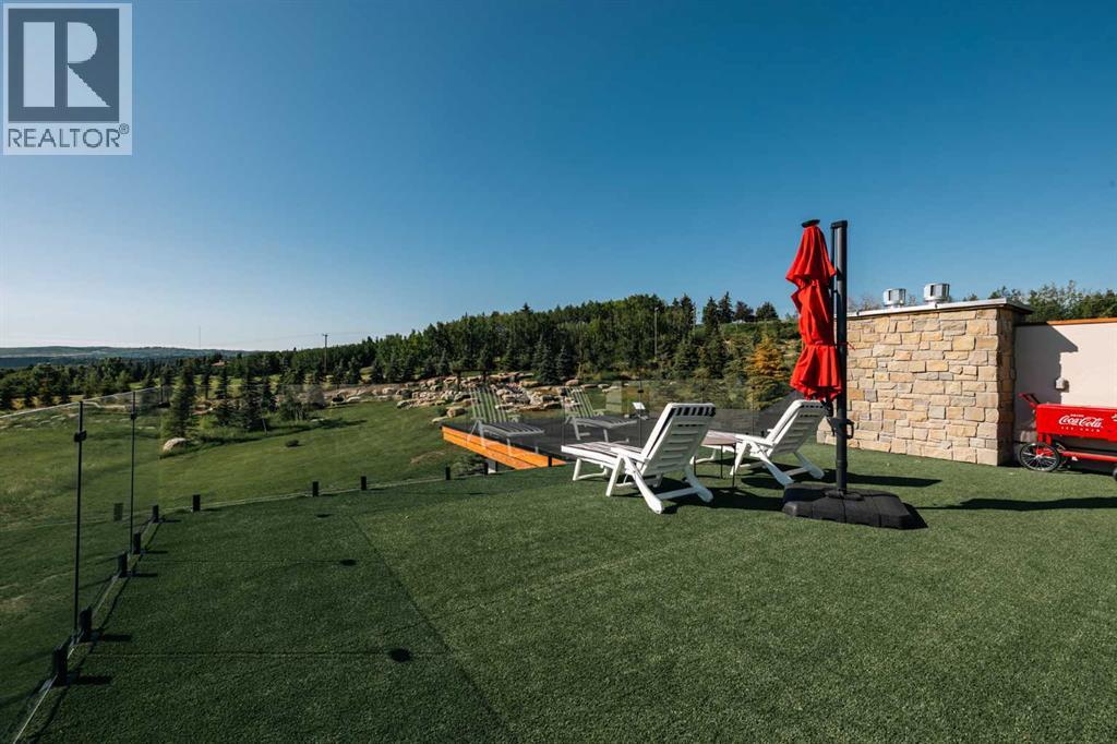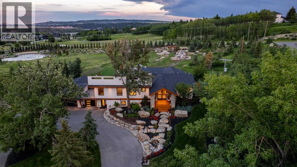Experience luxury redefined in one of Springbank’s most prestigious new communities—Devonian Ridge Estates.Set on 2 acres and located just 20 minutes from downtown Calgary, 30 minutes to the mountains, and across the street from Springbank Links Golf Course, this custom-built estate delivers a rare blend of serenity, sophistication, and convenience.Enjoy quick access to Springbank Airport (5 minutes away) and the upcoming Bingham Crossing lifestyle centre, which will feature boutique shopping, dining, wellness services, and a new Costco—everything you need, moments from your door.This architectural showpiece offers over 5,500 sq ft of elevated living across three levels, with 5 outdoor living spaces and panoramic views from every window. Designed as a fully integrated smart home, it features whole-home surround sound, two high-efficiency furnaces, two air conditioners, and epoxy flooring with in-floor heating rough-ins in the walkout basement.The interior stuns from the start—with vaulted ceilings, an 18 ft wall of windows, and a 3-storey fireplace anchoring the grand living room. The gourmet kitchen and formal dining room flow seamlessly to an expansive deck that overlooks 4 cascading waterfalls and your private, manicured estate—perfect for unforgettable gatherings or tranquil evenings at home.The main-floor primary suite is a true retreat, featuring a spa-inspired 5-piece ensuite, custom walk-in closet, private patio, and in-suite laundry for the ultimate convenience. A second laundry area downstairs adds functionality for families or guests.Upstairs, a 1,300 sq ft rooftop patio offers jaw-dropping views of the city skyline, COP, the river valley, and Springbank Links Golf Course—a rare vantage point ideal for sophisticated entertaining or quiet moments under the stars.The walkout basement is built for lifestyle, with a games area, wet bar, gym, cozy fireplace lounge, three spacious bedrooms, a flexible, soundproofed media room (or 5th bedroom), gym area and a heated 5-car garage ready for your collection.As a resident of Devonian Ridge Estates, you’ll enjoy a private community space with a pond, beach, gazebo, putting green, and a pathway leading to the Bearspaw Reservoir and a peaceful swimming inlet, all set against over 100 acres of protected parkland.This is more than a home—it’s a lifestyle. Where luxury, location, and nature meet. Welcome to Springbank’s most exclusive escape—10 Devonian Ridge Place. (id:55577)