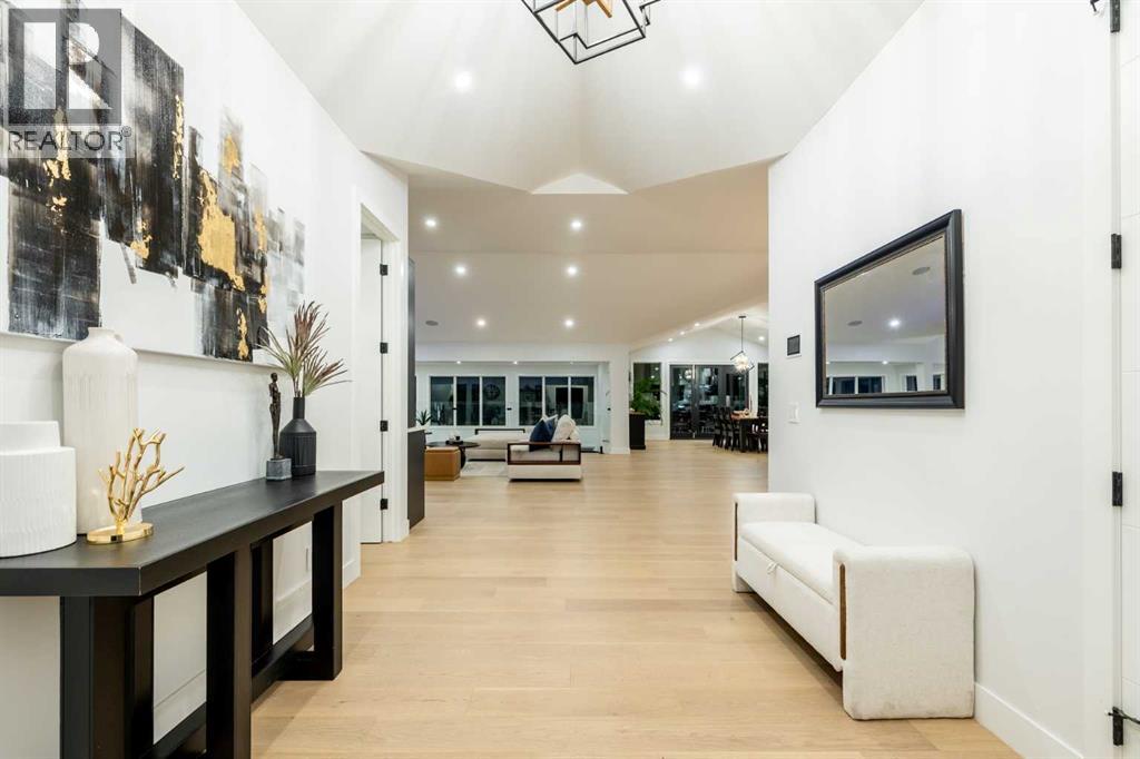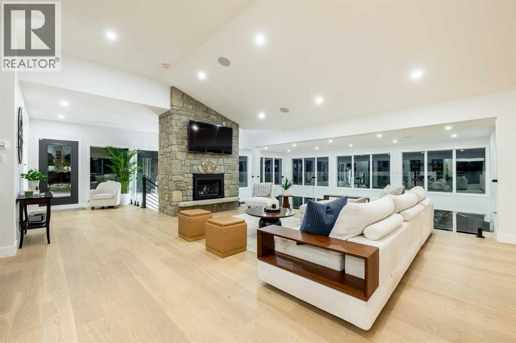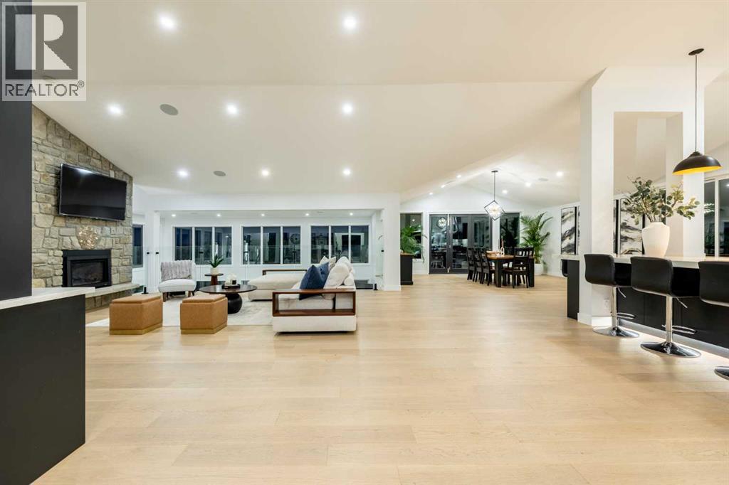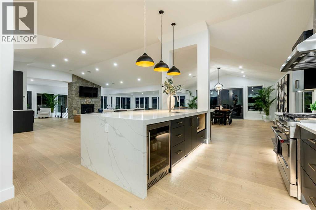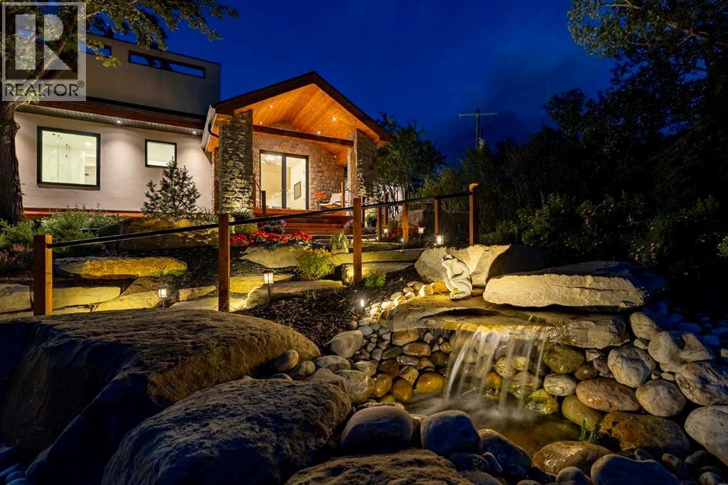 Experience luxury redefined in one of Springbank’s most prestigious new communities—Devonian Ridge Estates.Set on 2 acres and located just 20 minutes from downtown Calgary, 30 minutes to the mountains, and across the street from Springbank Links Golf Course, this custom-built estate delivers a rare blend of serenity, sophistication, and convenience.Enjoy quick access to Springbank Airport (5 minutes away) and the upcoming Bingham Crossing lifestyle centre, which will feature boutique shopping, dining, wellness services, and a new Costco—everything you need, moments from your door.This architectural showpiece offers over 5,500 sq ft of elevated living across three levels, with 5 outdoor living spaces and panoramic views from every window. Designed as a fully integrated smart home, it features whole-home surround sound, two high-efficiency furnaces, two air conditioners, and epoxy flooring with in-floor heating rough-ins in the walkout basement.The interior stuns from the start—with vaulted ceilings, an 18 ft wall of windows, and a 3-storey fireplace anchoring the grand living room. The gourmet kitchen and formal dining room flow seamlessly to an expansive deck that overlooks 4 cascading waterfalls and your private, manicured estate—perfect for unforgettable gatherings or tranquil evenings at home.The main-floor primary suite is a true retreat, featuring a spa-inspired 5-piece ensuite, custom walk-in closet, private patio, and in-suite laundry for the ultimate convenience. A second laundry area downstairs adds functionality for families or guests.Upstairs, a 1,300 sq ft rooftop patio offers jaw-dropping views of the city skyline, COP, the river valley, and Springbank Links Golf Course—a rare vantage point ideal for sophisticated entertaining or quiet moments under the stars.The walkout basement is built for lifestyle, with a games area, wet bar, gym, cozy fireplace lounge, three spacious bedrooms, a flexible, soundproofed media room (or 5th bedroom), gym area and a heated 5-car garage ready for your collection.As a resident of Devonian Ridge Estates, you’ll enjoy a private community space with a pond, beach, gazebo, putting green, and a pathway leading to the Bearspaw Reservoir and a peaceful swimming inlet, all set against over 100 acres of protected parkland.This is more than a home—it’s a lifestyle. Where luxury, location, and nature meet. Welcome to Springbank’s most exclusive escape—10 Devonian Ridge Place. (id:55577)