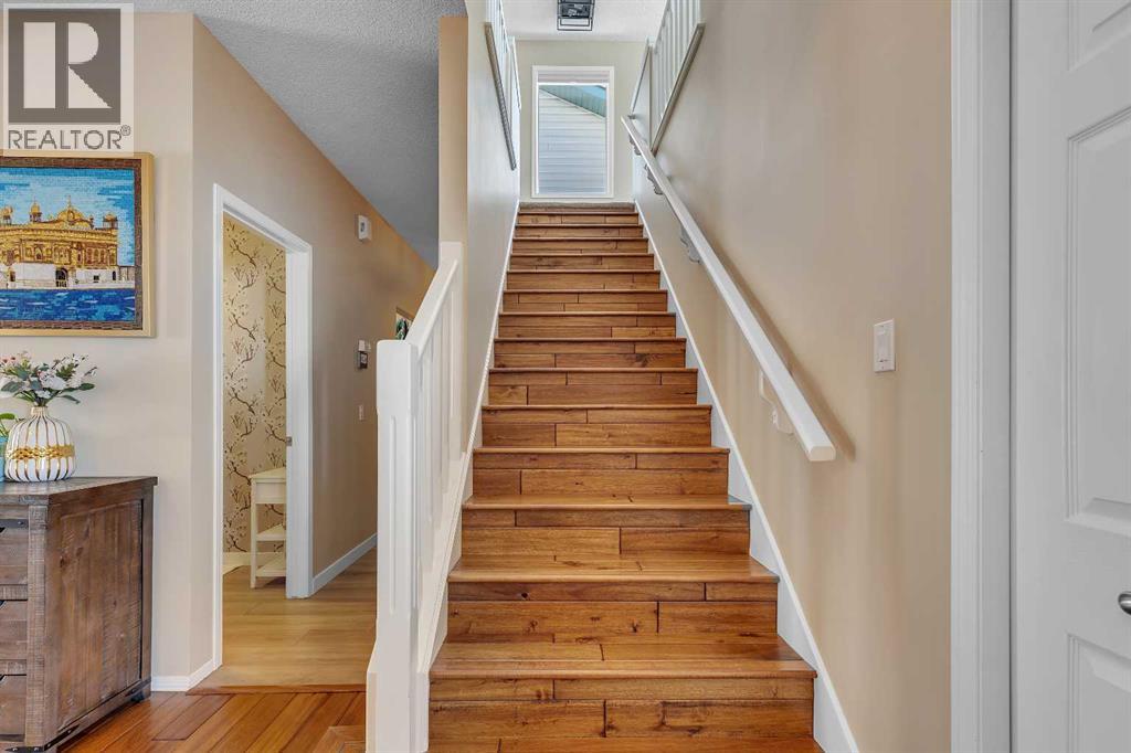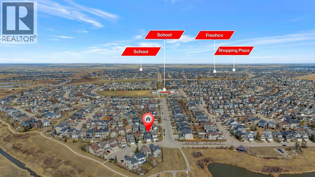 Stunning Family Home on Quiet Cul-de-Sac | Pond Views | Fully Upgraded [Evanston, NW, Calgary] Welcome to this beautifully maintained 2,200+ sq ft front-attached garage home, situated on a conventional lot in a quiet cul-de-sac and facing a serene pond, natural park, walking trails, and playground. Its prime location places you within walking distance to KD Taylor School and Creekside Plaza, adding everyday convenience to its long list of features. This bright and spacious house built by Homes by Avi offers 4 bedrooms and 3.5 bathrooms, finished basement, along with a main floor office and a huge bonus room, making it perfect for growing families. The home is filled with natural light thanks to additional windows, and has been meticulously cared for as a no smoking, no pets property. The exterior has been extensively upgraded in 2025 with a brand new roof, siding, gutters, soffit, and exterior lighting,along with a storm door and solar panels installed in 2024 for improved energy efficiency. Inside, the home boasts centralair conditioning, remote-controlled custom window blinds (2023), new carpet (2024), a newer furnace (2020), fresh paint(2020), upgraded lighting, and a built-in central vacuum. With over $40,000 in recent upgrades, every detail has been thoughtfully considered, including granite countertops in kitchen and all bathrooms and fully updated finishes such as flooring, vanities, fixtures, and more. The main floor features 9-foot ceilings, premium hardwood flooring, and a functional layout with a cozy living room centered around a gas fireplace, a flex room or office, a spacious dining area, powder room, and a well-equipped laundry room with new washer and dryer (2022), ample cabinetry, a large countertop, and upgraded LVP flooring. The kitchen is both stylish and functional, showcasing maple wood cabinets, granite countertops, a pantry with glass door, insinkrator, a modern backsplash (2022), and new (2024) stainless steel appliances including fridge, cooktop, and dishwasher. Upstairs, you’ll find a relaxing primary suite with a walk-in closet and private ensuite, along with two additional bedrooms, a full bathroom, and a large bonus room overlooking the pond and park—perfect for family time or entertaining. The fully finished basement expands your living space with a generous recreation room, an additional bedroom with a walk-in closet, and a full bathroom, ideal for guests or extended family. The outdoor space is just as impressive, featuring a large deck freshly stained in 2024 and a spacious backyard with mature trees, offering privacy and a perfect setting for outdoor enjoyment. This move-in ready home combines location, comfort, and extensive upgrades, making it a rare opportunity in a highly desirable family-friendly neighborhood. (id:55577)
