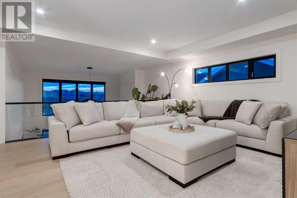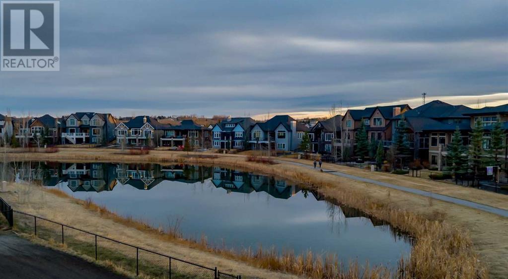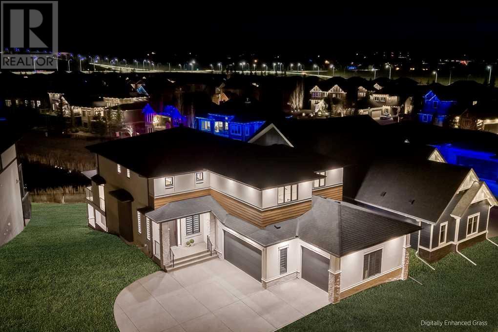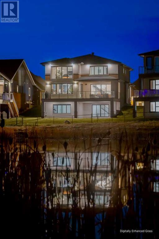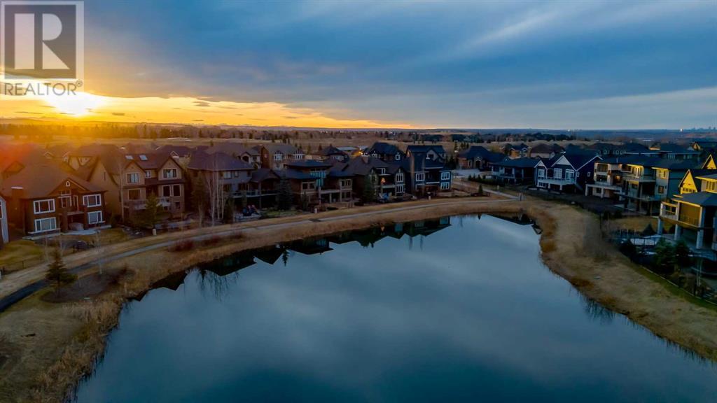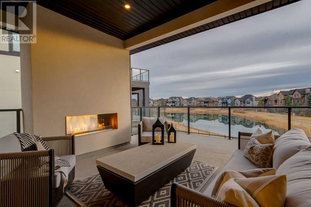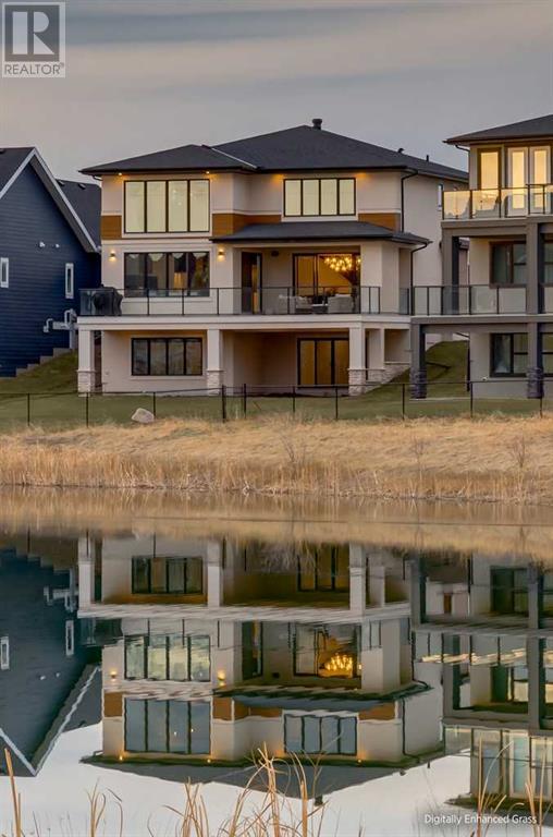 Welcome to this unparalleled estate home offering nearly 5,000 square feet of custom designed, developed living space. Located on the only cul-de-sac backing onto the main pond in Artesia, this two-story, walk-out, SW facing home sits on one of the most desirable lots in the community. Countless upgrades include stunning built-in features, show-stopping designer lighting, oak and bamboo wood features, top-of-line appliances, eight-foot doors, black framed windows, numerous Smart Home features and an oversized triple-attached garage with space to park a fourth vehicle and incorporate lifts. The upper level offers four bedrooms, three full bathrooms, a huge primary closet that connects to the laundry room and a massive bonus room while still incorporating a stunning ‘open to above’ 20-foot ceiling. The main floor includes a home office located directly off the foyer, a formal dining room with stunning views of the pond, a spectacular great room with soaring ceilings and a designer fireplace, a ‘chef’s kitchen’ with a quartz waterfall island and backsplash slab, a butler’s pantry and a mudroom that any family would love. Walk through the full-width double-sliding doors to the expansive rear balcony where you can enjoy the custom fireplace or revel in the serene view across the pond. The lower level offers a fifth bedroom, a spacious games room, a family room and a dedicated home gym. An approved landscape plan is ready to finish off this one-of-kind home. (id:55577)