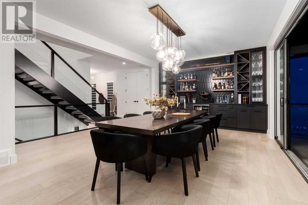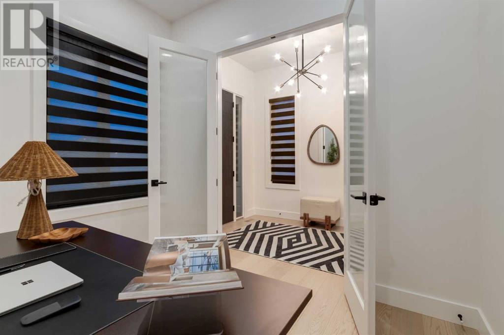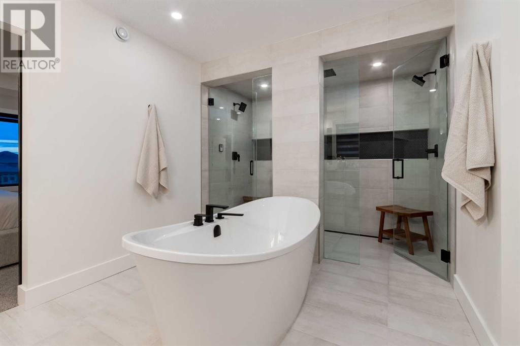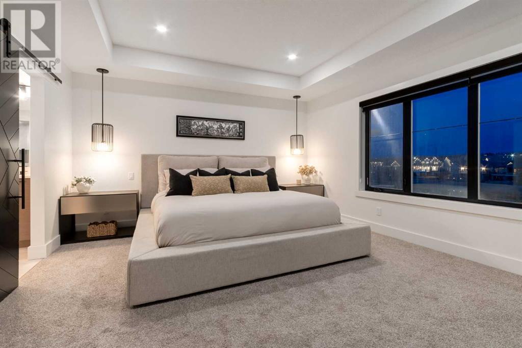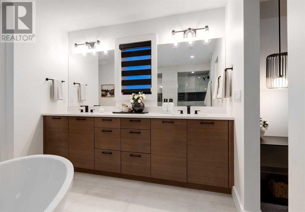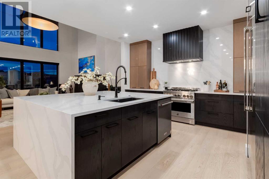 Welcome to this unparalleled estate home offering nearly 5,000 square feet of custom designed, developed living space. Located on the only cul-de-sac backing onto the main pond in Artesia, this two-story, walk-out, SW facing home sits on one of the most desirable lots in the community. Countless upgrades include stunning built-in features, show-stopping designer lighting, oak and bamboo wood features, top-of-line appliances, eight-foot doors, black framed windows, numerous Smart Home features and an oversized triple-attached garage with space to park a fourth vehicle and incorporate lifts. The upper level offers four bedrooms, three full bathrooms, a huge primary closet that connects to the laundry room and a massive bonus room while still incorporating a stunning ‘open to above’ 20-foot ceiling. The main floor includes a home office located directly off the foyer, a formal dining room with stunning views of the pond, a spectacular great room with soaring ceilings and a designer fireplace, a ‘chef’s kitchen’ with a quartz waterfall island and backsplash slab, a butler’s pantry and a mudroom that any family would love. Walk through the full-width double-sliding doors to the expansive rear balcony where you can enjoy the custom fireplace or revel in the serene view across the pond. The lower level offers a fifth bedroom, a spacious games room, a family room and a dedicated home gym. An approved landscape plan is ready to finish off this one-of-kind home. (id:55577)
