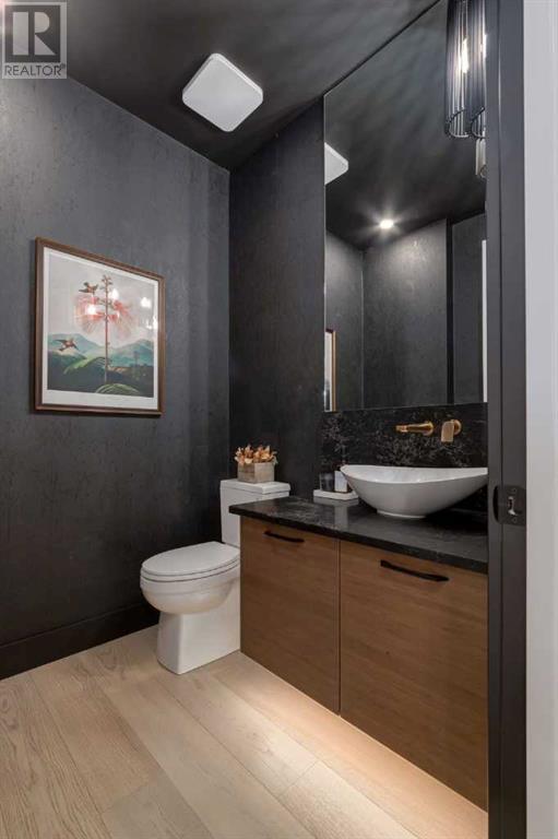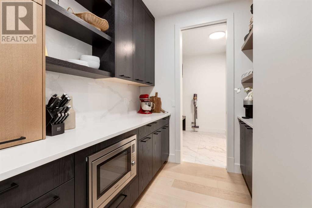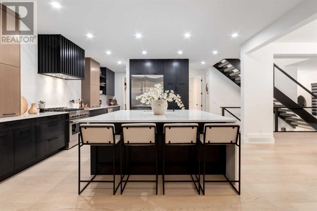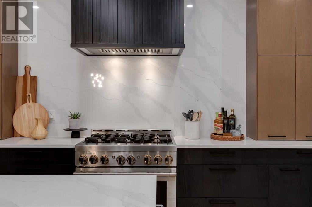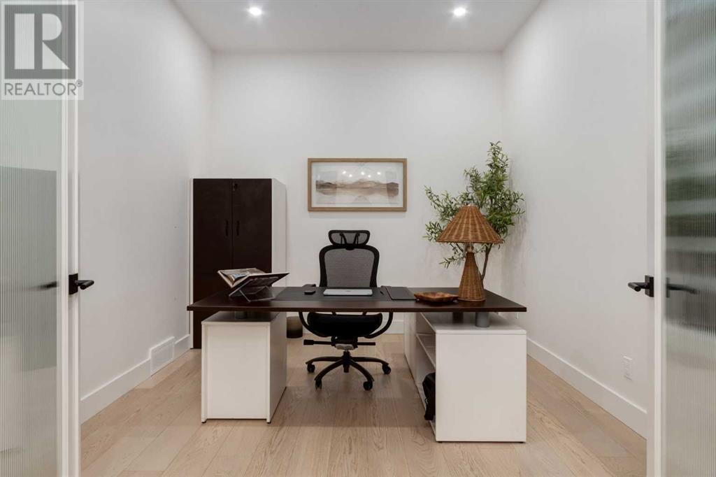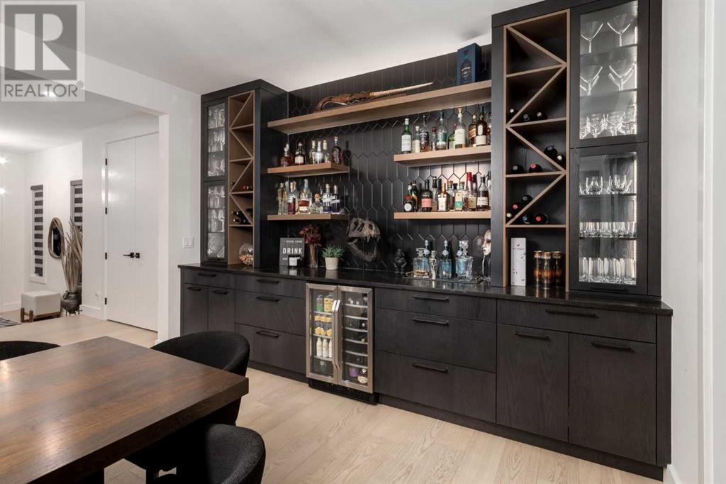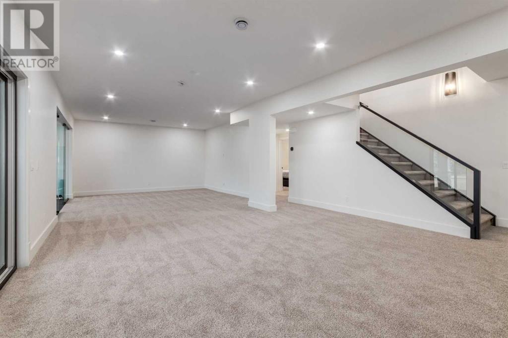 Welcome to this unparalleled estate home offering nearly 5,000 square feet of custom designed, developed living space. Located on the only cul-de-sac backing onto the main pond in Artesia, this two-story, walk-out, SW facing home sits on one of the most desirable lots in the community. Countless upgrades include stunning built-in features, show-stopping designer lighting, oak and bamboo wood features, top-of-line appliances, eight-foot doors, black framed windows, numerous Smart Home features and an oversized triple-attached garage with space to park a fourth vehicle and incorporate lifts. The upper level offers four bedrooms, three full bathrooms, a huge primary closet that connects to the laundry room and a massive bonus room while still incorporating a stunning ‘open to above’ 20-foot ceiling. The main floor includes a home office located directly off the foyer, a formal dining room with stunning views of the pond, a spectacular great room with soaring ceilings and a designer fireplace, a ‘chef’s kitchen’ with a quartz waterfall island and backsplash slab, a butler’s pantry and a mudroom that any family would love. Walk through the full-width double-sliding doors to the expansive rear balcony where you can enjoy the custom fireplace or revel in the serene view across the pond. The lower level offers a fifth bedroom, a spacious games room, a family room and a dedicated home gym. An approved landscape plan is ready to finish off this one-of-kind home. (id:55577)