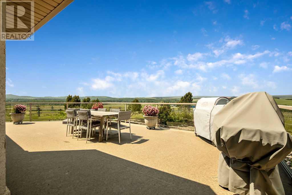 Luxury Walk-Out Bungalow on Gated Acreage with Breathtaking Mountain ViewsJust minutes from the city limits, this extraordinary walk-out bungalow offers over 6,900 square feet of beautifully finished living space on a private, gated estate. With 6 spacious bedrooms, 4 bathrooms, and a chef’s dream kitchen, this property is the perfect blend of luxury, functionality, and rural tranquility.Step inside to a grand entrance that opens to soaring ceilings, new designer lighting, and elegant finishes throughout. The main floor features a retreat-like primary suite, complete with spa-inspired amenities, while heated floors in the expansive basement offer year-round comfort. Three fireplaces add warmth and ambiance to the main living areas.Outdoors, the stunning mountain views provide a breathtaking backdrop to the beautifully landscaped grounds, complete with an underground sprinkler system, mature trees, and new decks for entertaining. Enjoy your own tennis/pickleball court, paved driveway, and two triple-car garages—each with brand-new door openers.Equestrian enthusiasts will appreciate the fully equipped barn with three horse stalls and a tack room, plus fenced and cross-fenced pastures with five paddocks, featuring wood and electric fencing, automatic waterer, and two horse shelters.This property truly has it all—privacy, space, luxury, and accessibility. Whether you're hosting guests, raising a family, or enjoying the peace of country living with your horses, this exceptional home delivers on every level. (Mountain view pictures will be updated once the smoke clears, Bordering 55 acres also for sale) (id:55577)