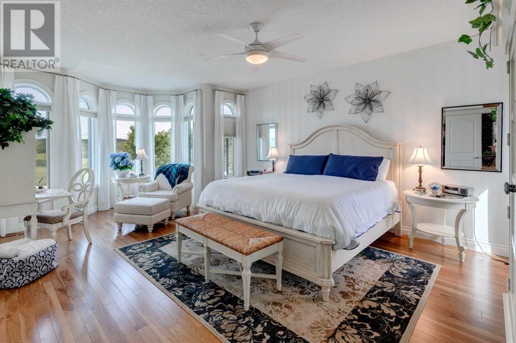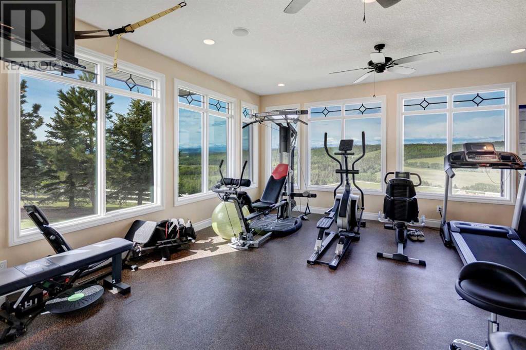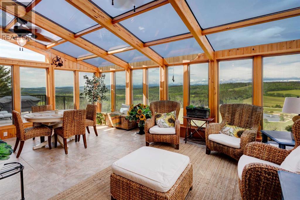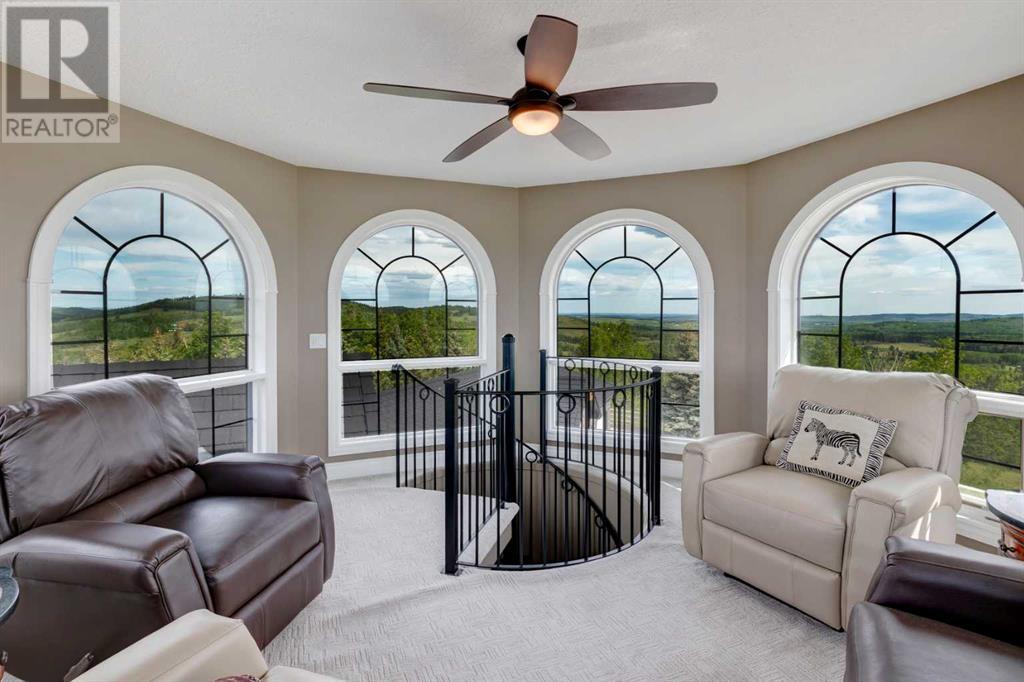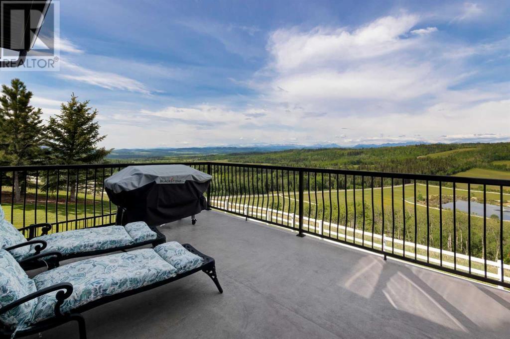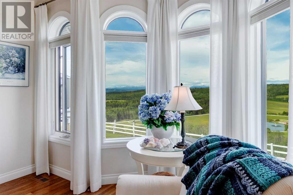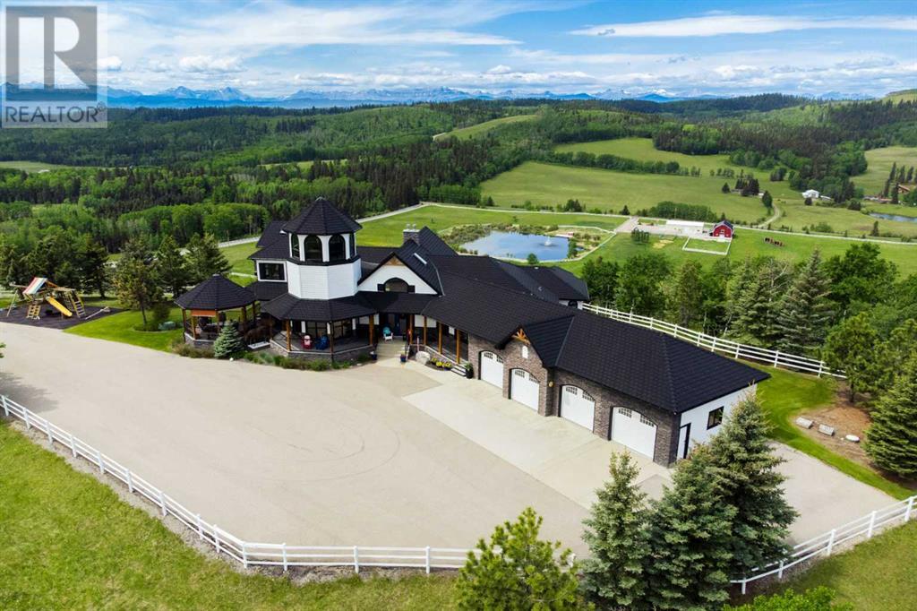 Wow! This might be the most beautiful view of the rolling foothills and Rocky Mountains, on 122 acres West of Millarville. A nice mix of pasture, aspen, large spruce trees, and a 360 degree, top of the world view, from the large hill at the center of the property. This full range mountain view which will never be equaled, overlooks the rolling hills, pond, fountain & even a glimpse of the towers in downtown Calgary. Anticipation grows as you roll up the wide, 1 km paved driveway right up to your over the top, 4851 sq ft (8613 total) , "Mansion on the hill". As you walk in the foyer, with the most spectacular views as the back drop, the slate and hickory floors, roll into a lighted water feature on the soaring stone fireplace, at the center of this wide open vaulted floor plan. The great room connects seamlessly to a sunlight solarium & executive gourmet kitchen, featuring 6 burner gas cook top , double ovens, 2 dishwasher’s, and 2 tastefully types of granite on the counter tops and island. Other features of this grand structure are, rubber roofing, basement to 3rd level elevator, main floor guest suite with 3 pc ensuite, a 106 inch projector screen in a movie goers delight media room, full fitness studio with cork flooring, walk in butlers pantry, 2 laundry rooms, 650 bottle temperature controlled wine room, infrared sauna, and a full kitchen for entertaining in the poker room/rec room, of the walkout basement. The third level studio and lookout tower are literally the crowning jewel on this estate. Need your space? The master suite will be your great escape, with a 5 pc spa like ensuite, large walk in closet, custom cabinets, and that huge view to wake up to every morning will make you so thankful to be living out west. With 5 guest/family bedrooms there is so much opportunity to entertain family and friends. Each room maximizing on that spectacular Foothills - Mountain view. For the kids, grandkids this place is going to be all about being outside on the large children's playground, which is easily supervised from the comfort of the power screened gazebo, or on the cut trails that crisscross the property through the large stands of evergreen forest. There is active springs throughout the land, & 2 Large ponds for livestock and wildlife. With plenty of pasture this property is completely set up as a small ranch holding. Main road access to the fully paved ranch yard, features full cattle working pens, a horse barn w/ 6 top of the line pillow soft box stalls, individual waterers, 2 cattle stalls, wash rack, tack room and a 40x64 ft entertainment area with wet bar and washrooms in the barn loft. Wait, there's also a 34 x 86 heated insulated shop, with mezzanine, workshop, washroom and a full kitchen to feed your cattle wrestling work crew. Such a complete over the top executive package. Come take a look at this 122 acre ranch west of Millarville with the most beautiful view. Wow!! Purchase Price does not include GST. Do not enter without permission. (id:55577)