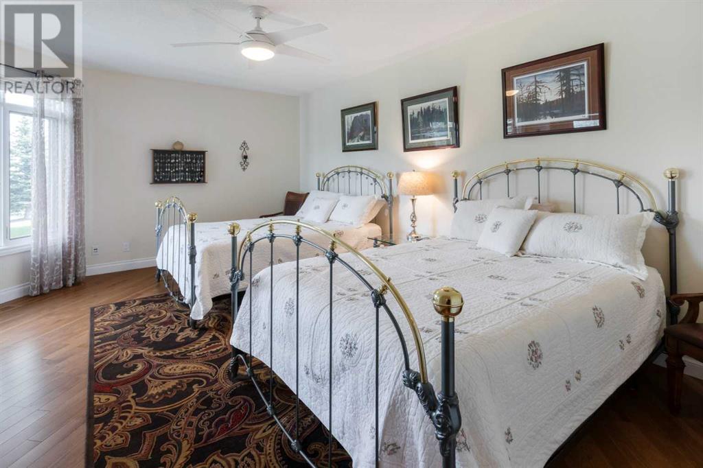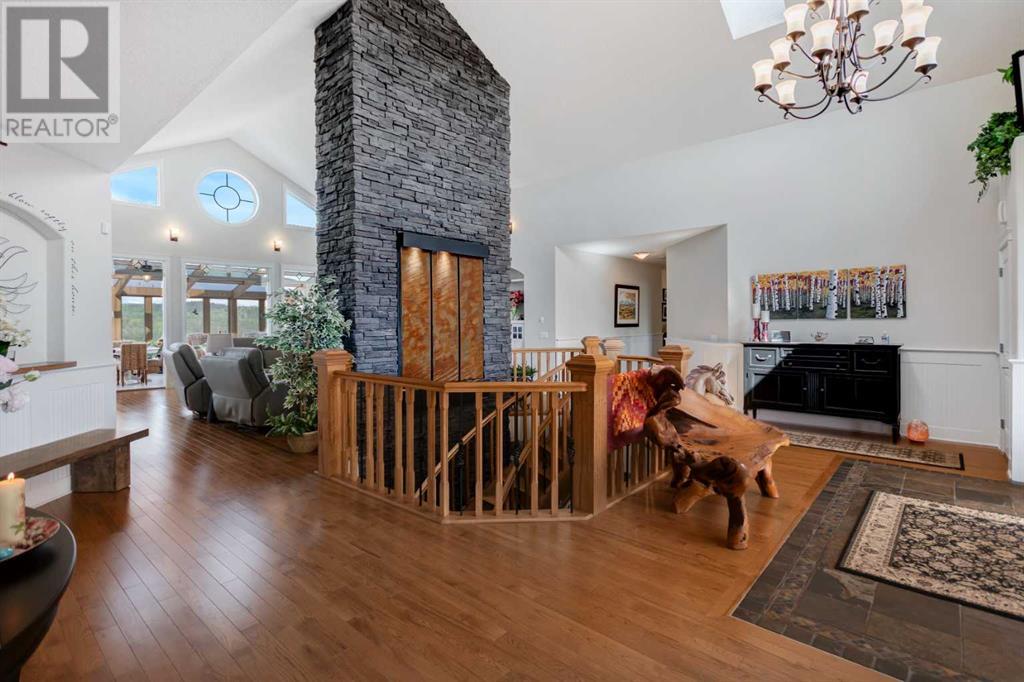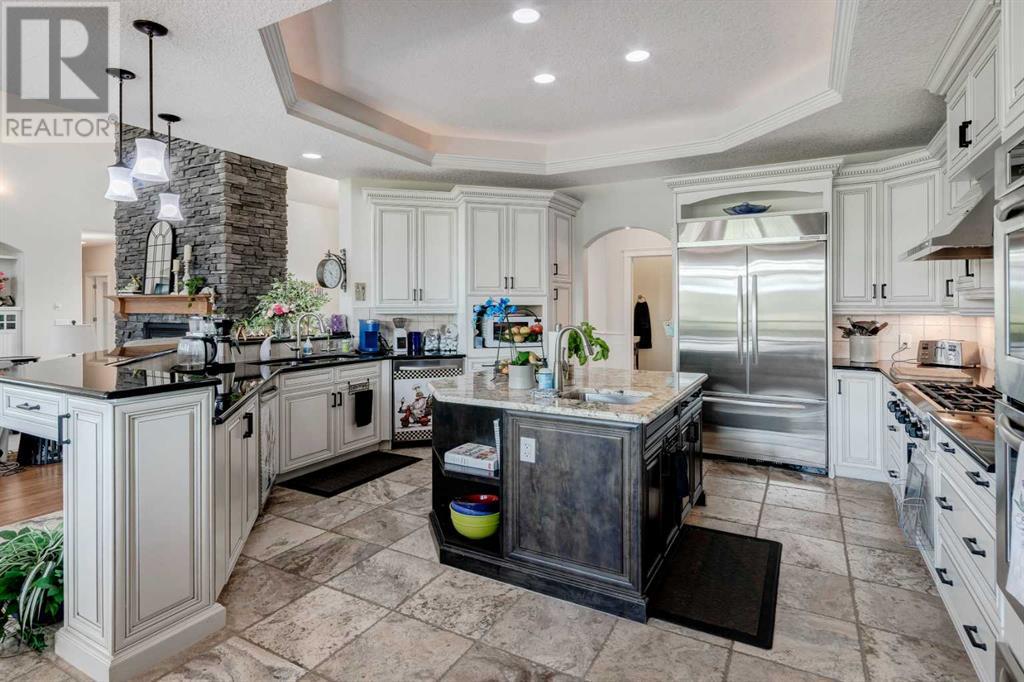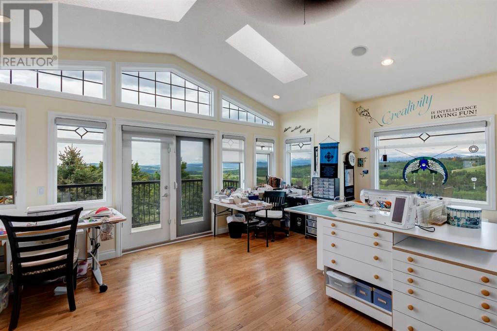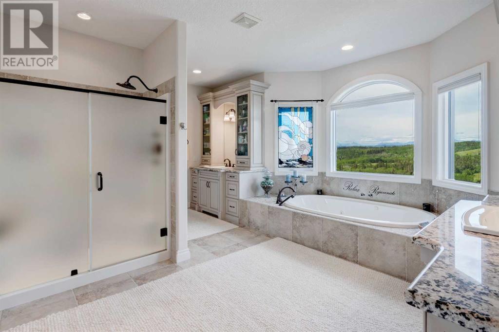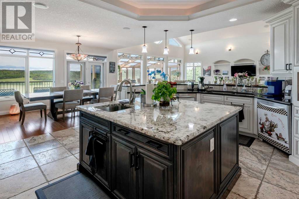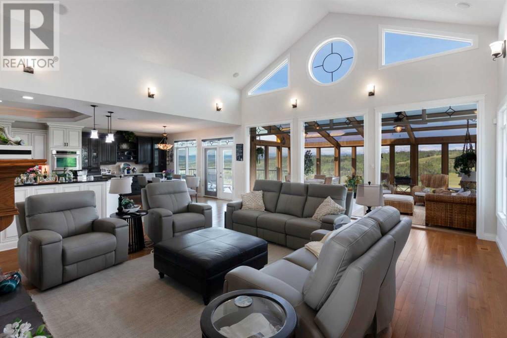 Wow! This might be the most beautiful view of the rolling foothills and Rocky Mountains, on 122 acres West of Millarville. A nice mix of pasture, aspen, large spruce trees, and a 360 degree, top of the world view, from the large hill at the center of the property. This full range mountain view which will never be equaled, overlooks the rolling hills, pond, fountain & even a glimpse of the towers in downtown Calgary. Anticipation grows as you roll up the wide, 1 km paved driveway right up to your over the top, 4851 sq ft (8613 total) , "Mansion on the hill". As you walk in the foyer, with the most spectacular views as the back drop, the slate and hickory floors, roll into a lighted water feature on the soaring stone fireplace, at the center of this wide open vaulted floor plan. The great room connects seamlessly to a sunlight solarium & executive gourmet kitchen, featuring 6 burner gas cook top , double ovens, 2 dishwasher’s, and 2 tastefully types of granite on the counter tops and island. Other features of this grand structure are, rubber roofing, basement to 3rd level elevator, main floor guest suite with 3 pc ensuite, a 106 inch projector screen in a movie goers delight media room, full fitness studio with cork flooring, walk in butlers pantry, 2 laundry rooms, 650 bottle temperature controlled wine room, infrared sauna, and a full kitchen for entertaining in the poker room/rec room, of the walkout basement. The third level studio and lookout tower are literally the crowning jewel on this estate. Need your space? The master suite will be your great escape, with a 5 pc spa like ensuite, large walk in closet, custom cabinets, and that huge view to wake up to every morning will make you so thankful to be living out west. With 5 guest/family bedrooms there is so much opportunity to entertain family and friends. Each room maximizing on that spectacular Foothills - Mountain view. For the kids, grandkids this place is going to be all about being outside on the large children's playground, which is easily supervised from the comfort of the power screened gazebo, or on the cut trails that crisscross the property through the large stands of evergreen forest. There is active springs throughout the land, & 2 Large ponds for livestock and wildlife. With plenty of pasture this property is completely set up as a small ranch holding. Main road access to the fully paved ranch yard, features full cattle working pens, a horse barn w/ 6 top of the line pillow soft box stalls, individual waterers, 2 cattle stalls, wash rack, tack room and a 40x64 ft entertainment area with wet bar and washrooms in the barn loft. Wait, there's also a 34 x 86 heated insulated shop, with mezzanine, workshop, washroom and a full kitchen to feed your cattle wrestling work crew. Such a complete over the top executive package. Come take a look at this 122 acre ranch west of Millarville with the most beautiful view. Wow!! Purchase Price does not include GST. Do not enter without permission. (id:55577)