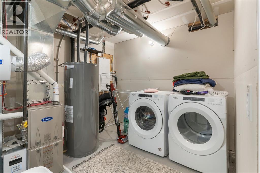 Get ready for a lifestyle of ease in this stunning former Calbridge showhome. This end-unit bungalow is designed for those who want to trade yard work for weekend adventures without sacrificing quality. Enjoy a bright, open-concept layout featuring quartz countertops, premium cabinetry, stainless steel appliances and a central island perfect for morning coffee. The primary living space includes two spacious bedrooms and a full bathroom all on the main floor, offering the convenience of single-level living. In addition, the fully finished basement provides a generous family room, an extra bedroom, an office, a generous storage room, and a laundry room complete with a full size washer and dryer. Leave the car in your titled, partially covered stall just steps from your front door. You are a short walk away from Fireside’s serene pathways, ponds, local shopping, pharmacy, dentist, restaurants, convenience store with gas station, parks and schools. A ten minute drive gets you on to the Trans Canada Highway and off to your adventures in the Rocky Mountains or Calgary. Whether you're heading to the mountains or just down the street to treat yourself to fine dining, this home offers the sophisticated, low-maintenance lifestyle you’ve been looking for!Whether you’re downsizing, buying your first home, or simply seeking low-maintenance living with plenty of space, this rare bungalow style condo is a must see! (id:55577)