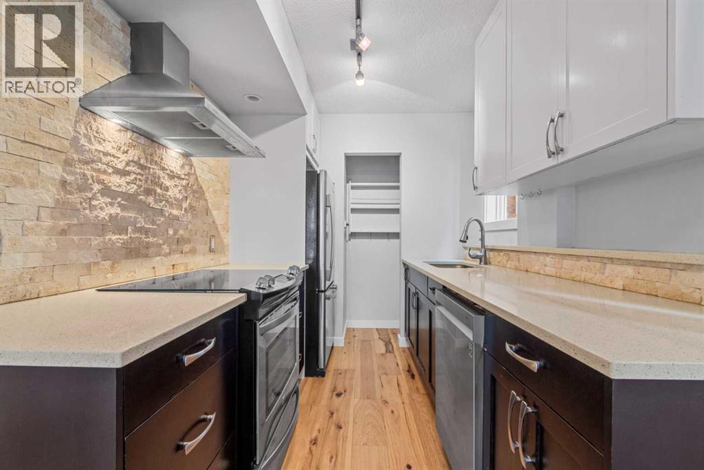 LOCATION, LOCATION! Discover exceptional inner-city living in this 700sqft spacious, fully renovated one-bedroom condominium, ideally situated just steps from the Elbow River and Calgary’s extensive pathway system. Located only two blocks from vibrant 4th Street and minutes to 17th Avenue, you’ll enjoy immediate access to trendy shops, cafés, and restaurants—while still being tucked away enough to savor quiet evenings at home. The thoughtfully designed floor plan and upscale finishes impress from the moment you enter. A generous foyer welcomes you with beautiful hardwood flooring, leading into bright, open-concept living spaces. Oversized south- and east-facing windows flood the home with natural light, while the enclosed, ?c?oncrete patio offers additional space for outdoor seating and BBQs—perfect for entertaining or relaxing year-round?. The fully renovated kitchen features stylish designer finishes, stainless steel appliances, quartz countertops, and a pantry—yes, there’s room for those Costco runs! The king-sized bedroom easily accommodates larger furnishings and includes expanded closet space and a striking designer chandelier. Completing the home is a modern, renovated four-piece bathroom, tailored for today’s lifestyle?. Additional conveniences include in-suite laundry located in the private storage room, a shared laundry room conveniently adjacent to the unit, and assigned parking, with ample street parking available for guests.? Set in a pet-friendly building, this home is perfect for active, outdoor enthusiasts who value walkability, river access, and urban convenience. Immerse yourself in everything Mission has to offer—this is inner-city living at its best. (id:55577)