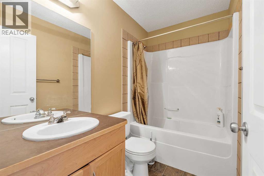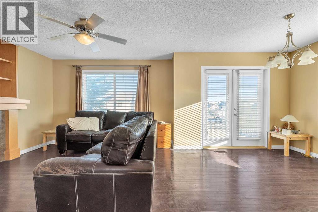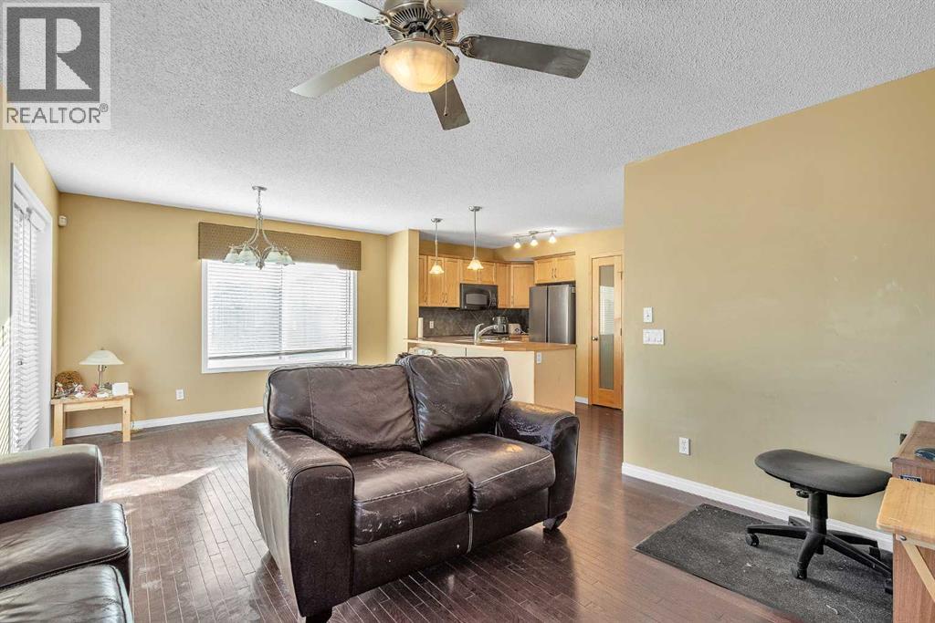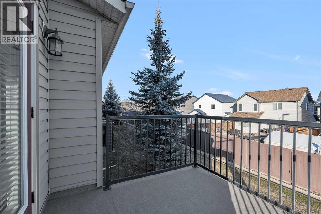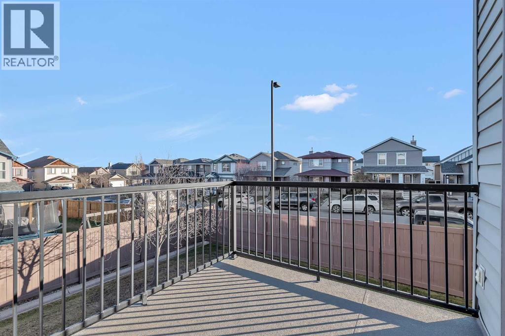 This remarkable former show home truly checks ALL the boxes — style, comfort, and value!As you arrive at this beautifully maintained complex, you’ll immediately notice the pride of ownership throughout. The property management team takes exceptional care of the community — from the well-kept roads and lush lawns to the mature trees and pristine building exteriors.Step inside and you’ll be welcomed by a bright, open-concept floor plan perfect for family living and entertaining. The dining area easily accommodates large gatherings, while the private balcony overlooking a peaceful greenbelt offers the ideal spot for morning coffee or evening relaxation. The living room provides a warm and inviting space for everyone to unwind.To your right upon entry, you’ll find a versatile office or den, perfect for working from home. A pristine half-bath nearby ensures guests feel right at home.Upstairs, the primary suite is a true retreat, featuring a walk-in closet and a brilliant ensuite bathroom. Two additional bedrooms and a 4-piece main bath complete the upper level. Enjoy brand-new laminate flooring upstairs, new carpet on the stairway, and all new appliances — refrigerator, stove, dishwasher, and washer/dryer — throughout the home!The walkout basement offers incredible flexibility, with its own entry leading to a lush green space. Bright and airy, this lower level can serve as a separate living area, rec room, or guest suite — the possibilities are endless. Step out to the third patio area and relax in your own sun-filled oasis.An attached garage with a new door opener provides secure parking and additional storage.Located in the highly sought-after Sagewood community of Airdrie, this home offers the perfect blend of tranquility and convenience. You’ll love the scenic pathways, reservoirs, creeks, and parks, all just steps away. Plus, enjoy easy access to shopping, schools, golf, and major routes:•15 minutes to CrossIron Mills Mall•Less than 20 minutes to YYC Airp ort•5 minutes to Woodside Golf Course•A short stroll to C.W. Perry SchoolDon’t miss your chance to own this stunning home — book your private showing today before it’s gone! (id:55577)