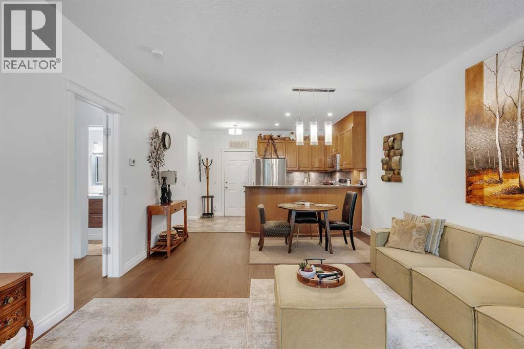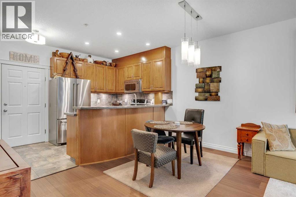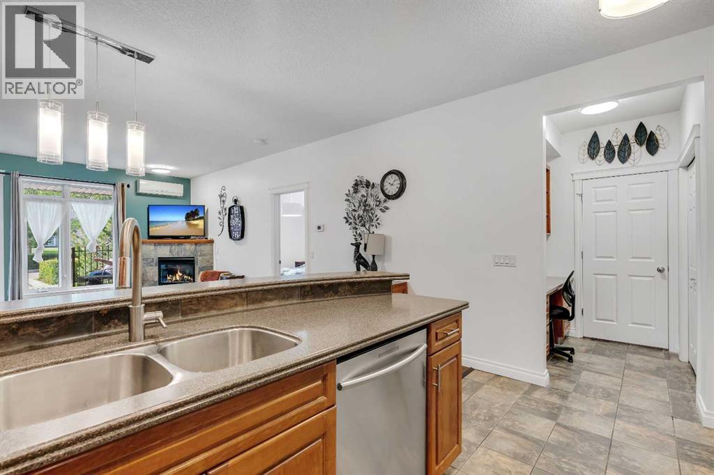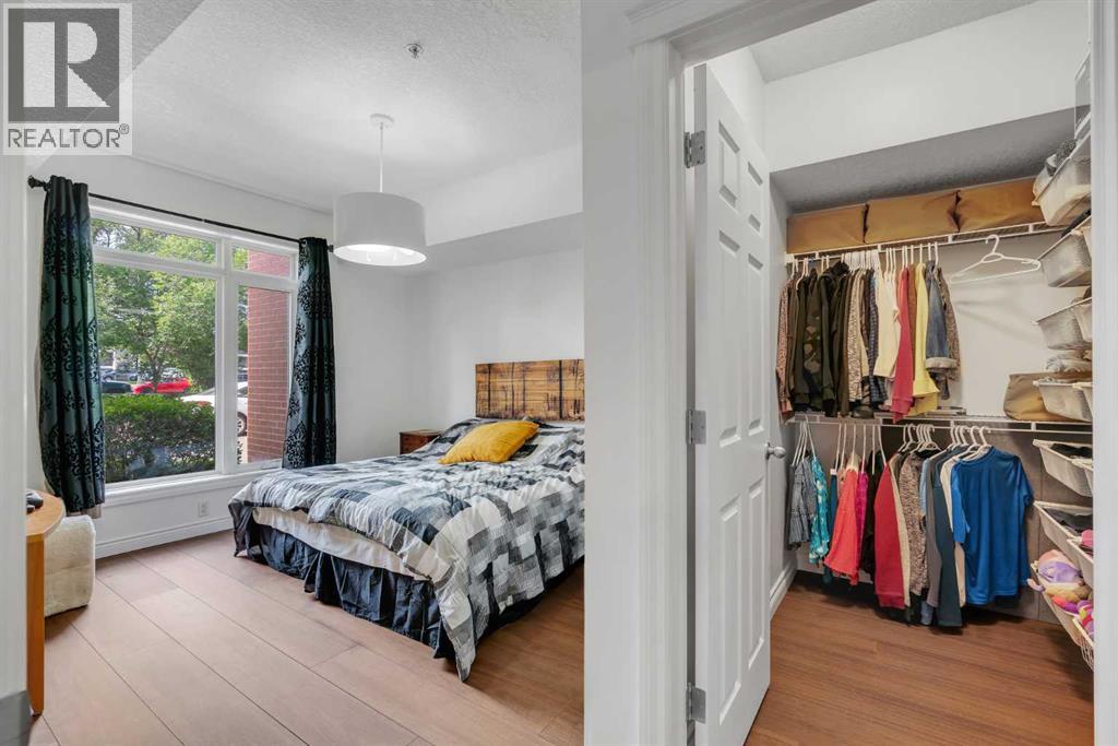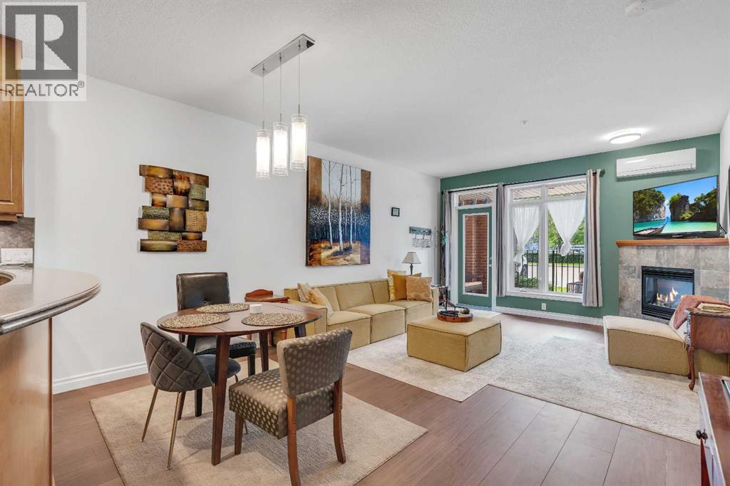 GROUND FLOOR WITH PRIVATE FRONT ACCESS | RENOVATED INTERIOR | TITLED UNDERGROUND PARKING | A/C | FLOODED WITH NATURAL LIGHT | LARGE SOUTH FACING WINDOWS | Welcome to Unit #101 at Copperwood in Spruce Cliff, ideally located just steps to Edworthy Park, the Bow River pathway system, and Shaganappi Point Golf Course. This upgraded 1 bed + 1 bath condo offers over 750 sqft of open concept living with fresh paint, high end engineered hardwood flooring, upgraded lighting, and a refreshed bathroom. The large kitchen is outfitted with stainless steel appliances, Corian countertops, garburator, a generous breakfast bar, and plenty of cabinetry for both storage and display. The living area centres around a cozy gas fireplace and flows seamlessly to the spacious covered patio, perfect for morning coffee or direct street access for dog owners or those who prefer to avoid elevators. The primary bedroom features a walk in closet with built in organizers and a 4 piece en suite. Additionally there is a built in desk or work area at the front that is perfect for those working from home. Additional features include in suite laundry with extra storage, built in central A/C, a titled heated underground parking stall, an assigned storage locker, and access to Copperwood’s outstanding amenities including a massive fitness facility, guest suite, party room, car wash bay, and secure bike storage. Not to be overlooked, the parking, storage, and elevator are all within a few metres of each other, a convenience often missed in other condo developments. Pet friendly and perfectly suited for professionals, travellers, or downsizers looking for a Spruce Cliff condo in a vibrant inner city location, walkable to Westbrook C Train Station, Westbrook Mall, the public library, groceries, parks, pathways, and just 5 minutes to downtown Calgary. Please reach out to book your private showing today. (id:55577)