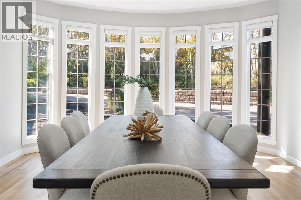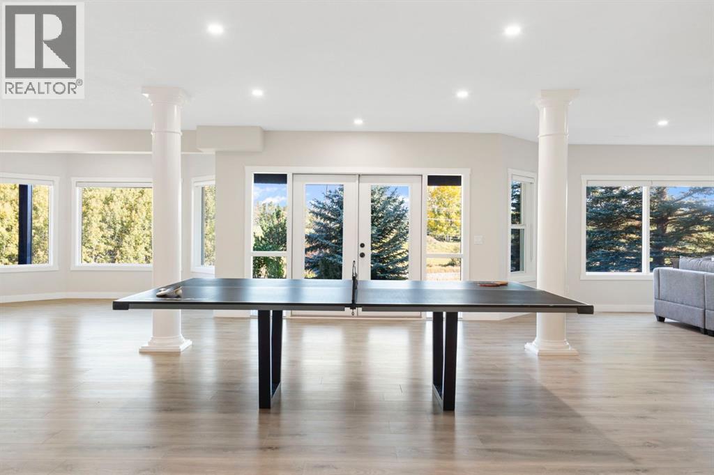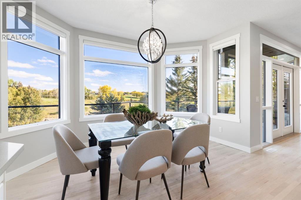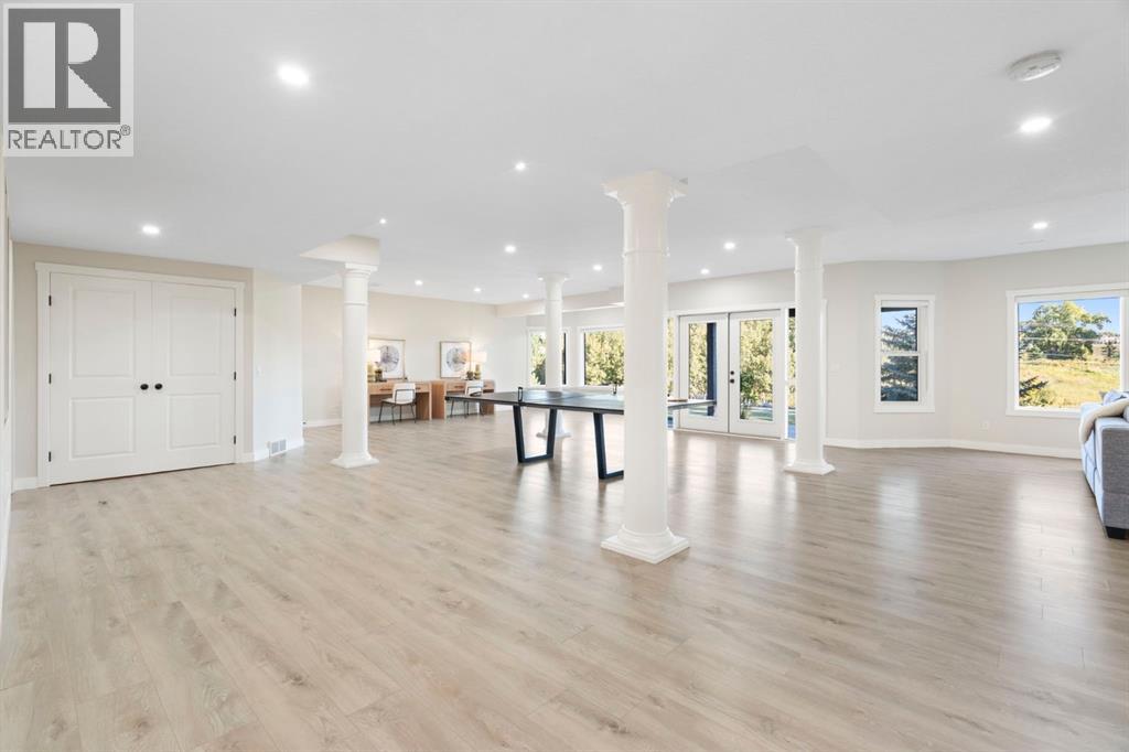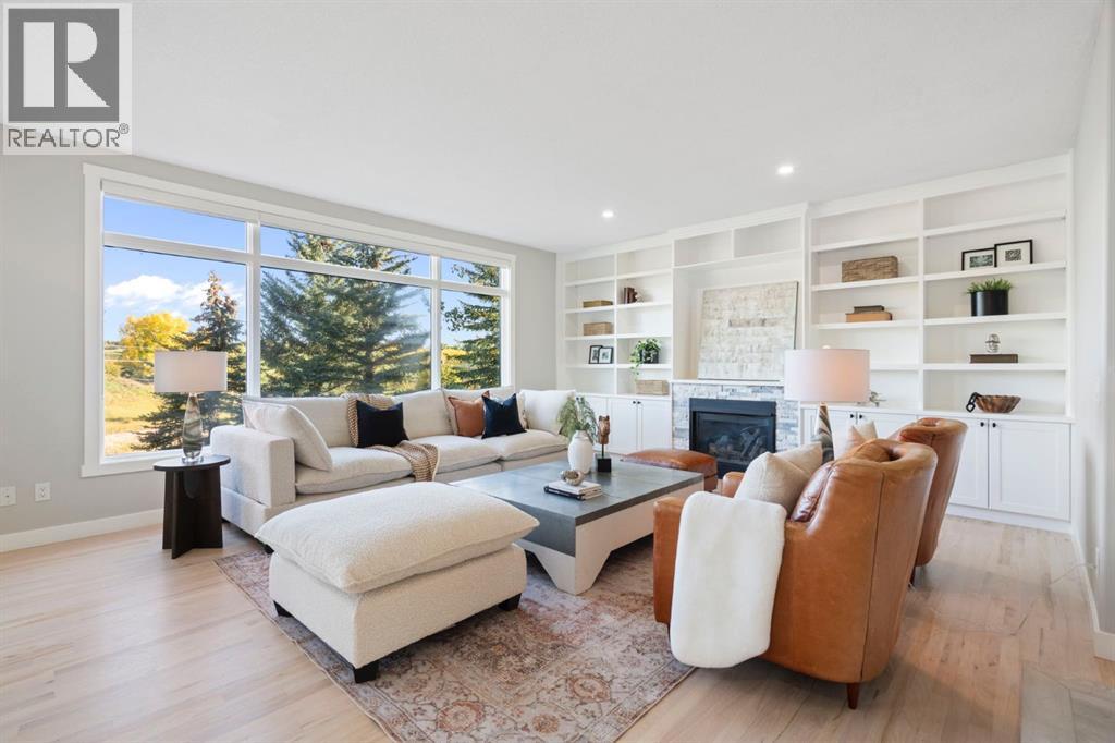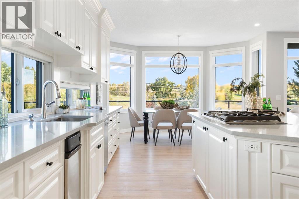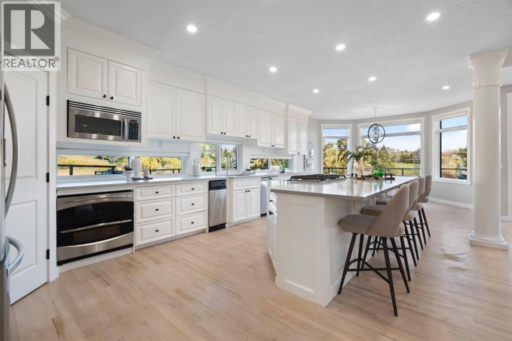 **Check out our CINEMATIC TOUR (iGUIDE)*** Walking distance to the Bearspaw Farmer's Market, 2 min from Hwy 1 access, Rocky Ridge Co-op, Gas Stations, 5 min to Tim Hortons-101 Nagway Court is a gem of a property in the BEST location yet, tucked away for ultimate privacy. Experience refined acreage living in this stunning 6145 sq. ft. two-storey estate, backing onto Bearspaw Golf Course. Heavily renovated in 2022, this contemporary home offers exceptional craftsmanship, modern finishes, and seamless indoor-outdoor living. The private tree-lined driveway prepares you for your serene retreat after a long day. Standing in your grand foyer with exquisite chandelier, you’re welcomed by the open view of entire main floor, complete with 20ft ceilings. Windows on all sides makes this space bright, bringing in the natural surroundings giving it a calm and peaceful atmosphere. Renovations in 2022, include 90 new triple-pane windows, refinished hardwood floors, new countertops, new lighting, upgraded electrical (200 amp service), new paint throughout, and relocated the staircase bringing in brand new stairs and railings. The main floor design is very functional. The laundry room and mudroom have ample storage and working countertops. The large kitchen is very bright and airy, with stainless steel appliances, large pantry leading to a breakfast area where you can enjoy the natural landscape view of the back yard. The impressive stone fireplace in the living room invites you to pour a glass of your favourite beverage and relax. The dining room is enhanced by the natural beauty of the accented wood flooring. The architectural walkways that beautifully connect the upper floorpan and the wall of windows in the kitchen give this home its modern feel, that WOW factor. The upper level features spacious bedrooms, a bonus room with loft feel leading to out to a balcony, and several skylights. The primary bedroom/ensuite is a true retreat; complete with large walk-in closet, a luxurious 5 -piece ensuite with shower and jetted tub and a Juliet balcony to take in the fresh air. The walkout basement features 1 more bedroom, a 4pc bathroom, an office (flex room), wine cellar, games room, and den area. Outside, enjoy several decks on all levels, a pergola, stone patio, fire pit and a covered outdoor stainless steel kitchen, perfect for entertaining or enjoying a family meal- the outdoor pizza oven takes pizza night to the next level! Attached is a heated four-car garage with Sunshine doors and polyaspartic-coated floors. Complete with a full home security system and just minutes from city amenities, this home blends timeless elegance with modern acreage living. (id:55577)
