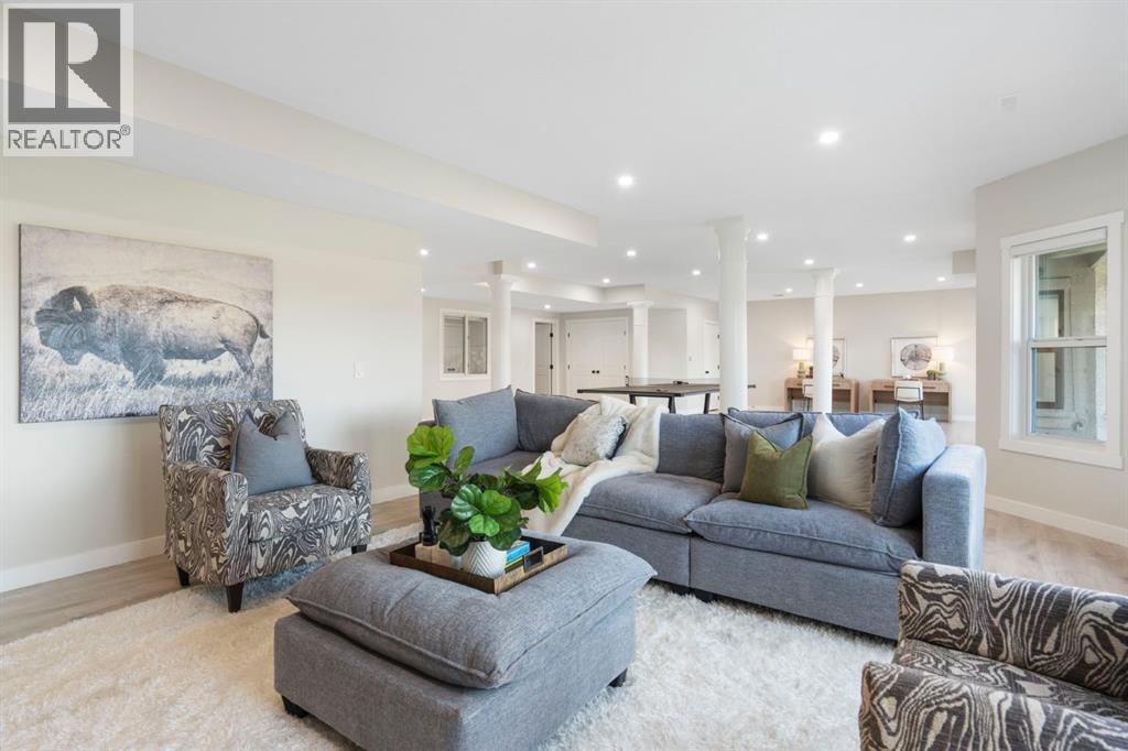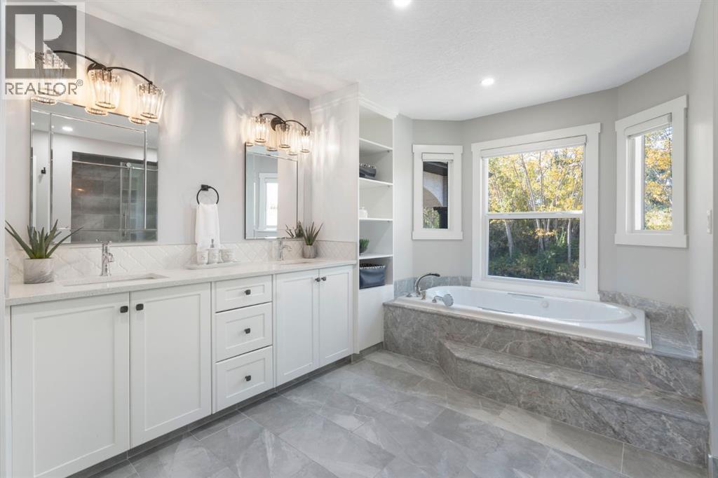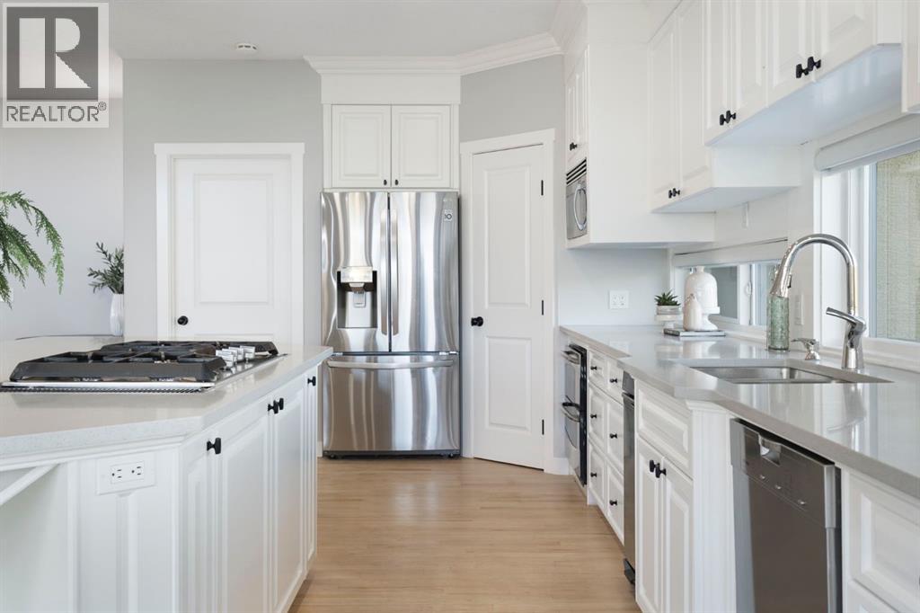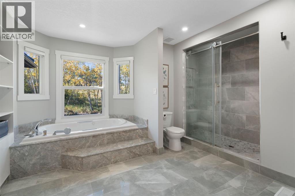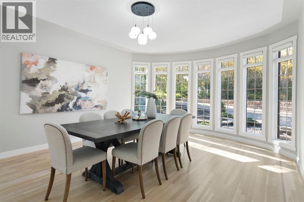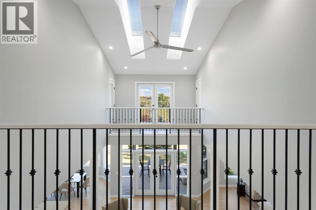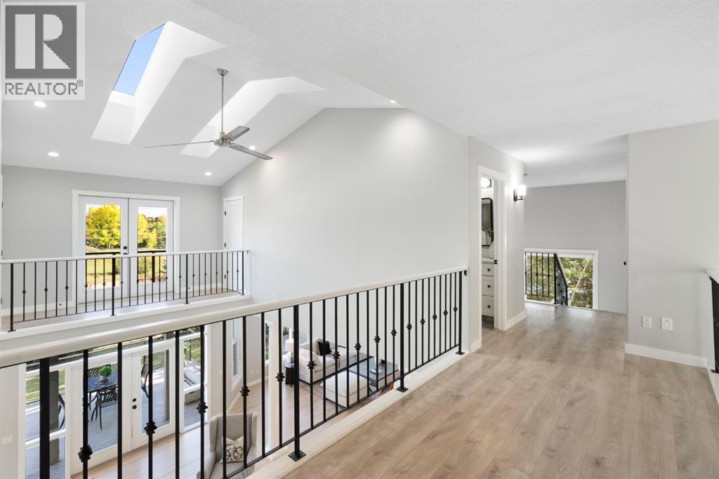 **Check out our CINEMATIC TOUR (iGUIDE)*** Walking distance to the Bearspaw Farmer's Market, 2 min from Hwy 1 access, Rocky Ridge Co-op, Gas Stations, 5 min to Tim Hortons-101 Nagway Court is a gem of a property in the BEST location yet, tucked away for ultimate privacy. Experience refined acreage living in this stunning 6145 sq. ft. two-storey estate, backing onto Bearspaw Golf Course. Heavily renovated in 2022, this contemporary home offers exceptional craftsmanship, modern finishes, and seamless indoor-outdoor living. The private tree-lined driveway prepares you for your serene retreat after a long day. Standing in your grand foyer with exquisite chandelier, you’re welcomed by the open view of entire main floor, complete with 20ft ceilings. Windows on all sides makes this space bright, bringing in the natural surroundings giving it a calm and peaceful atmosphere. Renovations in 2022, include 90 new triple-pane windows, refinished hardwood floors, new countertops, new lighting, upgraded electrical (200 amp service), new paint throughout, and relocated the staircase bringing in brand new stairs and railings. The main floor design is very functional. The laundry room and mudroom have ample storage and working countertops. The large kitchen is very bright and airy, with stainless steel appliances, large pantry leading to a breakfast area where you can enjoy the natural landscape view of the back yard. The impressive stone fireplace in the living room invites you to pour a glass of your favourite beverage and relax. The dining room is enhanced by the natural beauty of the accented wood flooring. The architectural walkways that beautifully connect the upper floorpan and the wall of windows in the kitchen give this home its modern feel, that WOW factor. The upper level features spacious bedrooms, a bonus room with loft feel leading to out to a balcony, and several skylights. The primary bedroom/ensuite is a true retreat; complete with large walk-in closet, a luxurious 5 -piece ensuite with shower and jetted tub and a Juliet balcony to take in the fresh air. The walkout basement features 1 more bedroom, a 4pc bathroom, an office (flex room), wine cellar, games room, and den area. Outside, enjoy several decks on all levels, a pergola, stone patio, fire pit and a covered outdoor stainless steel kitchen, perfect for entertaining or enjoying a family meal- the outdoor pizza oven takes pizza night to the next level! Attached is a heated four-car garage with Sunshine doors and polyaspartic-coated floors. Complete with a full home security system and just minutes from city amenities, this home blends timeless elegance with modern acreage living. (id:55577)