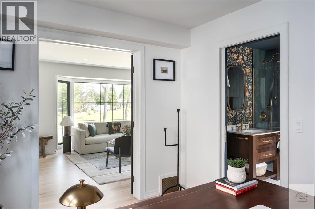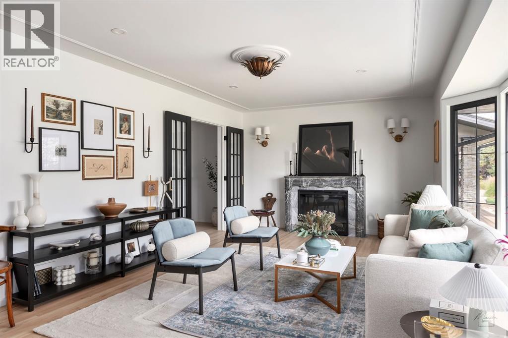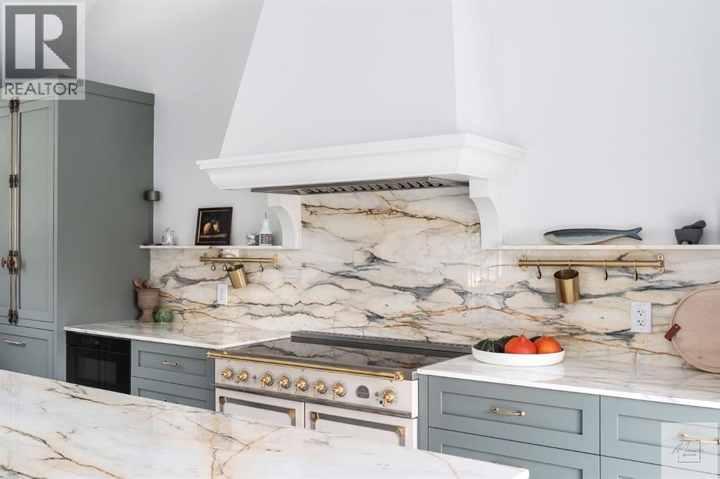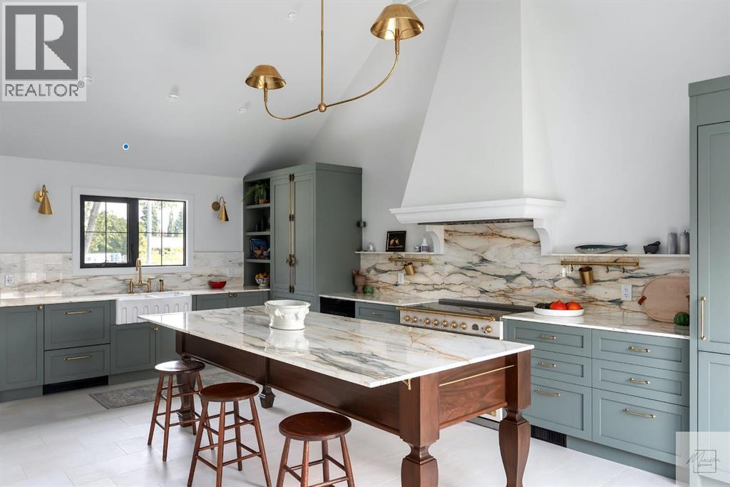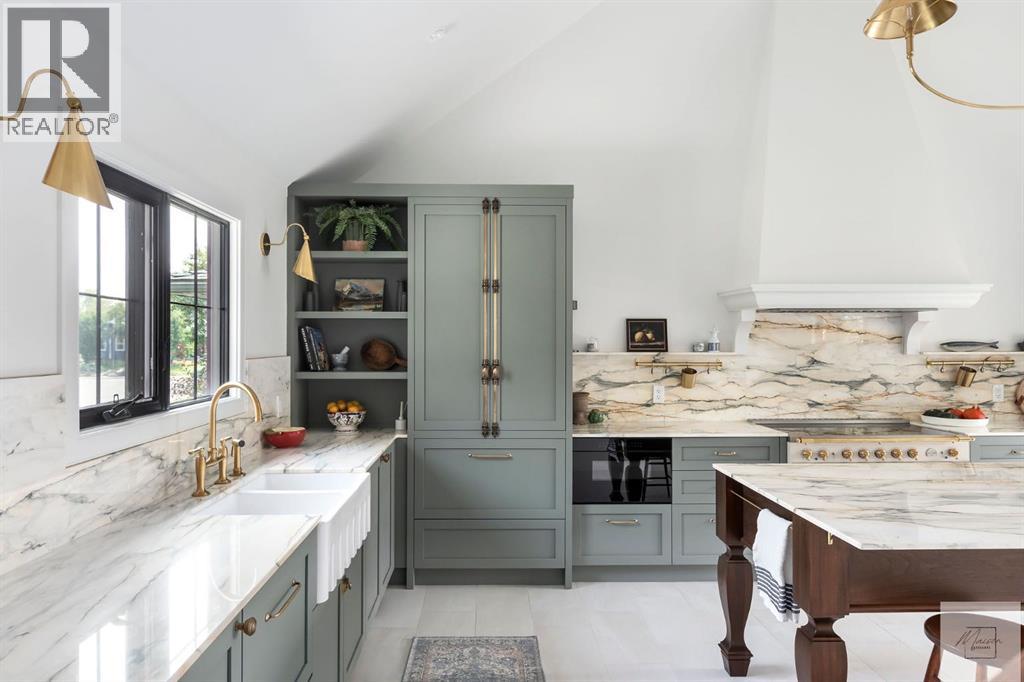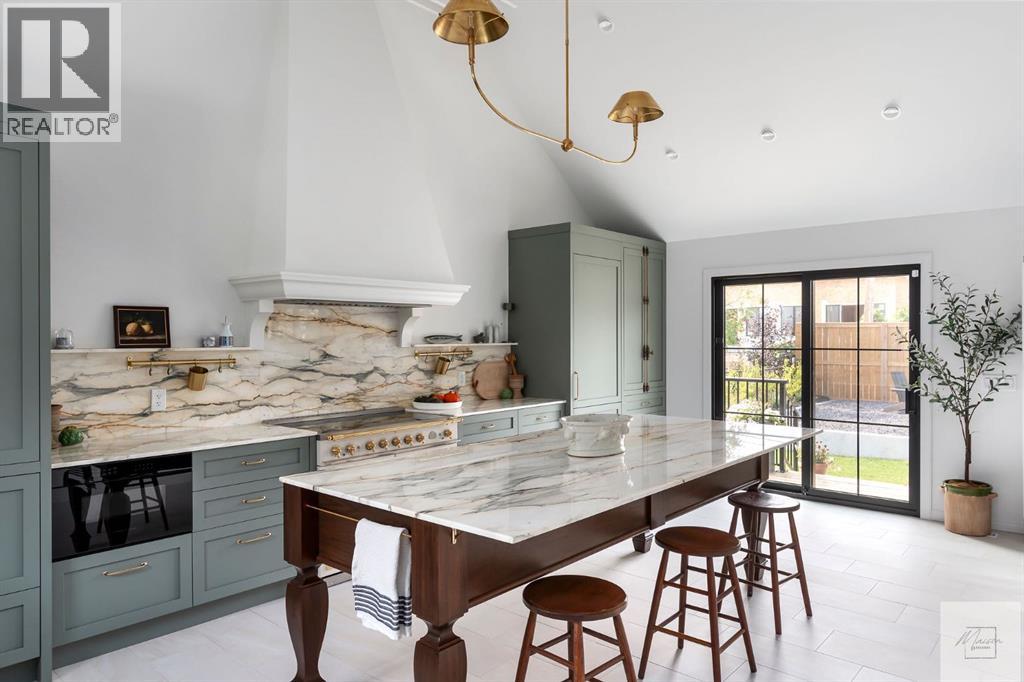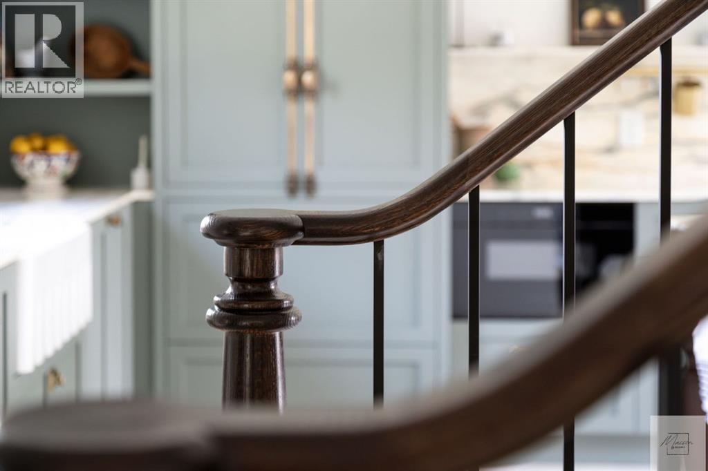 Wow! This stunning completely renovated two storey home has over 3,000 sq ft of total living space and sits on a full size estate lot designed with exceptional and sophisticated taste that will be sure to leave a lasting impression. One of the most anticipated homes to come to market, this executive home stands out from all the rest and is crafted by design firm Maison Artisanal in a forever dream location. Upon entry you are greeted with a modern & old world charm elegance, exceptional details of designer features, custom front door, flat ceilings with custom mouldings, tile + original oak flooring, black framed LUX windows, bright + open contemporary living area w/ a soothing fireplace with imported Louis XV marble surround, front office or bedroom or flex room, hardwood encased stairwell with custom hand crafted railings, large dining room with custom bench seating, designer lighting with transom window poised to host many dinner nights with friends + family enjoying the sculpted interior lines of the show stopper magazine quality kitchen with oversized full height chimney reaching the full height vaulted ceilings with open gable, full Paonazzo imported marble slab island (5 slabs total) with dairy table island with cup pull antique brass handles, shaker cabinetry with Broughtons of Leicester hardware, Gaggenau panel fridge, imported 43' La Cornue induction stove, loads of marble counter space, high end fixtures, Fisher Paykel drawer microwave, double drawer dishwasher, drawer freezer, great storage & fabulous pot lighting! You will enjoy the mudroom with built-in lockers, and at the end of the hall is a spectacular 3 pc washroom with exceptional quality details and shower. Upstairs has a overlook to the kitchen, primary vintage chic suite with fireplace, large spacious walk-in closet with custom closet builtins + steam closet, a luxurious spa ensuite with custom shower w/ 10 mm glass, imported tile, soaker tub, modern fixtures, gorgeous double walnut vanity, and heated tile floors with towel rack. Across the hall is a large second bedroom with good closet space and high end 4-piece Jack + Jill washroom with designer lighting and tile that meets the other spacious bedroom plus upper laundry. Lower area features a fully finished entertainers dream space that hosts a recreation area with custom builtin bench seating, amazing custom bar with full size wine fridge, brass inlay, gym, family fun games area, second laundry area, 3 piece washroom, large storage, spacious 5th bedroom with egress windows, and high end mechanical. While you are taking it all in don’t miss the upgrades such as the landscaping, custom composite exterior, EV charger, rough-in AC/ solar panel, sumps pump, HRV, cat 6 throughout, high end roof + windows + access to your new oversized double car garage, over 55k appliance package, west facing yard with deck, huge front concrete patio overlooking greenspace, original oak floors, built-ins, estate level finishing & so much more! A must to see! (id:55577)