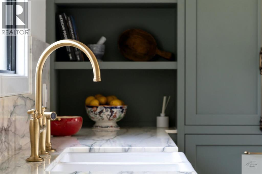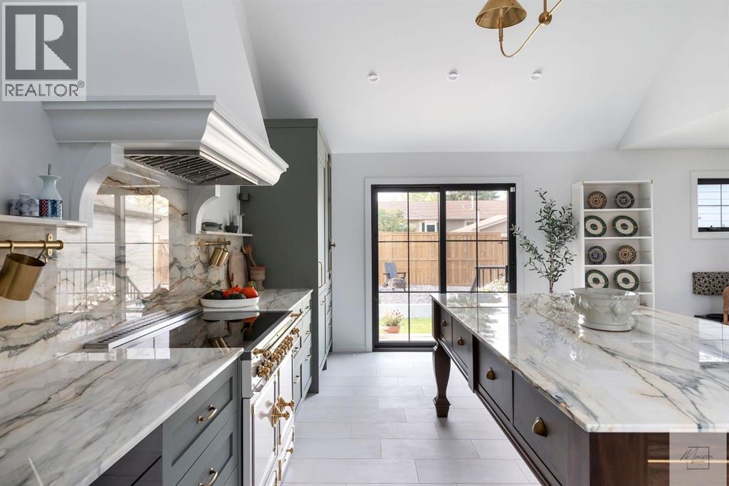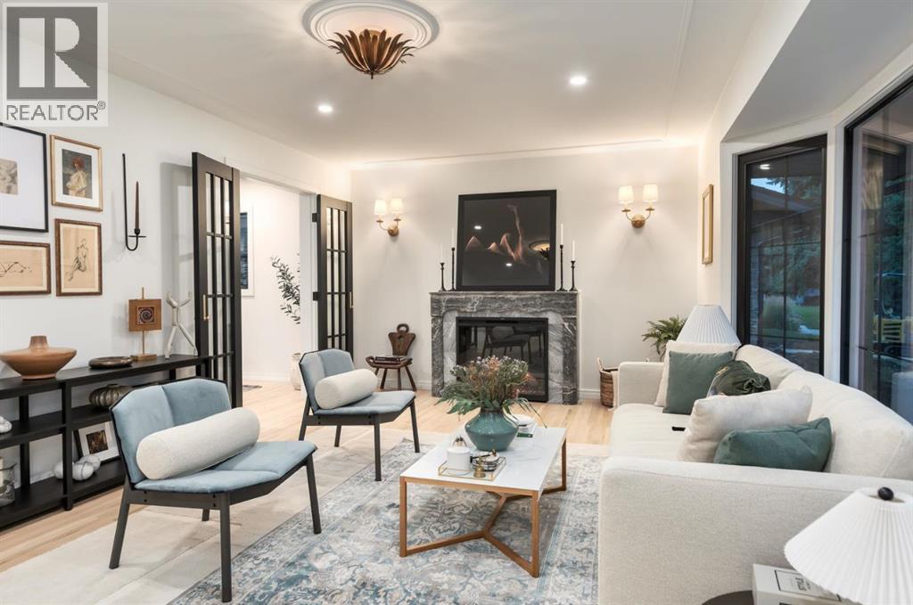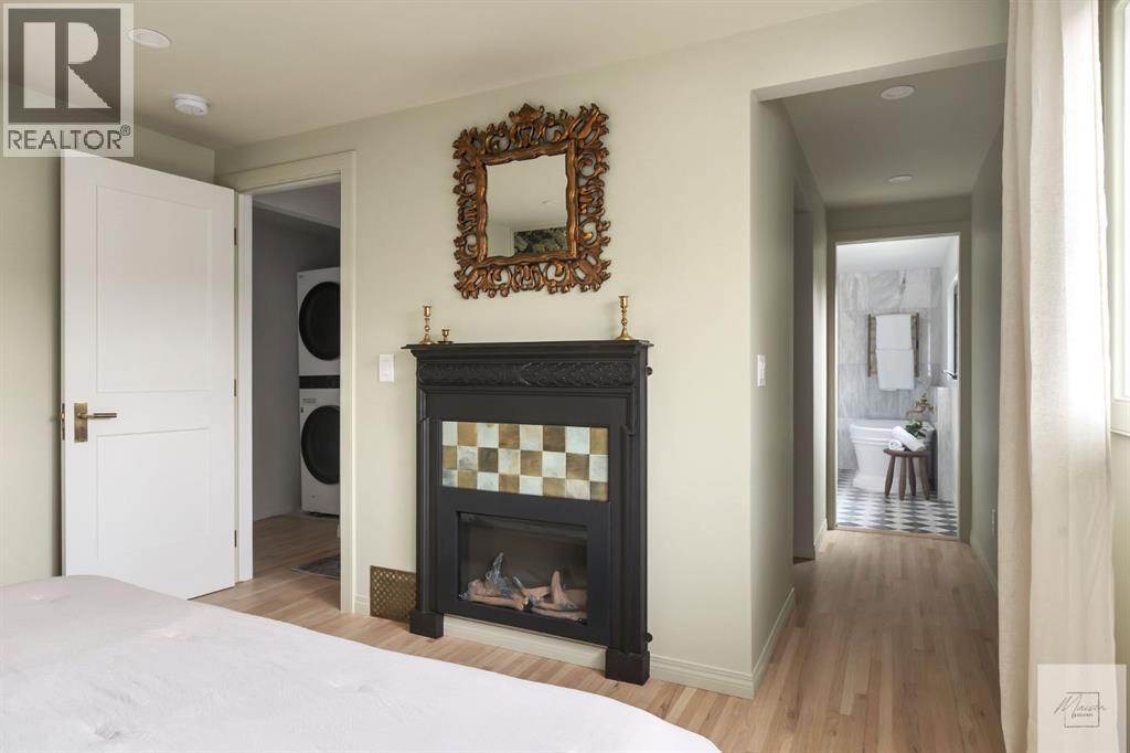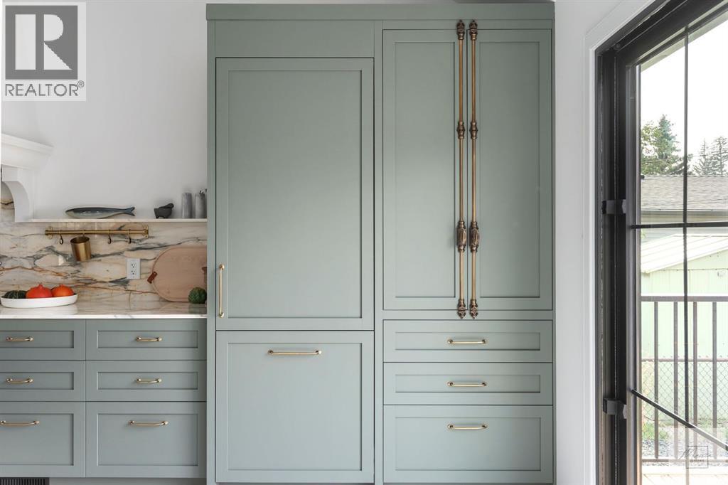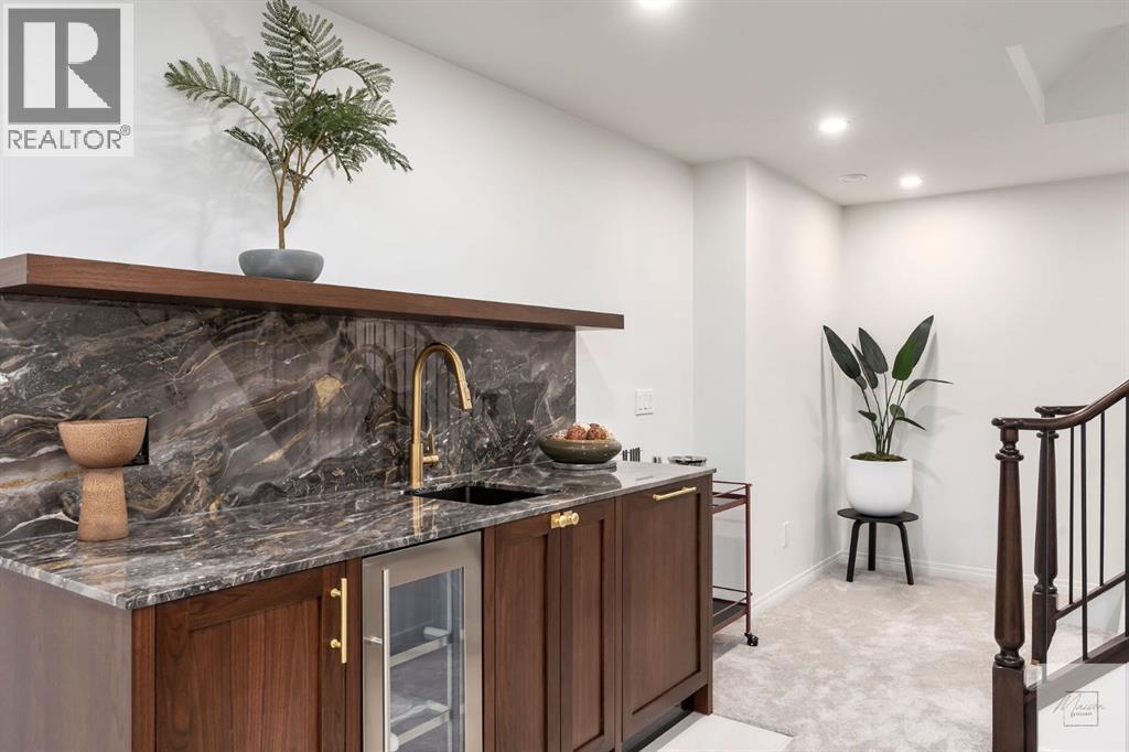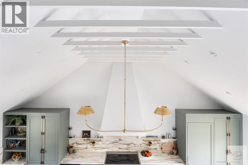 Wow! This stunning completely renovated two storey home has over 3,000 sq ft of total living space and sits on a full size estate lot designed with exceptional and sophisticated taste that will be sure to leave a lasting impression. One of the most anticipated homes to come to market, this executive home stands out from all the rest and is crafted by design firm Maison Artisanal in a forever dream location. Upon entry you are greeted with a modern & old world charm elegance, exceptional details of designer features, custom front door, flat ceilings with custom mouldings, tile + original oak flooring, black framed LUX windows, bright + open contemporary living area w/ a soothing fireplace with imported Louis XV marble surround, front office or bedroom or flex room, hardwood encased stairwell with custom hand crafted railings, large dining room with custom bench seating, designer lighting with transom window poised to host many dinner nights with friends + family enjoying the sculpted interior lines of the show stopper magazine quality kitchen with oversized full height chimney reaching the full height vaulted ceilings with open gable, full Paonazzo imported marble slab island (5 slabs total) with dairy table island with cup pull antique brass handles, shaker cabinetry with Broughtons of Leicester hardware, Gaggenau panel fridge, imported 43' La Cornue induction stove, loads of marble counter space, high end fixtures, Fisher Paykel drawer microwave, double drawer dishwasher, drawer freezer, great storage & fabulous pot lighting! You will enjoy the mudroom with built-in lockers, and at the end of the hall is a spectacular 3 pc washroom with exceptional quality details and shower. Upstairs has a overlook to the kitchen, primary vintage chic suite with fireplace, large spacious walk-in closet with custom closet builtins + steam closet, a luxurious spa ensuite with custom shower w/ 10 mm glass, imported tile, soaker tub, modern fixtures, gorgeous double walnut vanity, and heated tile floors with towel rack. Across the hall is a large second bedroom with good closet space and high end 4-piece Jack + Jill washroom with designer lighting and tile that meets the other spacious bedroom plus upper laundry. Lower area features a fully finished entertainers dream space that hosts a recreation area with custom builtin bench seating, amazing custom bar with full size wine fridge, brass inlay, gym, family fun games area, second laundry area, 3 piece washroom, large storage, spacious 5th bedroom with egress windows, and high end mechanical. While you are taking it all in don’t miss the upgrades such as the landscaping, custom composite exterior, EV charger, rough-in AC/ solar panel, sumps pump, HRV, cat 6 throughout, high end roof + windows + access to your new oversized double car garage, over 55k appliance package, west facing yard with deck, huge front concrete patio overlooking greenspace, original oak floors, built-ins, estate level finishing & so much more! A must to see! (id:55577)