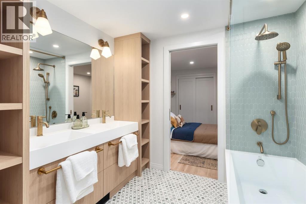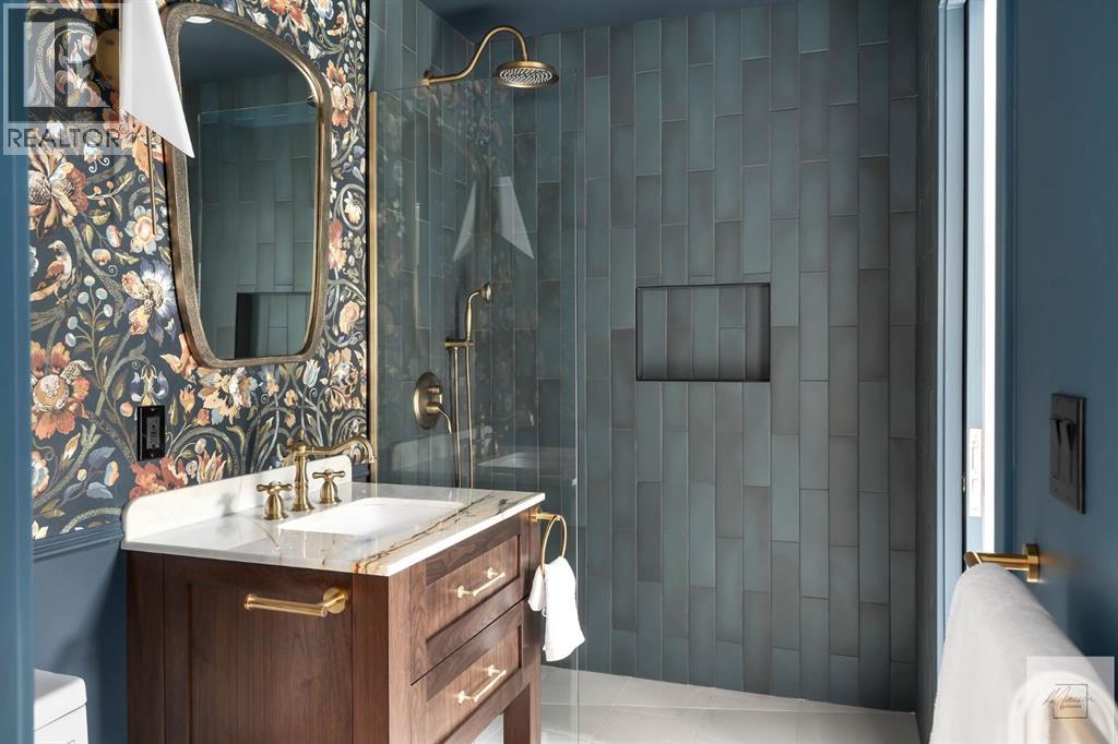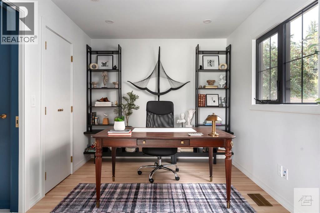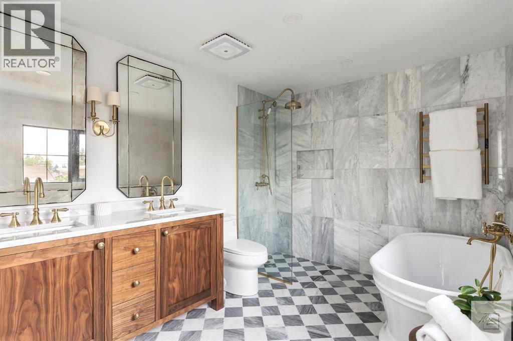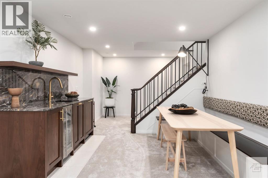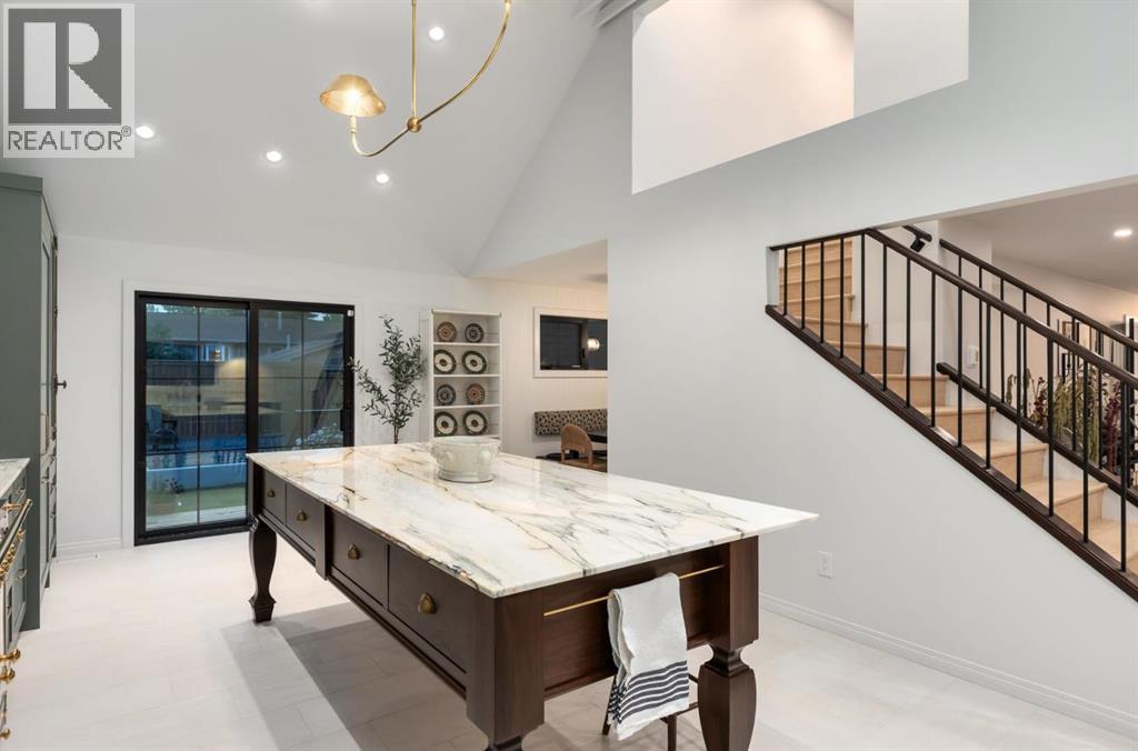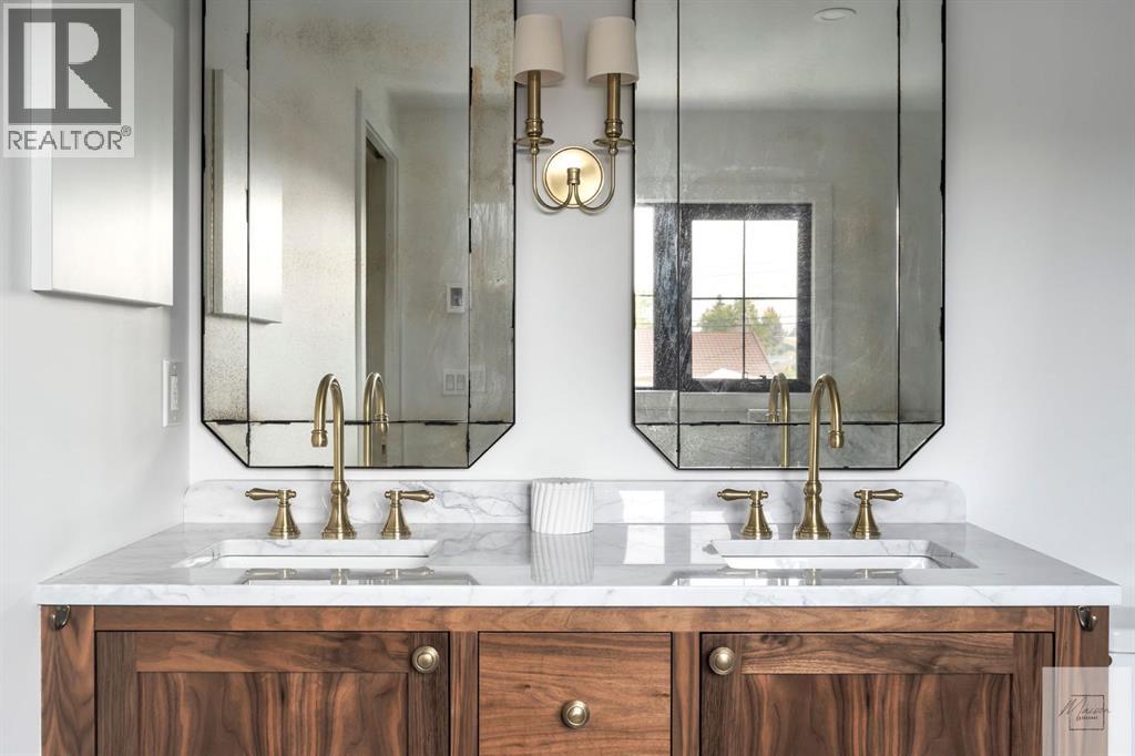 Wow! This stunning completely renovated two storey home has over 3,000 sq ft of total living space and sits on a full size estate lot designed with exceptional and sophisticated taste that will be sure to leave a lasting impression. One of the most anticipated homes to come to market, this executive home stands out from all the rest and is crafted by design firm Maison Artisanal in a forever dream location. Upon entry you are greeted with a modern & old world charm elegance, exceptional details of designer features, custom front door, flat ceilings with custom mouldings, tile + original oak flooring, black framed LUX windows, bright + open contemporary living area w/ a soothing fireplace with imported Louis XV marble surround, front office or bedroom or flex room, hardwood encased stairwell with custom hand crafted railings, large dining room with custom bench seating, designer lighting with transom window poised to host many dinner nights with friends + family enjoying the sculpted interior lines of the show stopper magazine quality kitchen with oversized full height chimney reaching the full height vaulted ceilings with open gable, full Paonazzo imported marble slab island (5 slabs total) with dairy table island with cup pull antique brass handles, shaker cabinetry with Broughtons of Leicester hardware, Gaggenau panel fridge, imported 43' La Cornue induction stove, loads of marble counter space, high end fixtures, Fisher Paykel drawer microwave, double drawer dishwasher, drawer freezer, great storage & fabulous pot lighting! You will enjoy the mudroom with built-in lockers, and at the end of the hall is a spectacular 3 pc washroom with exceptional quality details and shower. Upstairs has a overlook to the kitchen, primary vintage chic suite with fireplace, large spacious walk-in closet with custom closet builtins + steam closet, a luxurious spa ensuite with custom shower w/ 10 mm glass, imported tile, soaker tub, modern fixtures, gorgeous double walnut vanity, and heated tile floors with towel rack. Across the hall is a large second bedroom with good closet space and high end 4-piece Jack + Jill washroom with designer lighting and tile that meets the other spacious bedroom plus upper laundry. Lower area features a fully finished entertainers dream space that hosts a recreation area with custom builtin bench seating, amazing custom bar with full size wine fridge, brass inlay, gym, family fun games area, second laundry area, 3 piece washroom, large storage, spacious 5th bedroom with egress windows, and high end mechanical. While you are taking it all in don’t miss the upgrades such as the landscaping, custom composite exterior, EV charger, rough-in AC/ solar panel, sumps pump, HRV, cat 6 throughout, high end roof + windows + access to your new oversized double car garage, over 55k appliance package, west facing yard with deck, huge front concrete patio overlooking greenspace, original oak floors, built-ins, estate level finishing & so much more! A must to see! (id:55577)