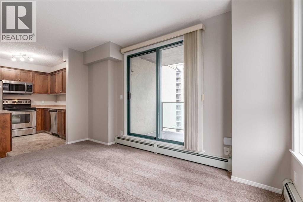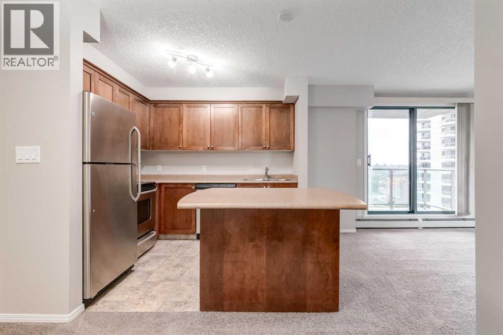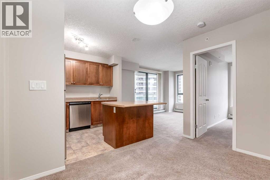 This bright and stylish two-bedroom corner unit offers panoramic views of the Bow River and the surrounding pathway system. Freshly repainted throughout, the home is in excellent, move-in-ready condition. The kitchen features a stainless steel appliance package, a large island, and ample counter and storage space, making it perfect for cooking and entertaining. The open-concept layout features a spacious living and dining area, two generous bedrooms, a full bathroom, and convenient in-suite laundry. Enjoy titled parking in a highly secure building with exceptional amenities, including a full-time concierge, a fully equipped fitness centre, bike storage, and more. Ideally located just steps from downtown, the Bow River pathway, Kensington shops, transit, and some of Calgary’s best dining and entertainment options. Vacant and ready for immediate possession, this is city living at its best. A perfect blend of comfort, style, and convenience for young professionals or investors alike. (id:55577)