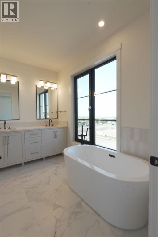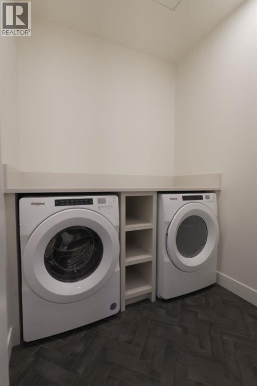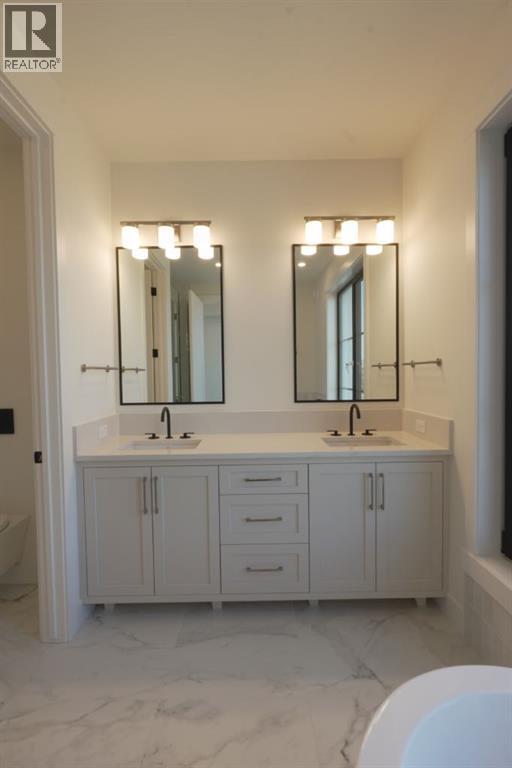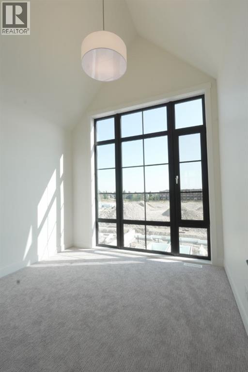 Nestled in the heart of Seventeen Hundred at Aspen Estates, this luxurious townhome with The Dalton floorplan (a design finalist with the 2025 BILD Calgary Awards) has been carefully crafted by RareBuilt Homes & offers over 2,700 sq ft of refined living space, complete with 3 bedrooms, amazing mountain views and exceptional design throughout. The airy main level with lofty 9’ ceilings, showcases engineered hardwood flooring, and expansive high end European triple glazed tilt & turn windows that flood the home with natural light. A spacious great room centers around a striking feature fireplace and opens to a large balcony with a louvered roof—perfect for year round enjoyment. A dedicated office space provides an ideal setting for work from home days. The beautifully appointed kitchen features quartz countertops, a generous island with eating bar, full height custom cabinetry, a walk in pantry, and a premium appliance package. The dining area comfortably accommodates gatherings with family and friends. A stylish 2 piece powder room completes the main level. Upstairs, the second level hosts three well proportioned bedrooms, a 4 piece bath, and convenient laundry facilities. The serene primary retreat with soaring vaulted ceiling includes a spacious walk in closet and a private 5 piece ensuite with in floor heat, dual sinks, a freestanding soaker tub, and a separate shower. The lower level offers impressive versatility with a large flex room and direct access to a walk out patio—ideal for a media room, fitness area, or family space. This level also includes a mudroom connecting to the fully finished & painted oversized double attached garage that’s EV charger ready. Additional highlights include an elevator serving all three levels, central air conditioning, six solar panels, and concrete demising walls for enhanced privacy and noise reduction. Set within an exclusive complex spanning nearly 9 acres—5.5 of which are dedicated to green space—this residence delivers an u nparalleled standard of comfort, quality, and sophisticated living. (id:55577)
