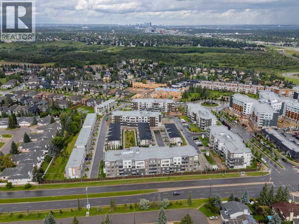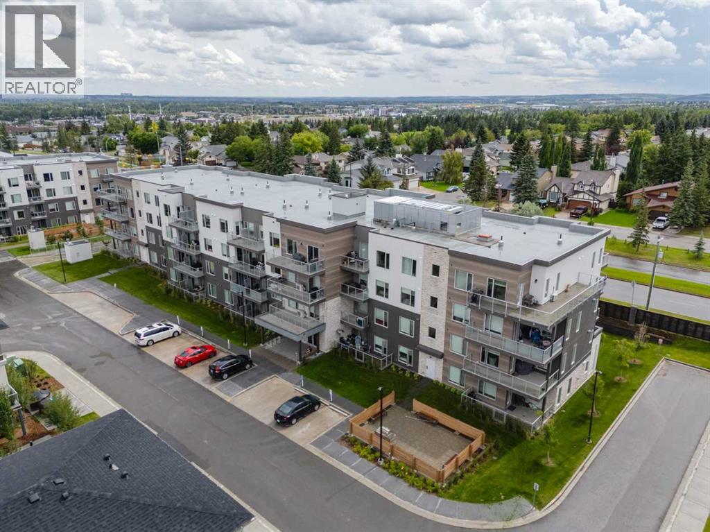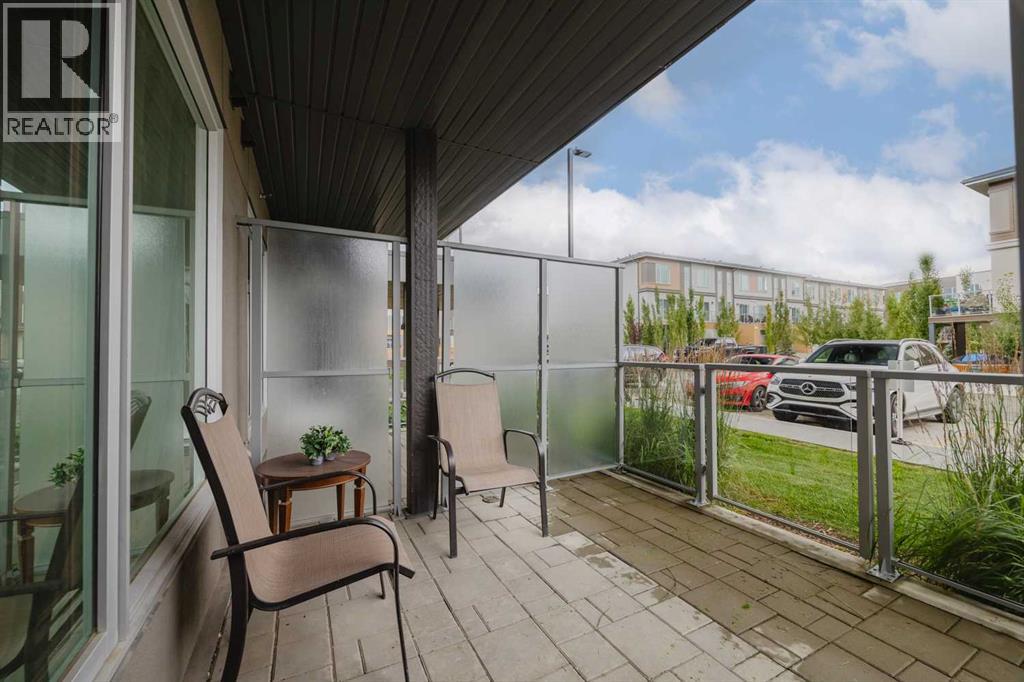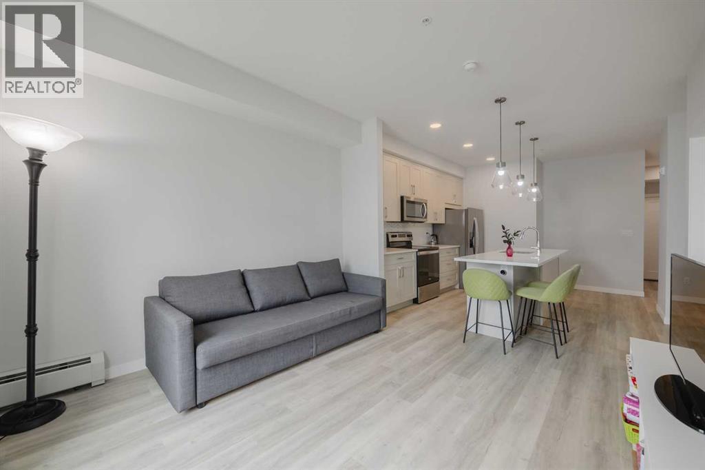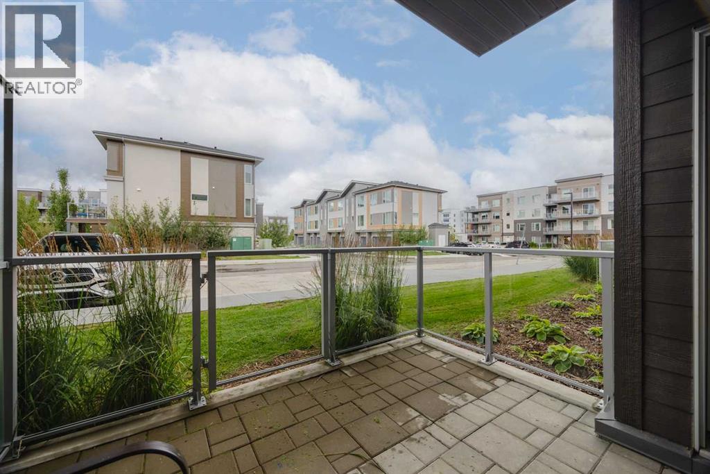 Stylish and modern, this 2-bedroom, 1-bathroom condo is part of the newly built (2023) Fish Creek Exchange in the desirable neighborhood of Shawnee Slopes. Offering 743 sq ft (builder size), it features luxury vinyl plank flooring, high ceilings, and a sleek kitchen with quartz countertops, stainless steel appliances, and full-height cabinetry. A well-designed 4-piece bathroom completes the polished interior.Titled underground parking and an additional Secured titled storage cage add convenience. The private ground-level patio with privacy screens offers an inviting space for morning coffee, summer evenings, or easy outdoor access — all while connecting directly to the landscaped courtyard.Steps from the Fish Creek–Lacombe LRT Station and just minutes from Fish Creek Provincial Park, this home blends modern comfort with unbeatable access to nature, transit, and a vibrant community. (id:55577)