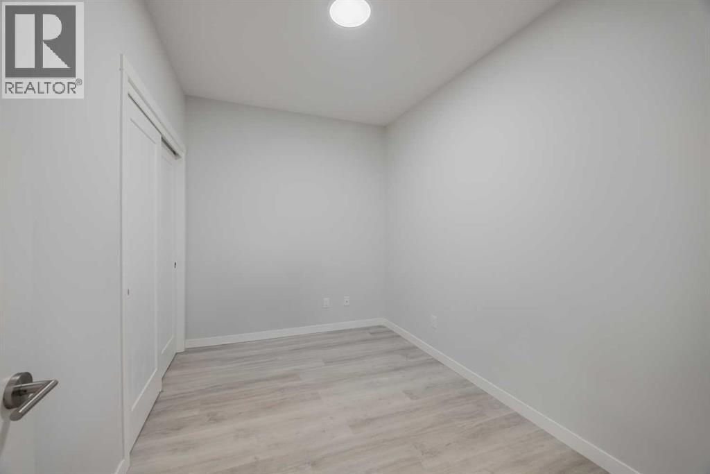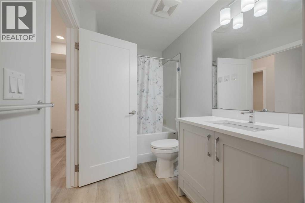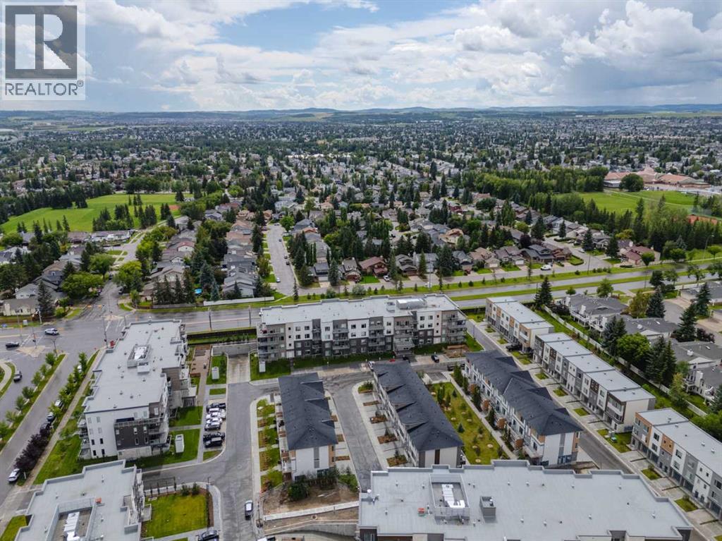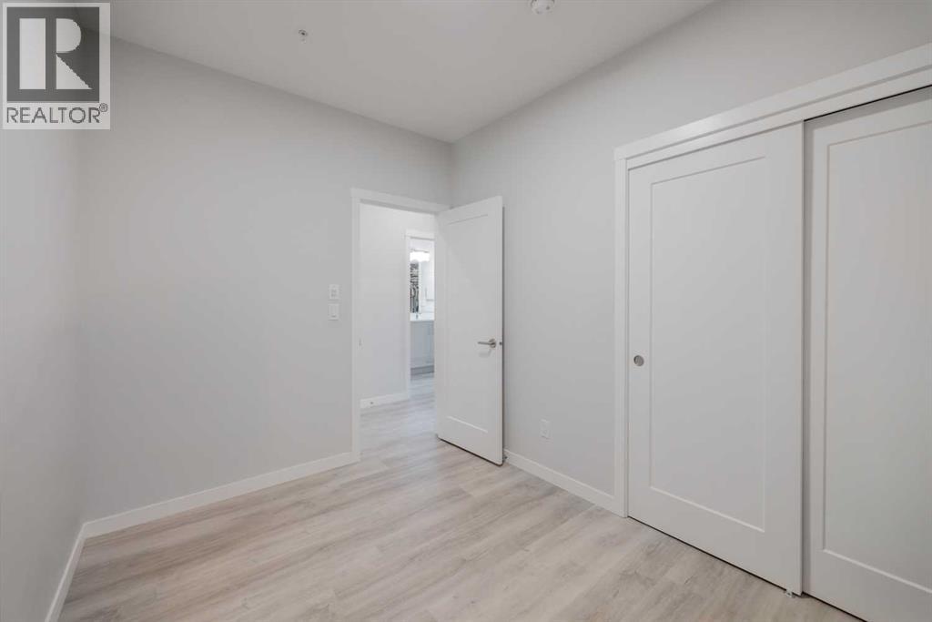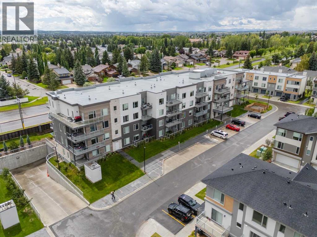 Stylish and modern, this 2-bedroom, 1-bathroom condo is part of the newly built (2023) Fish Creek Exchange in the desirable neighborhood of Shawnee Slopes. Offering 743 sq ft (builder size), it features luxury vinyl plank flooring, high ceilings, and a sleek kitchen with quartz countertops, stainless steel appliances, and full-height cabinetry. A well-designed 4-piece bathroom completes the polished interior.Titled underground parking and an additional Secured titled storage cage add convenience. The private ground-level patio with privacy screens offers an inviting space for morning coffee, summer evenings, or easy outdoor access — all while connecting directly to the landscaped courtyard.Steps from the Fish Creek–Lacombe LRT Station and just minutes from Fish Creek Provincial Park, this home blends modern comfort with unbeatable access to nature, transit, and a vibrant community. (id:55577)