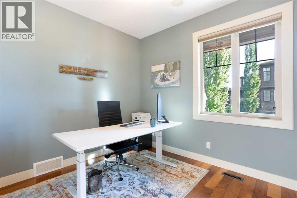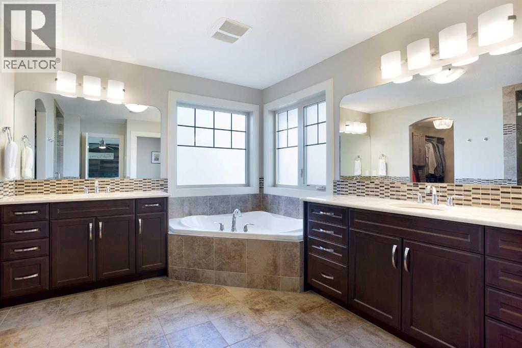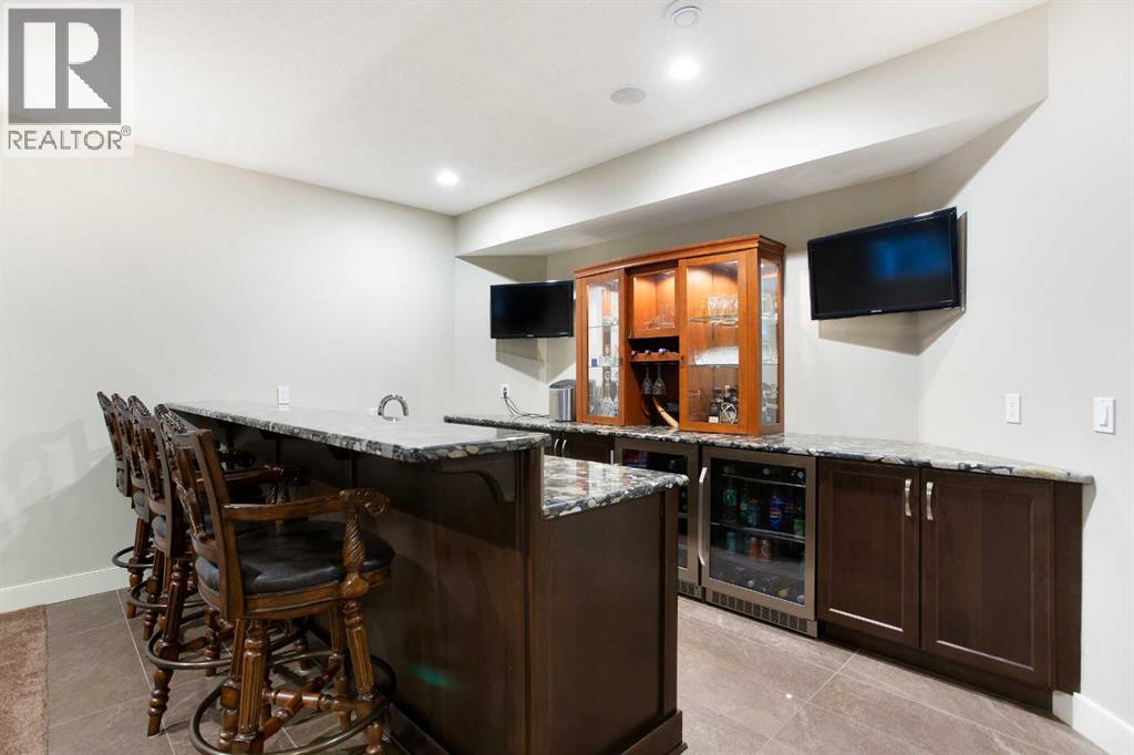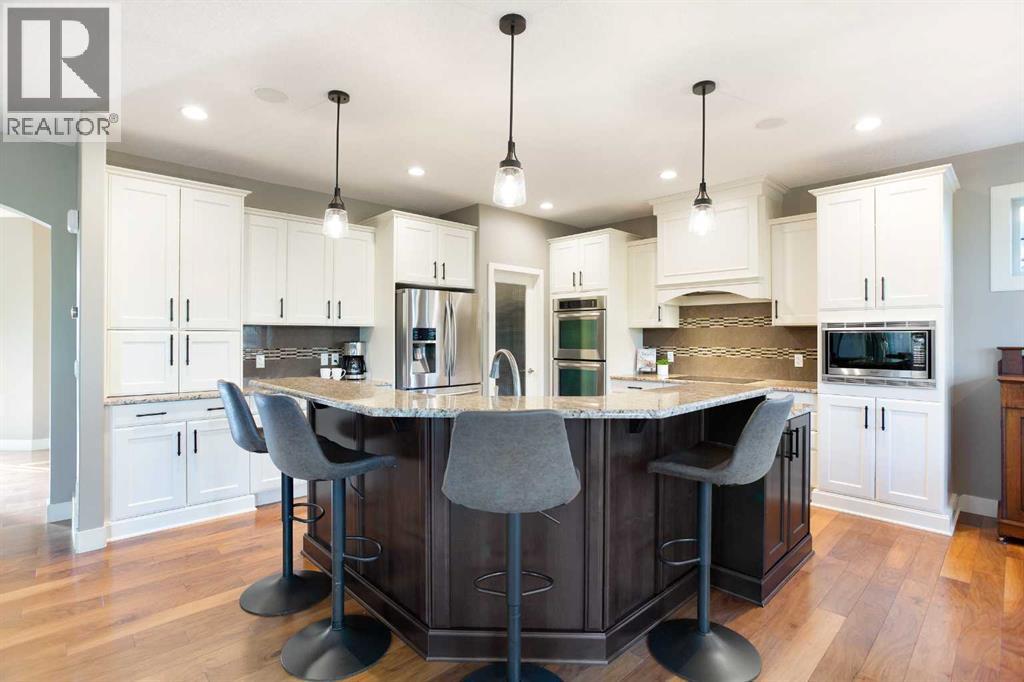 Welcome to luxury living in the heart of Coopers Crossing. This stunning, fully developed estate home offers over 4,000 sq. ft. of luxurious living space, perfectly designed for family life and entertaining. Designed with exceptional attention to detail and loaded with premium upgrades, this home delivers a perfect balance of function, comfort, and style.Step inside to discover Brazilian mahogany hardwood floors, 9’ ceilings, and built-in ceiling speakers with zone control throughout the main level. The bright and open floor plan features a cozy living room with a gas fireplace, a private front office, and a powder room. The kitchen is made for entertaining, showcasing stainless steel appliances, double wall ovens, two dishwashers, granite countertops, and a massive island perfect for gathering. A walk-through pantry connects to a well-organized mudroom and a hidden storage room with secondary laundry hookups.Upstairs, the spacious primary suite offers a true retreat experience with a spa-inspired 5-piece ensuite, a walk-through closet with custom built-ins, and direct access to the upper laundry room. You’ll also find three additional generously sized bedrooms and a 4-piece bathroom with heated tile floors.The fully finished basement is an entertainer’s dream, featuring in-floor heating, a large rec room, a wet bar with a stunning Black Marinace stone countertop, a soundproofed theatre room wired for surround sound, and a full 3-piece bathroom.Enjoy your low-maintenance backyard oasis with composite decking, custom stone patio, underground sprinklers, and a convenient walk-through shed for storage and rear access.Additional features include:Heated floors in mudroom, hidden room and main floor pantryOversized heated garage with in-floor heating and professional epoxy flooringDual furnaces and A/C unitsWater softener and boiler system for in-floor heatingCentral vacuum systemThoughtful built-in storage throughoutPerfectly located within walk ing distance to schools, playgrounds, scenic pathways, and Coopers Promenade shops and services, this home truly has it all. (id:55577)