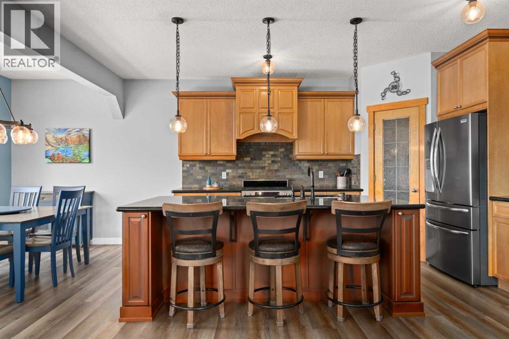 Imagine moving into this home just in time to enjoy long summer evenings on your private deck, overlooking the landscaped yard, with Morningside playground and Willow Pond just beyond—offering both a peaceful backdrop and easy access to outdoor living.This fully developed walk-out home blends sophistication with warmth, beginning on the main floor with a beautifully open layout designed for everyday living and effortless entertaining. The classic kitchen features timeless cabinetry, a built-in hood cover, and a central island with seating, all connecting seamlessly to a spacious living room and well-sized dining area. From here, step out to the extended deck and take in the privacy of mature trees and the natural setting behind.Upstairs, a vaulted bonus room creates a comfortable space to unwind, while the primary suite offers a spa-like retreat with an upgraded shower, a soaker tub set between dual vanities, and a walk-in closet. Two additional bedrooms—one with a thoughtfully designed study space—along with a full bathroom and upper-level laundry complete this level with ease.The walk-out lower level extends your lifestyle even further, opening directly to a private backyard oasis featuring a hot tub, fire pit area, stamped concrete patio and gate access to the adjacent pathway system. Inside, you’ll find a large rec room, a fourth bedroom, and a full bathroom—ideal for guests, teens, or additional family space.Thoughtfully maintained with meaningful updates over the years, including roof and some siding (2012), upper carpet, main floor flooring and paint (2021), furnace (2022), hot water tank and deck (2023), and the addition of air conditioning (2025). A home that offers comfort, connection, and a setting you’ll appreciate every day. (id:55577)