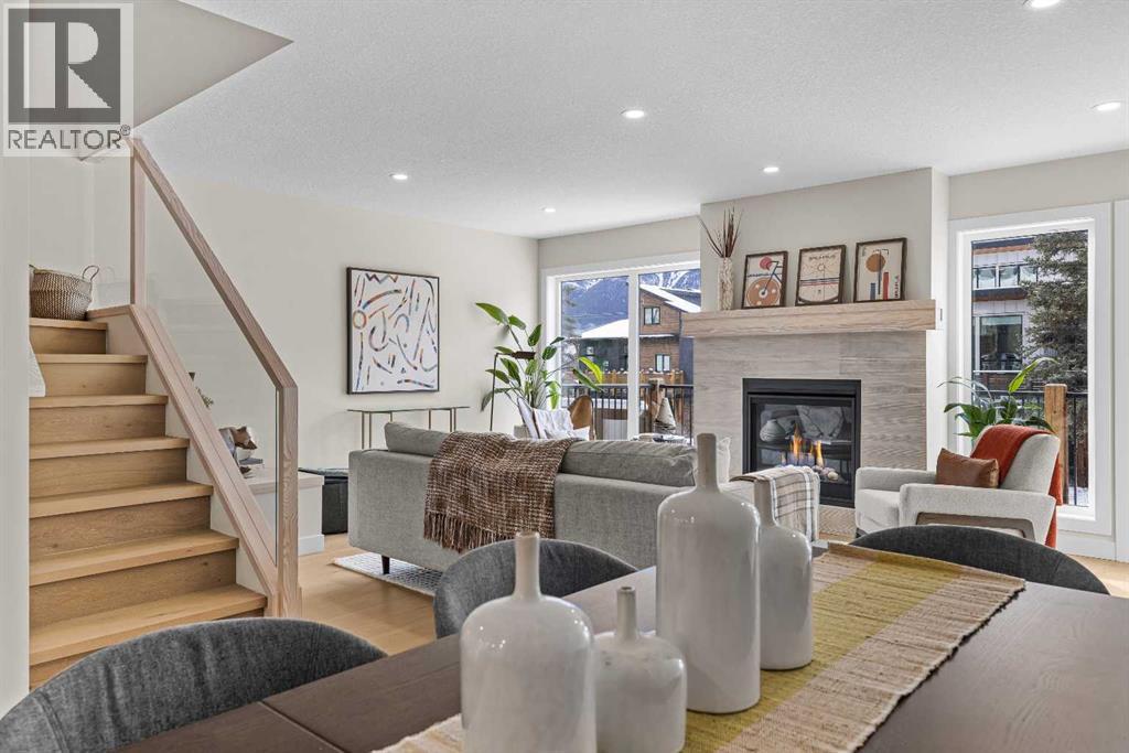 OPEN HOUSE - Saturday Jan 31 - 10am-2pm ---- Introducing Bald Eagle Peak Chalets, a collection of brand-new 4 bedroom, 3.5 bath luxury townhomes. Thoughtfully designed to balance comfort, style, and function, these homes offer the ideal combination of spacious layouts, premium finishes, and an exceptional location in the heart of Canmore’s revitalized TeePee Town.Step inside and experience 9’ ceilings, white oak hardwood floors, custom cabinetry, high-end appliances, and triple-pane windows that flood each space with natural light. At the heart of each home is a great room designed for gathering and connection, featuring a welcoming living room centered by a cozy gas fireplace, a dining area perfect for hosting family and friends, and a chef’s kitchen with a large island to gather around. This level also includes a half bath and seamless access to 2 outdoor spaces: a spacious mountain-view patio and a second deck off the kitchen for ideal indoor-outdoor flow.Upstairs, you’ll find 3 bedrooms and 2 full baths, including a comfortable primary suite with a spa-inspired ensuite and generous closet space. The lower level offers a versatile 4th bedroom with its own bath, ideal for guests, extended family, or future rental potential pending town approval.Every home includes a private yard, ample storage, an attached garage, and a dedicated gear storage room for bikes, skis, and mountain equipment.Located steps from Main Street, cafés, restaurants, shops, trails, and parks, this neighbourhood offers some of the best walkability in Canmore. As TeePee Town continues its revitalization, buyers benefit from long-term value and livability.With only a few units remaining, now is a great time to secure a Bald Eagle Peak Chalet. Inquire today for a private showing. (id:55577)