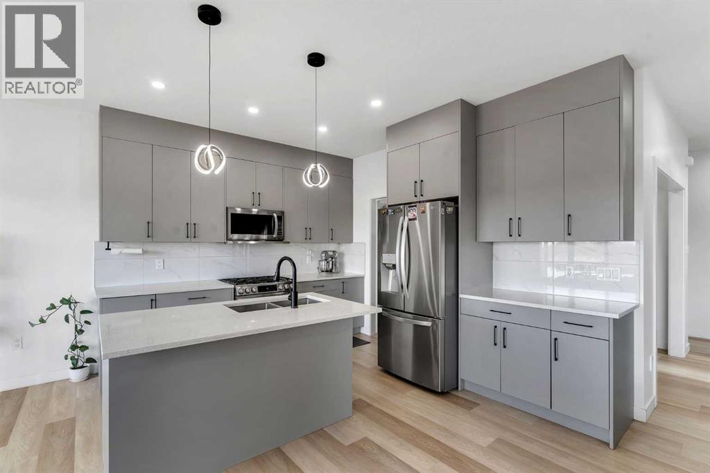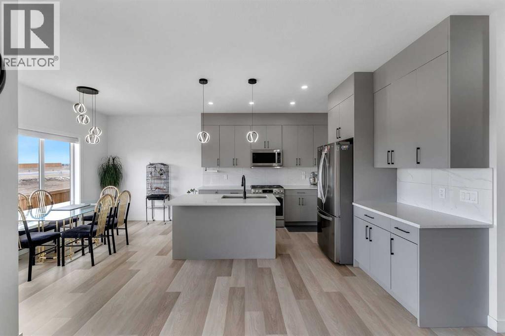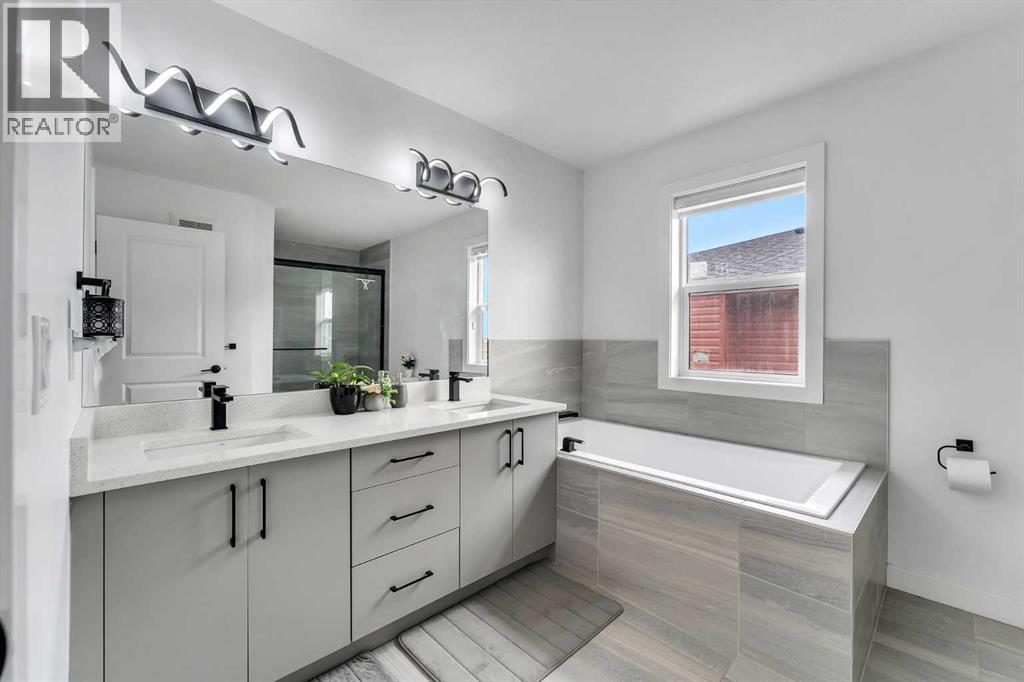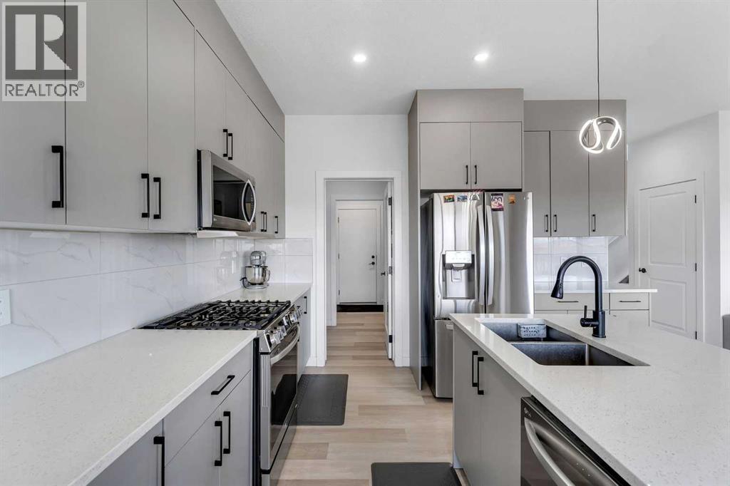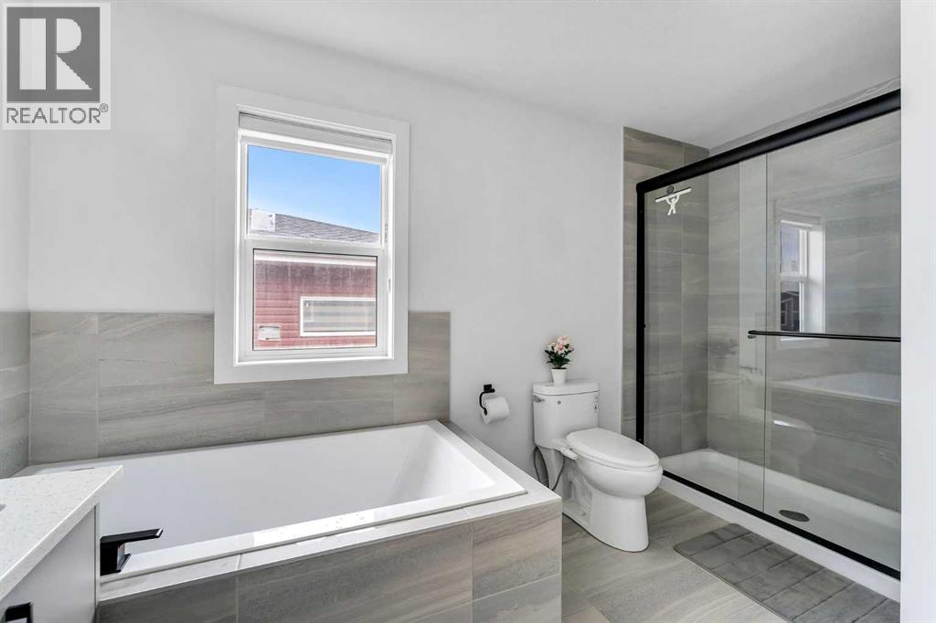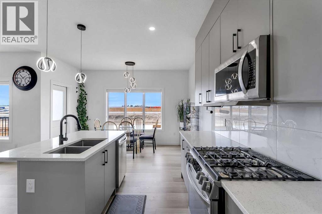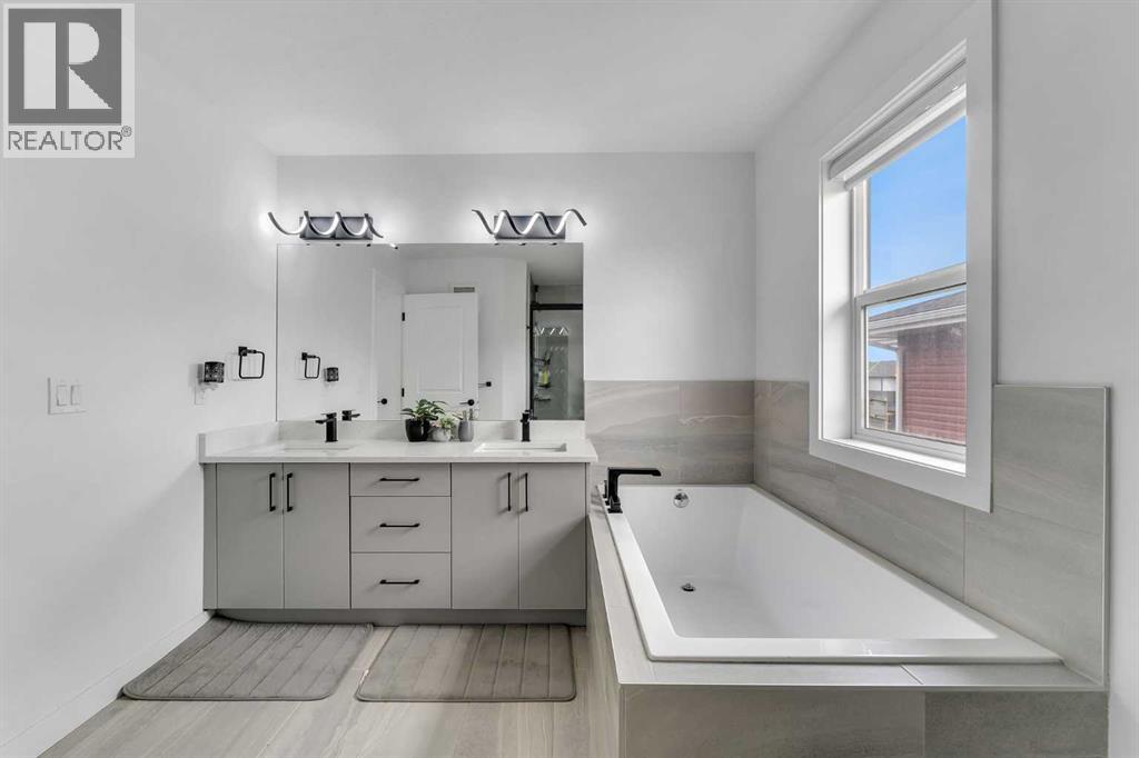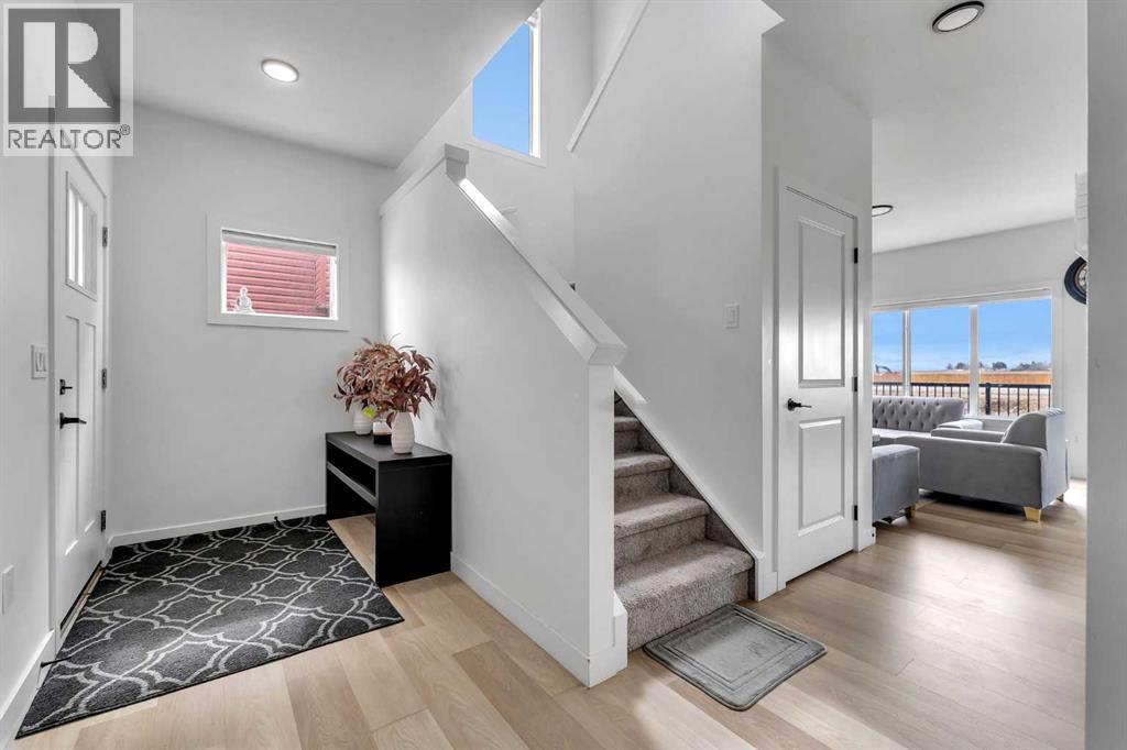 Welcome to this stunning home in the highly sought-after Waterford community of Chestermere!This beautifully designed property offers the perfect blend of elegance and functionality, complete with a double attached front garage and a spacious lot.Step inside to discover a bright, open-concept layout featuring 9-foot ceilings and a versatile main floor den—ideal for a home office or study space. The chef-inspired kitchen is a true highlight, boasting quartz countertops, premium cabinetry, a sleek backsplash, and a full stainless steel appliance package.A separate side entrance to the basement provides excellent future development potential.Upstairs, enjoy a cozy bonus room perfect for relaxing or entertaining, along with three generously sized bedrooms. The luxurious primary suite features a stylish double-sink ensuite. For added convenience, the upper-floor laundry room makes daily chores a breeze.Located just steps from shopping centres and the picturesque Chestermere Lake, this home offers the ideal setting for family living.Don’t miss out—book your showing today! (id:55577)