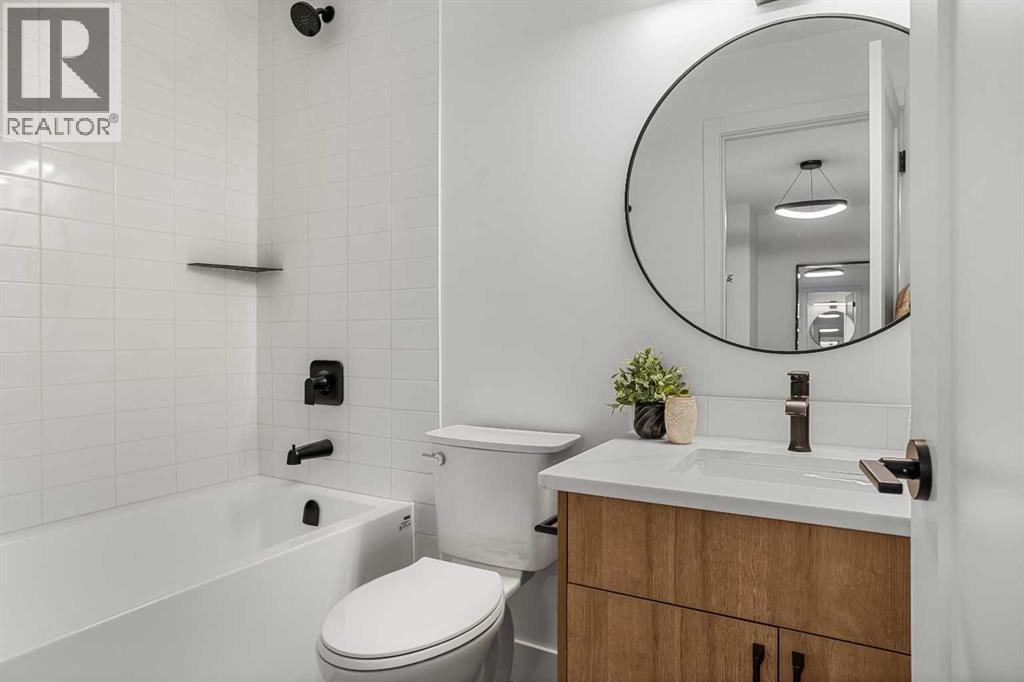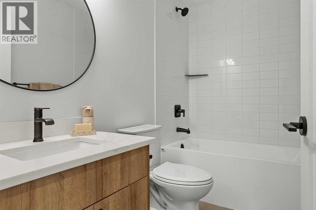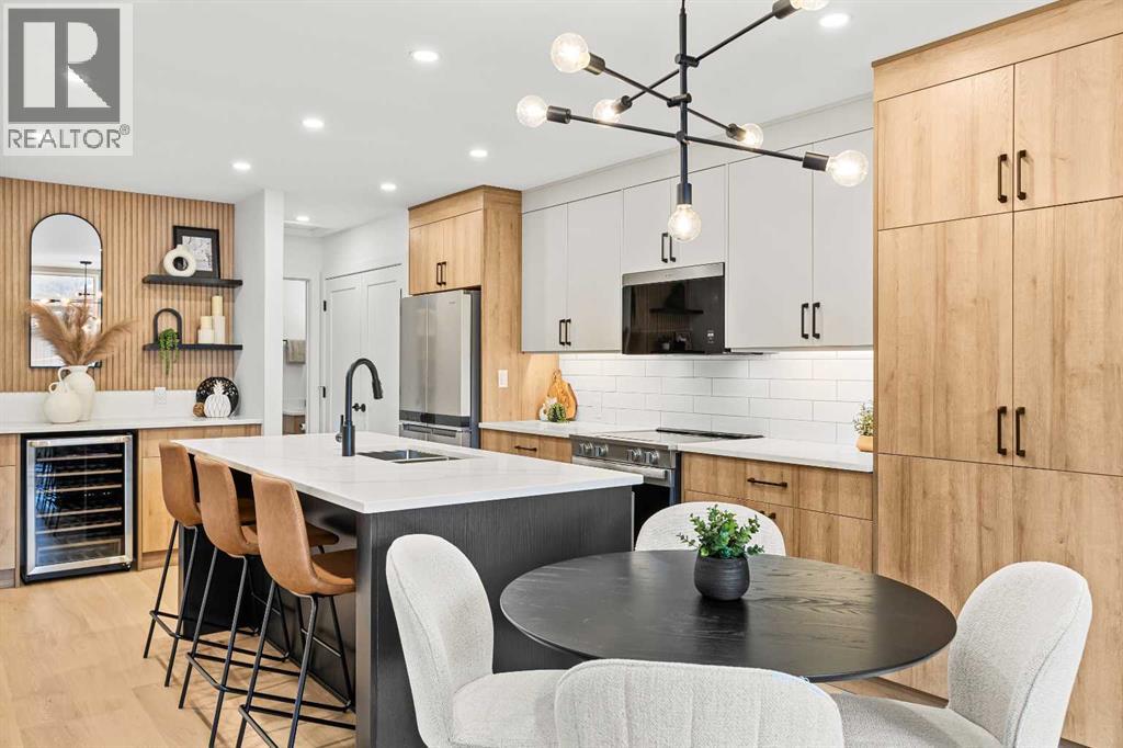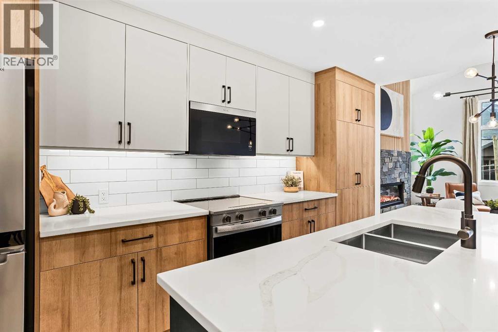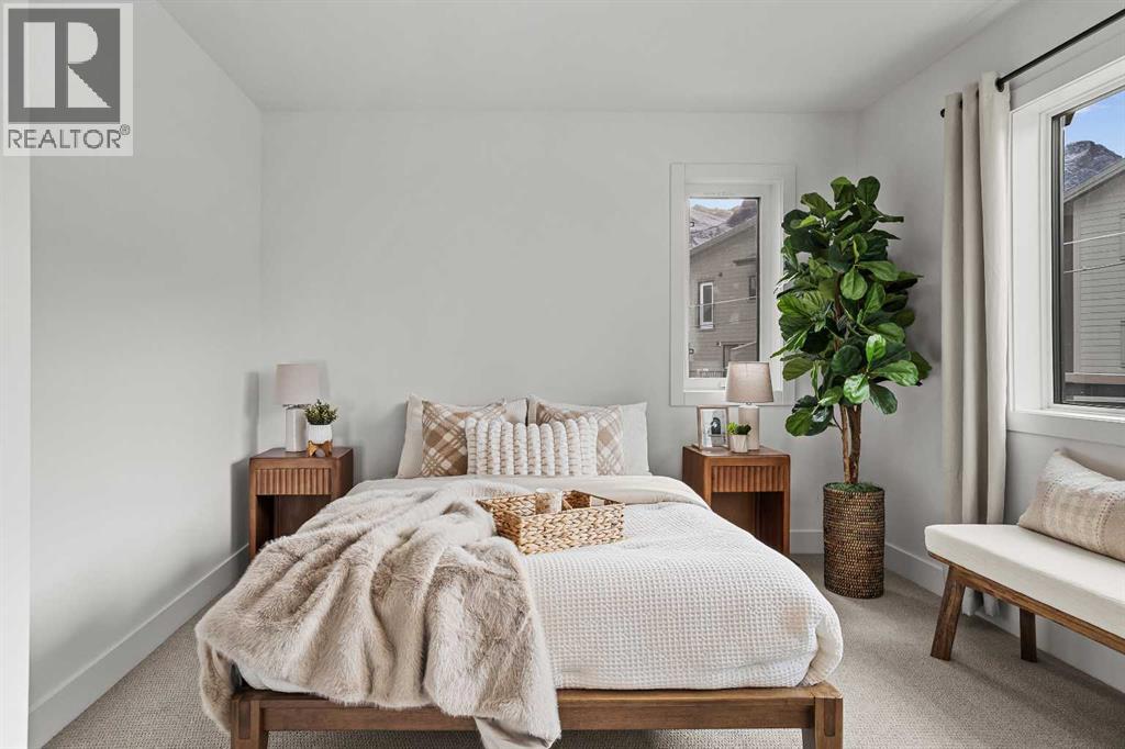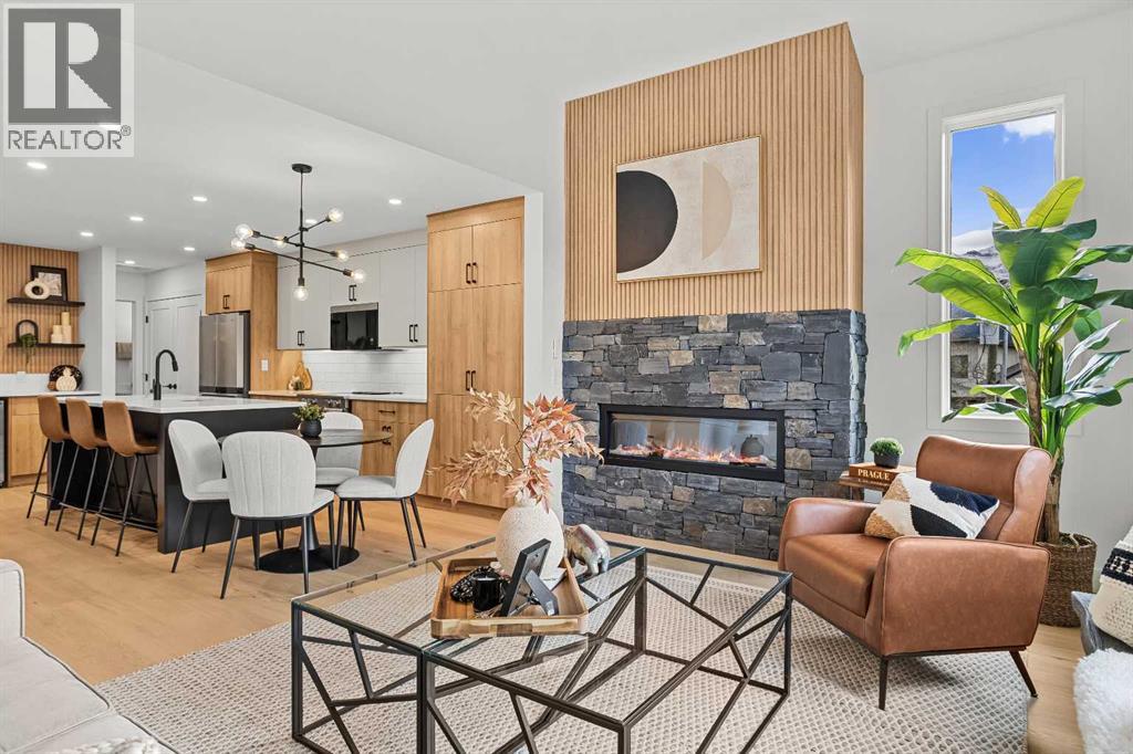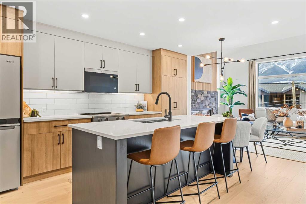 Unit 105 – The Point on Mountain AvenueWelcome to a home designed for mountain living—sun-filled, stylish, and built for real life in the Rockies. This beautifully crafted 3-bedroom, 4-bathroom residence offers over 2,300 sq. ft. of inspired living space, framed by west-facing views of the Rundle Range that glow at sunset and brighten every room.An open, vaulted living area sets the tone with a striking Rundle-stone fireplace, perfect for cozy evenings after a day on the trails. The spacious kitchen invites gathering and connection, complete with generous prep space and a dedicated coffee/wine bar to elevate mornings and unwind at night.Thoughtful touches are everywhere: a large single garage for gear and adventure-ready storage, a huge laundry room, and Built Green Certification for year-round comfort and efficiency.The versatile lower level expands how you live—ideal as a family hangout, private guest room, or work-from-home retreat—complete with a wet bar and separate entrance for true flexibility.With residential zoning and the lowest price per square foot of any new construction in Canmore, this home delivers unbeatable value in a quiet, sought-after neighbourhood just minutes from trails, cafés, and the charm of downtown.Spacious, modern, and mountain-ready—Unit 105 is where lifestyle meets smart investment. List price includes GST. (id:55577)