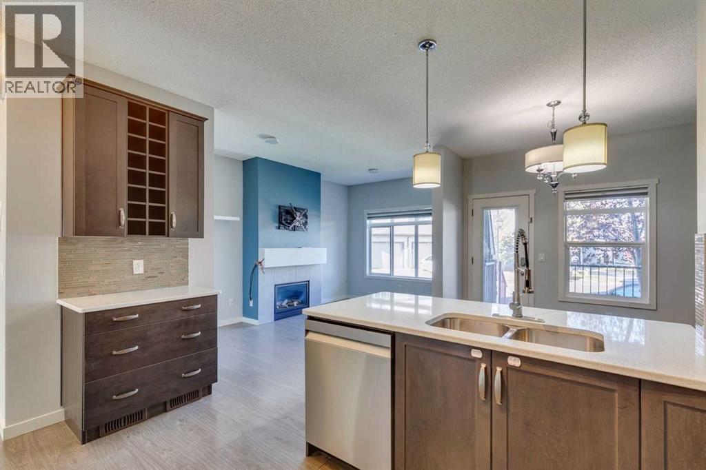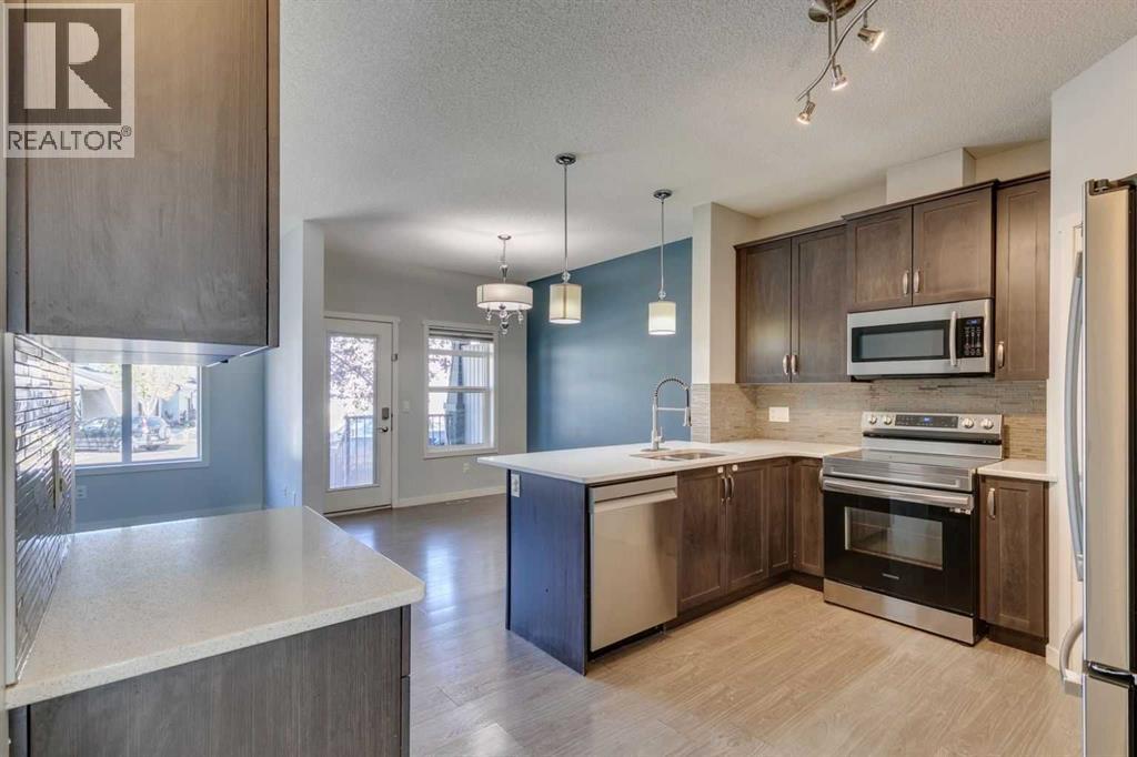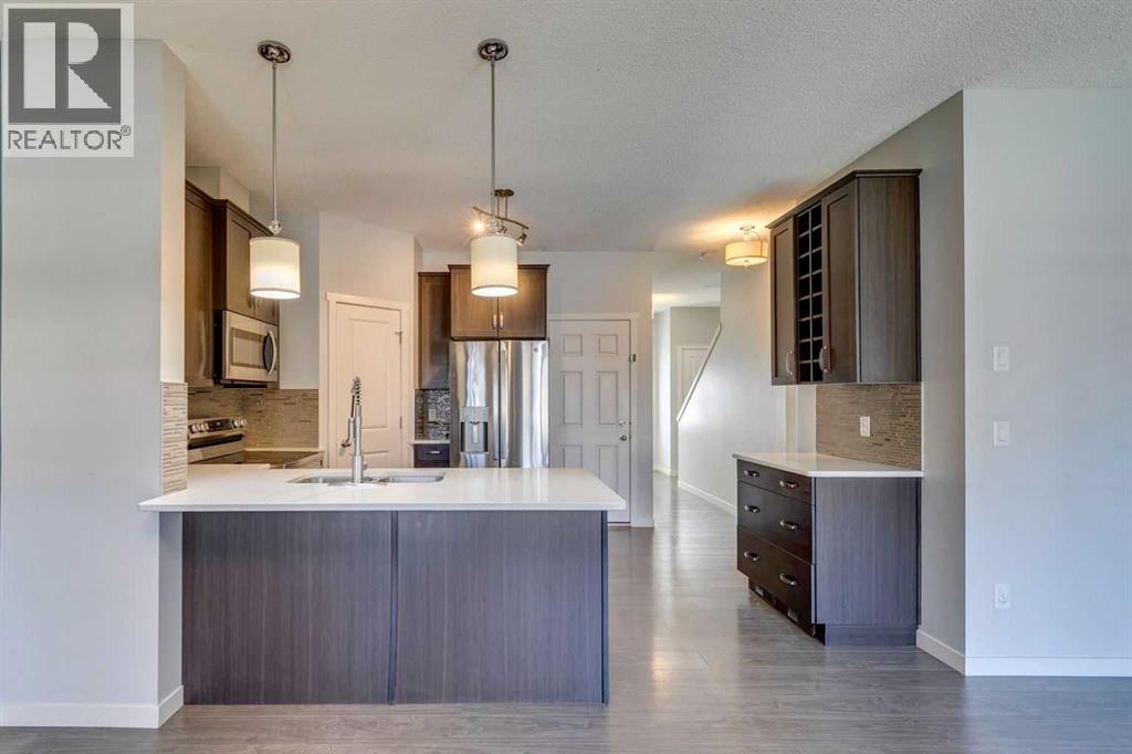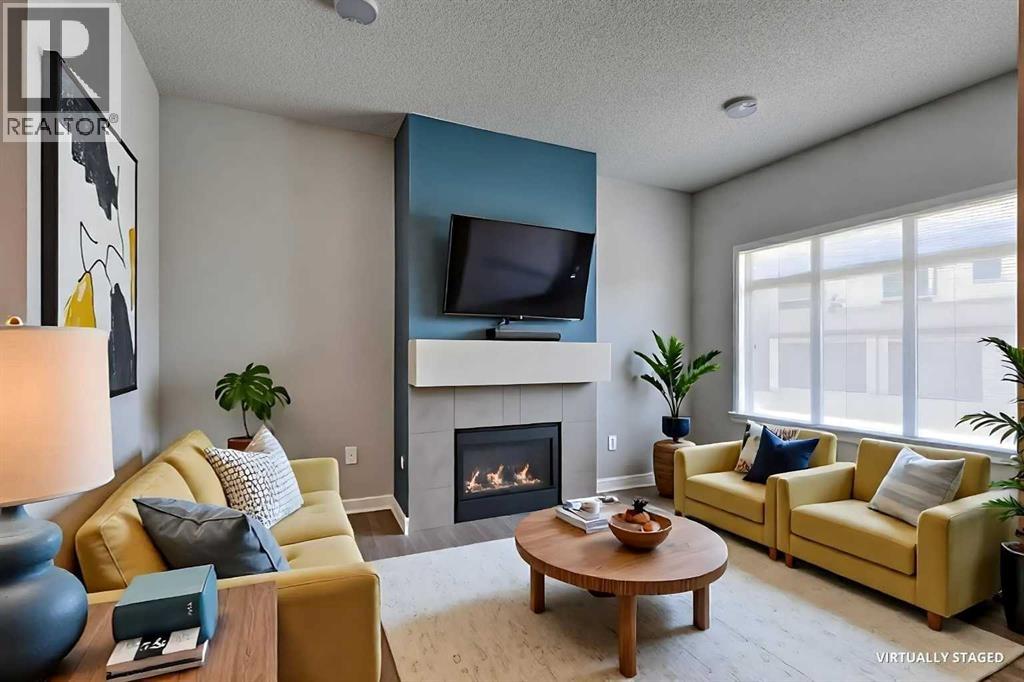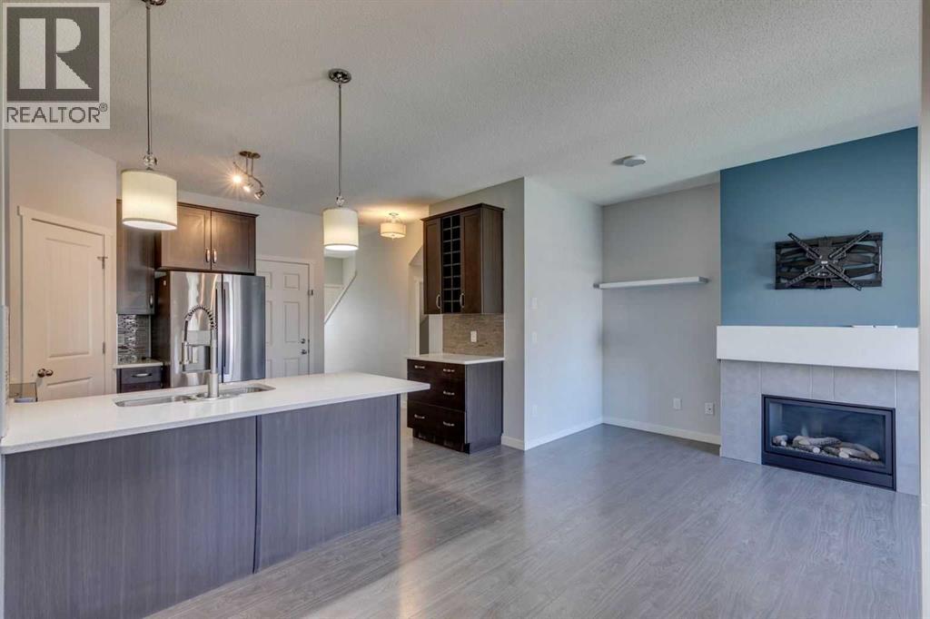 Welcome to your next chapter in the heart of Copperfield—this sun-filled end unit townhome offers modern convenience, thoughtful design, and unbeatable access to everything this vibrant SE Calgary community has to offer.From the single attached garage, central air conditioning, and fully finished basement, to being mere steps from scenic ponds, parks, playgrounds, pathways, and a bustling year-round community centre—this home has been crafted for connection, comfort, and ease. Surrounded by green spaces and multiple shopping hubs, you're also just minutes from Mahogany, Seton, McKenzie Towne, and New Brighton.Inside, the bright open-concept main floor welcomes you with large windows, durable laminate flooring, and a smart layout that makes entertaining effortless. Cozy up by the modern gas fireplace or stay cool in any season with built-in A/C.The stylish kitchen features quartz countertops, stainless steel appliances, a spacious peninsula with breakfast bar seating, and a generous pantry for extra storage. The adjacent dining area leads out to your private covered deck and poured concrete patio—a perfect setup for BBQs, gardening, or simply enjoying peaceful evenings overlooking community green space.Upstairs, the primary retreat offers a large walk-in closet and private 4-piece ensuite, while two more spacious bedrooms and a second full bath provide plenty of room for family, guests, or a home office.The finished basement adds even more flexibility with a large rec room that can serve as a movie lounge, playroom, fitness area, or guest space—tailored to fit your lifestyle.And outside? Whether you're hosting friends or watching the kids play on the nearby pathways and playground, this quiet corner of the complex gives you space to breathe, grow, and feel at home.Whether you're a growing family, busy professional, or anyone looking for that perfect balance of comfort, community, and convenience—this Copperfield gem checks all the boxes. (id:55577)