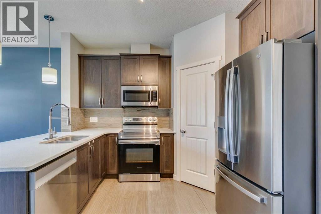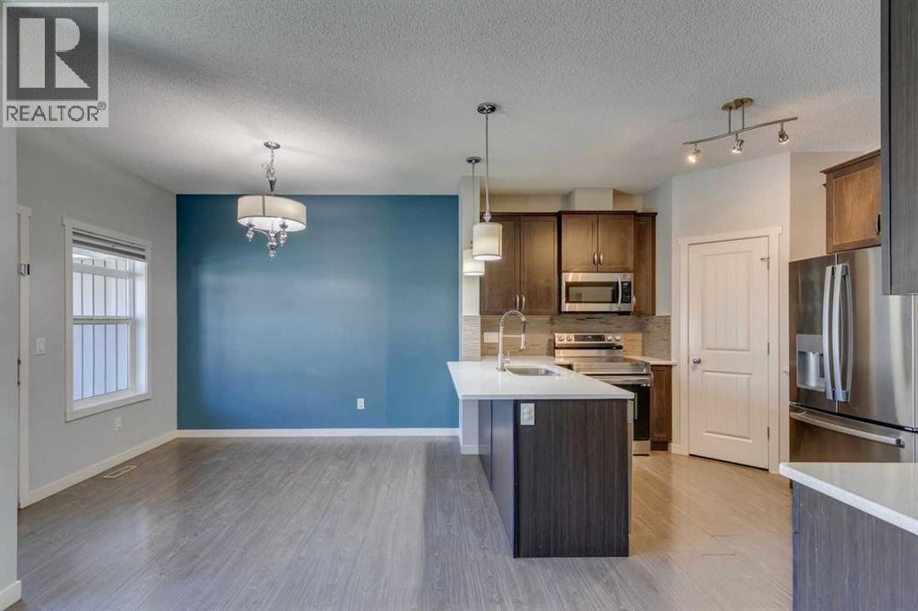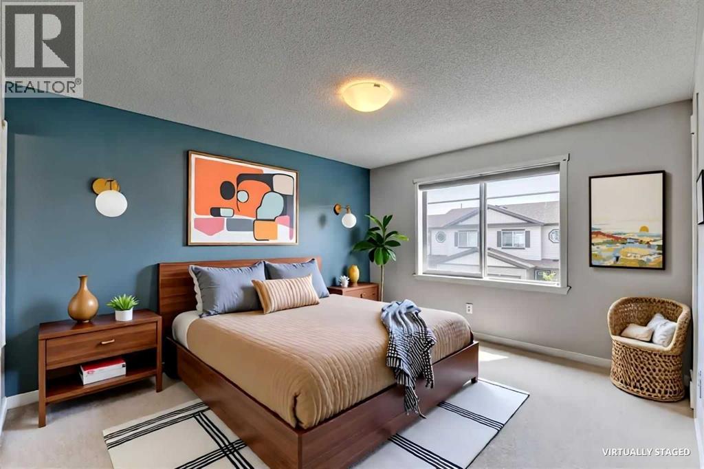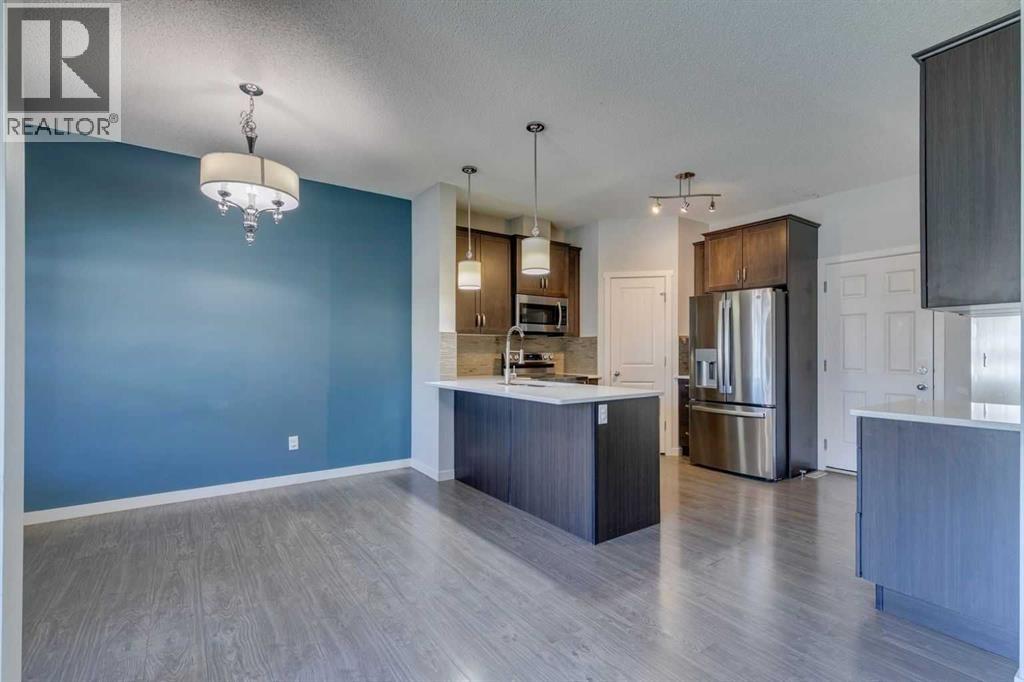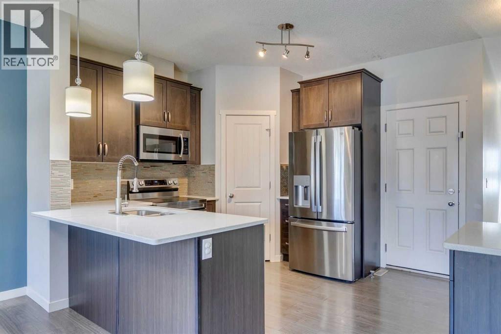 Welcome to your next chapter in the heart of Copperfield—this sun-filled end unit townhome offers modern convenience, thoughtful design, and unbeatable access to everything this vibrant SE Calgary community has to offer.From the single attached garage, central air conditioning, and fully finished basement, to being mere steps from scenic ponds, parks, playgrounds, pathways, and a bustling year-round community centre—this home has been crafted for connection, comfort, and ease. Surrounded by green spaces and multiple shopping hubs, you're also just minutes from Mahogany, Seton, McKenzie Towne, and New Brighton.Inside, the bright open-concept main floor welcomes you with large windows, durable laminate flooring, and a smart layout that makes entertaining effortless. Cozy up by the modern gas fireplace or stay cool in any season with built-in A/C.The stylish kitchen features quartz countertops, stainless steel appliances, a spacious peninsula with breakfast bar seating, and a generous pantry for extra storage. The adjacent dining area leads out to your private covered deck and poured concrete patio—a perfect setup for BBQs, gardening, or simply enjoying peaceful evenings overlooking community green space.Upstairs, the primary retreat offers a large walk-in closet and private 4-piece ensuite, while two more spacious bedrooms and a second full bath provide plenty of room for family, guests, or a home office.The finished basement adds even more flexibility with a large rec room that can serve as a movie lounge, playroom, fitness area, or guest space—tailored to fit your lifestyle.And outside? Whether you're hosting friends or watching the kids play on the nearby pathways and playground, this quiet corner of the complex gives you space to breathe, grow, and feel at home.Whether you're a growing family, busy professional, or anyone looking for that perfect balance of comfort, community, and convenience—this Copperfield gem checks all the boxes. (id:55577)