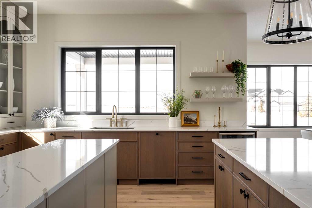 ?SHOWSTOPPER? A Feng Shui + Vastu approved floor plan that blends positive energy with practical design. Perfect flow, balanced layout, and built for a lifestyle that feels right the moment you walk in.Welcome to The Blaire in Goldwyn—a home that doesn’t just sit on a lot, it claims a breathtaking position backing onto a ravine, with sweeping views that redefine estate living. With more than 6,700 sq. ft. of total living space, this residence is as much about lifestyle as it is about design. The main level delivers moments worth gathering for: a chef’s kitchen with oversized island, a full spice kitchen for elevated entertaining, a formal dining room, and a sun-drenched sunroom overlooking nature itself. The great room, with its soaring ceilings, feels nothing short of cinematic. A study/library, prayer room, and thoughtfully designed mudroom bring balance to the grandeur. Upstairs, the primary retreat is your personal sanctuary: a spa-inspired 5-pc ensuite, an expansive walk-in closet, and access to a private 29’ balcony with uninterrupted ravine views. Three additional bedrooms—each with its own ensuite and walk-in closet—offer both luxury and privacy, while a bonus room and upper laundry make daily living effortless. With a covered porch, outdoor deck, and an oversized triple garage, every detail of The Blaire has been considered to elevate the experience of living. This is more than a home—it’s your front row seat to the beauty and prestige of Goldwyn. (id:55577)