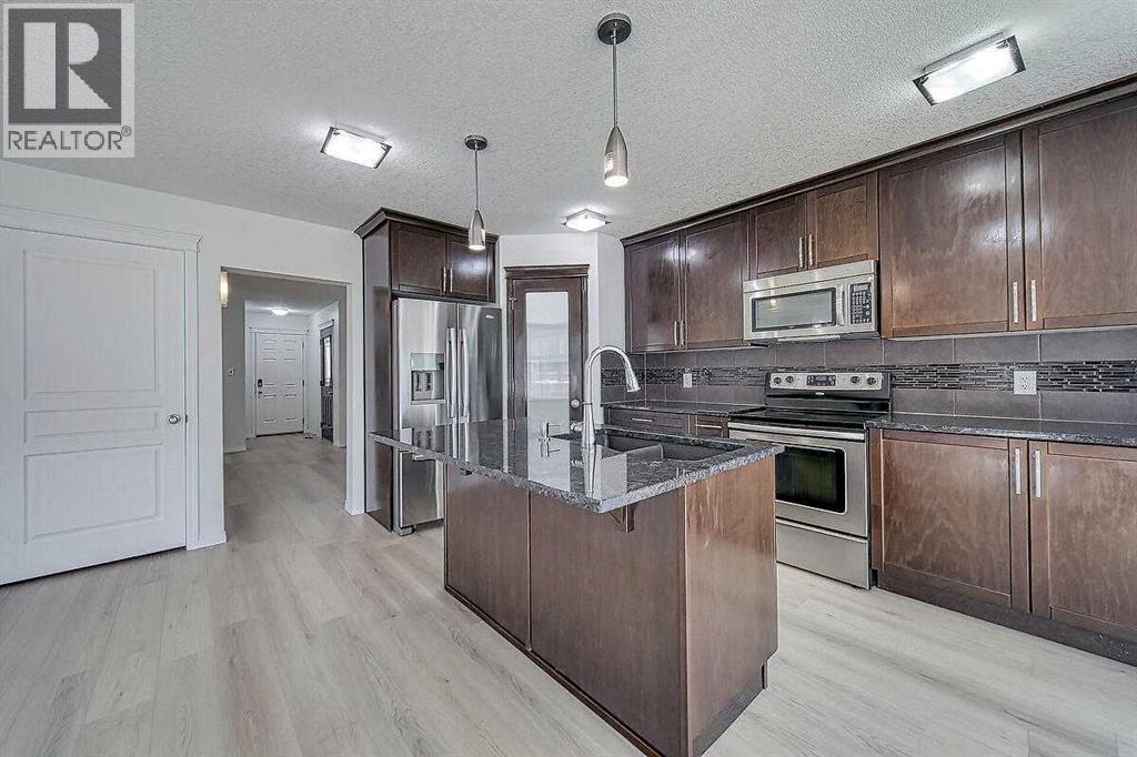 WOW! Fully developed 2 storey with over 2700 sq. ft. Totally upgraded with New Roof Shingles/Eaves/Flooring/Freshly painted/Baseboards and Shows like New. Located in the special Enclave of SAGE MEADOWS of Sage Hill, where all the Detach Homes are Stucco. MAIN FLOOR - 9' Ceilings, Flex room as you enter, Family room with Fire place, Big Kitchen with Island & Pantry and Granite Counters, Dining area and door to the Deck, Den (could be used as Bedroom), 3 pcs Bathroom and Laundry room. UPPER - 3 good size Bedrooms, Bonus room, Full Bathroom. Master Bedroom is Huge with full 5 pcs Ensuite and a walk in closet. BASEMENT - Large Rec Room with wall to wall cabinets, Den, storage and 3pcs Washroom. OTHER - Garage is all drywalled and painted, Good size Deck, Stucco/Stone siding, Nice Yard with storage shed. Vacant for immediate possession. Please review the Virtual/photos/3d walk thru and much much more to get the full glimpse of this Home. (id:55577)