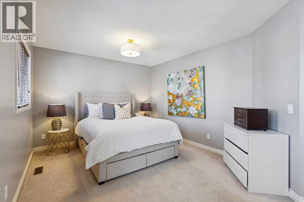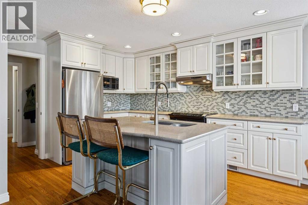 Impeccably designed both inside & out with the finest attention to detail, this renovated home is spectacular! Located on a Southwest back yard on a pie lot in the heart of Sheep River Ridge. You are welcomed into the home over the covered front porch. The main level offers an open floor plan, office / flex room with a gas fireplace off the front of the house. Spotless oak hardwood floors flow throughout the entire main floor through the living room and into the renovated kitchen that boasts stainless steel appliances, floor to ceiling cabinetry, quartz countertops, coffee bar, breakfast nook & central island which is a must for entertaining. The South facing door off the kitchen perfectly connects indoor/outdoor entertaining spaces regardless of rain or shine. Upstairs you’ll find the laundry room and a primary retreat like no other featuring an intimate bedroom with bright windows luxurious ensuite with 10 mm glass in the tiled shower, a corner soaker tub, quartz countertops & a walk-in closet that will be the envy of all your friends. Two additional upstairs bedrooms have their own 4-piece bathroom. The lower level consists of a recently developed open rec room with knockdown ceilings, pot lights and 4 egress windows. The double attached garage is fully finished with extra storage shelves & workbench. The south facing composite deck has exterior gas outlets overlooking large mature trees and a fenced off dog run. All of this and more makes this the best house for you to call home. (id:55577)
