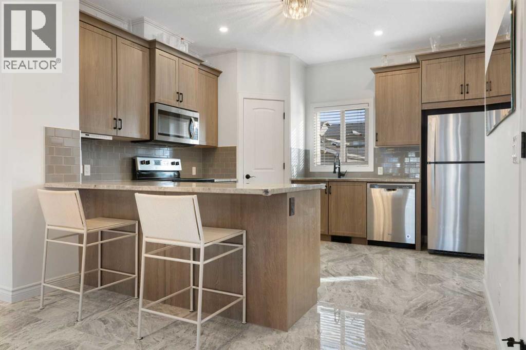 It's time to skip the new build headaches! New construction homes at this price have NO landscaping, NO basement development, NO A/C, NO window coverings and rarely a garage. That is tremendous value in a beautifully maintained home with so many upgrades! This 4 bedroom 3.5 bath home has over 2000 sq ft of developed living space that has been well cared for and recently updated with luxury porcelain tile on the main floor, new carpets upstairs with top of the line underlayment, and the entire home has been recently painted. The main level is open and bright with extra recessed lighting added, crown molding and a rear kitchen with quartz countertops with a breakfast bar, a corner pantry and a large under mount sink looking out to the spacious backyard. Upstairs features the primary bedroom with 3 piece ensuite and walk in closet, two additional well-sized bedrooms, a full 4-piece bathroom with dual sinks, and convenient upstairs laundry. Downstairs you’ll find a large recreation area, a beautiful 4-piece bathroom, and a spacious bedroom, making it perfect for extended family, visitors, or simply extra room to spread out. The home also has air conditioning to keep the whole family comfortable in the summer months.The east-facing backyard is a private retreat, thoughtfully set up for both relaxing and entertaining. Enjoy the 12’ x 22’ floating deck tucked behind a privacy wall and covered by a retractable pergola, complete with a gas line for your BBQ or a patio heater. The rest of the yard is fully fenced, landscaped with soft, low-maintenance grass, and a wide pathway leading to the oversized 20’ x 22’ detached garage . Most attached garages fall short in size with the width being 17-18'. The garage has been customized with impressive storage solutions including rafters, pegboard, shelving, overhead I-beams with extensive bin storage, and tire racks. Enjoy the sunset in the evenings on the 8'x9' deck at the front of the house, a short pathway connecting you to the boulevard, perfect for a relaxing spot in the evenings. A truly turn-key home that works for a wide range of lifestyles Daily conveniences of a daycare, mexican restaurant, a pharmacy, Tim Hortons and a gas station are just a 2 min walk, plus a future commercial area with a new grocery store coming within the community just a 4 min walk , future school site 5 min walk away, 2 playgrounds within a 6 min walk and access to the Bow River pathway system only a 15 min walk away round out the community. Highway 1A is a mere minute away giving you quick access to Cochrane or to head west to the mountains. With the new interchange completed commuting into downtown Calgary can take as little as 35 minutes, with access to Stoney Trail in only 20 minutes. (id:55577)