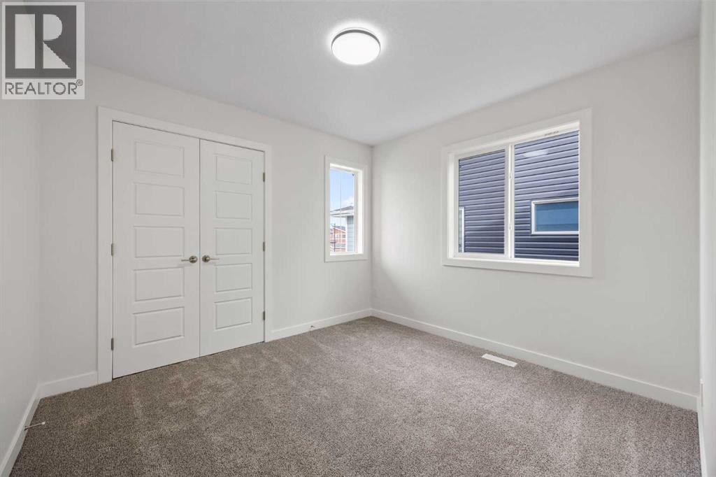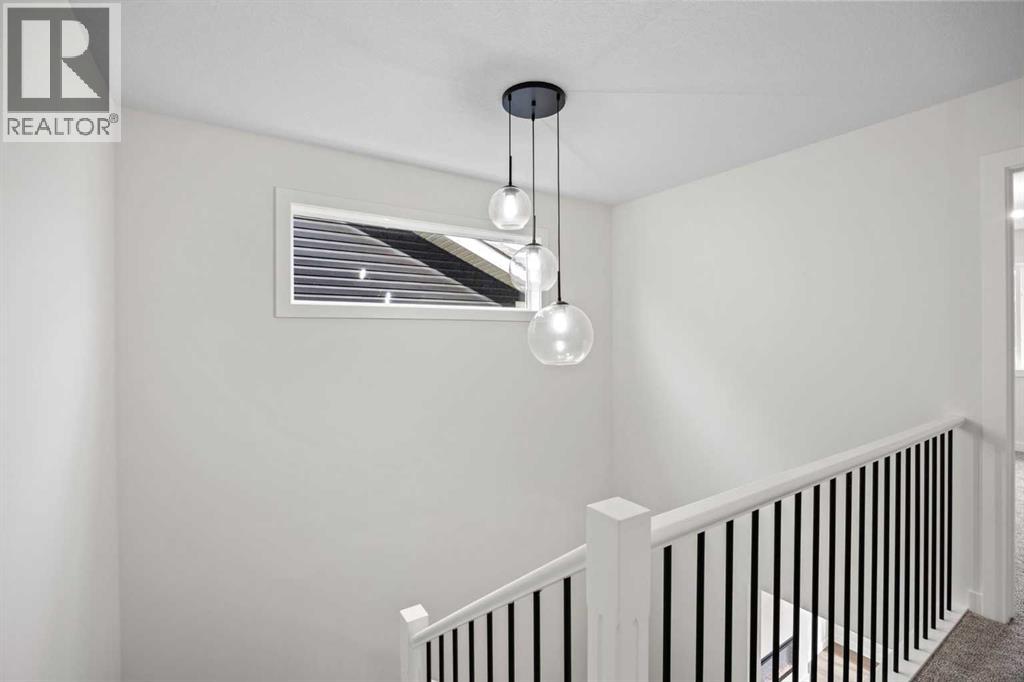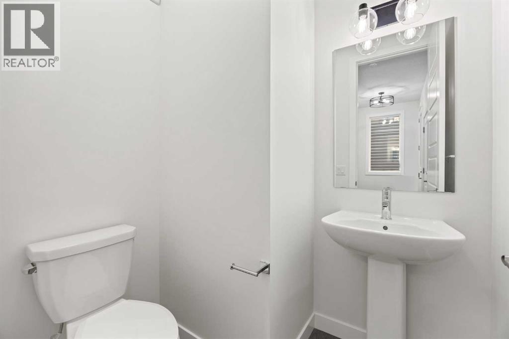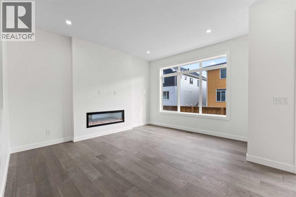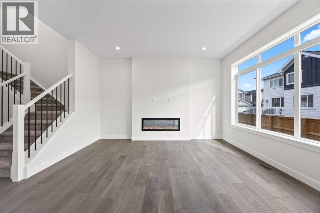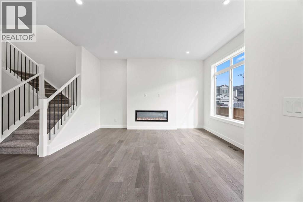 BRAND NEW SEMI DETACHED | LOADED WITH UPGRADES | SEPARATE ENTRANCE. Welcome to this brand new semi-detached home with a front double attached garage, perfectly located in the desirable community of Waterford. Designed with style and functionality in mind, this home boasts numerous upgrades throughout.Step inside to a bright, open foyer leading to the main floor, featuring 9-foot ceilings and beautiful engineered hardwood throughout. The open-concept kitchen showcases quartz countertops, stainless steel appliances, upgraded light fixtures, and painted cabinetry to ceiling height. It flows seamlessly into the spacious living room with an electric fireplace and dining area overlooking the large backyard — ideal for summer BBQs and outdoor entertaining. A convenient 2-piece bathroom completes the main level.Upstairs, the home offers three generously sized bedrooms, each with ample natural light and closet space. The primary suite is a true retreat, featuring a spacious walk-in closet and a luxurious ensuite with dual vanities. The additional bedrooms are perfect for family, guests, or a home office, and share a well-appointed 4-piece bathroom. Completing the upper level is a full-size laundry room for ultimate convenience.The unfinished basement includes a separate side entrance, providing flexibility for a future living space, guest suite, or investment opportunity.Tucked away on a quiet street, this home is just minutes from all the amenities Chestermere offers, including schools, parks, shopping, and the lake (id:55577)