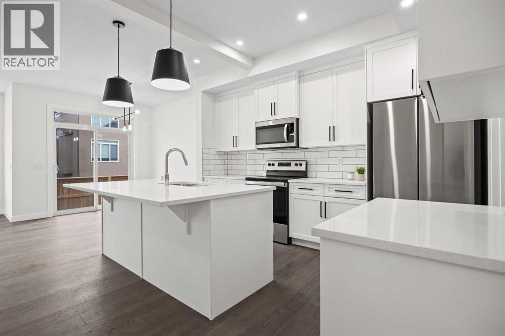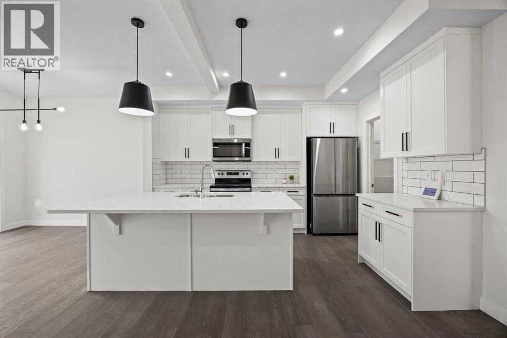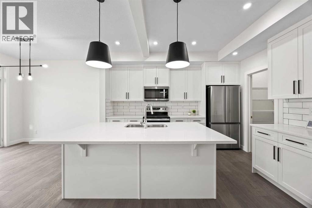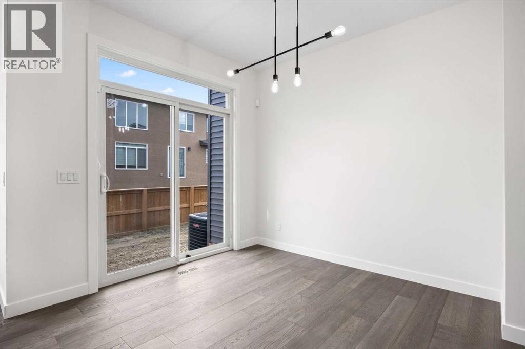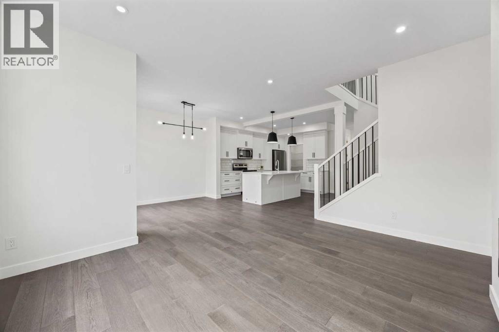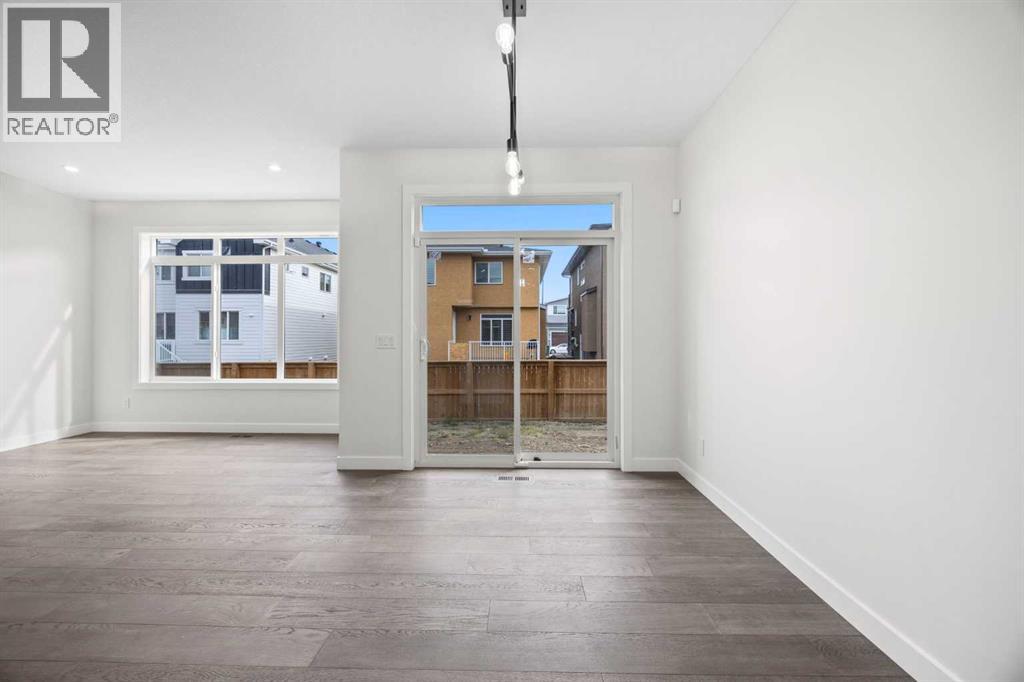 BRAND NEW SEMI DETACHED | LOADED WITH UPGRADES | SEPARATE ENTRANCE. Welcome to this brand new semi-detached home with a front double attached garage, perfectly located in the desirable community of Waterford. Designed with style and functionality in mind, this home boasts numerous upgrades throughout.Step inside to a bright, open foyer leading to the main floor, featuring 9-foot ceilings and beautiful engineered hardwood throughout. The open-concept kitchen showcases quartz countertops, stainless steel appliances, upgraded light fixtures, and painted cabinetry to ceiling height. It flows seamlessly into the spacious living room with an electric fireplace and dining area overlooking the large backyard — ideal for summer BBQs and outdoor entertaining. A convenient 2-piece bathroom completes the main level.Upstairs, the home offers three generously sized bedrooms, each with ample natural light and closet space. The primary suite is a true retreat, featuring a spacious walk-in closet and a luxurious ensuite with dual vanities. The additional bedrooms are perfect for family, guests, or a home office, and share a well-appointed 4-piece bathroom. Completing the upper level is a full-size laundry room for ultimate convenience.The unfinished basement includes a separate side entrance, providing flexibility for a future living space, guest suite, or investment opportunity.Tucked away on a quiet street, this home is just minutes from all the amenities Chestermere offers, including schools, parks, shopping, and the lake (id:55577)