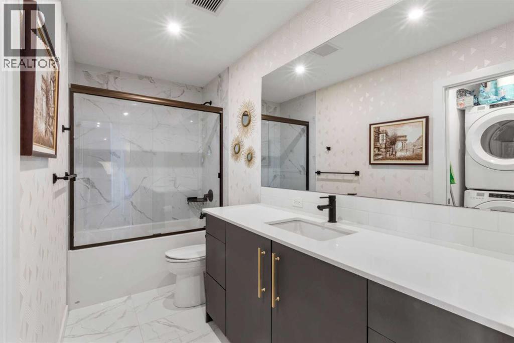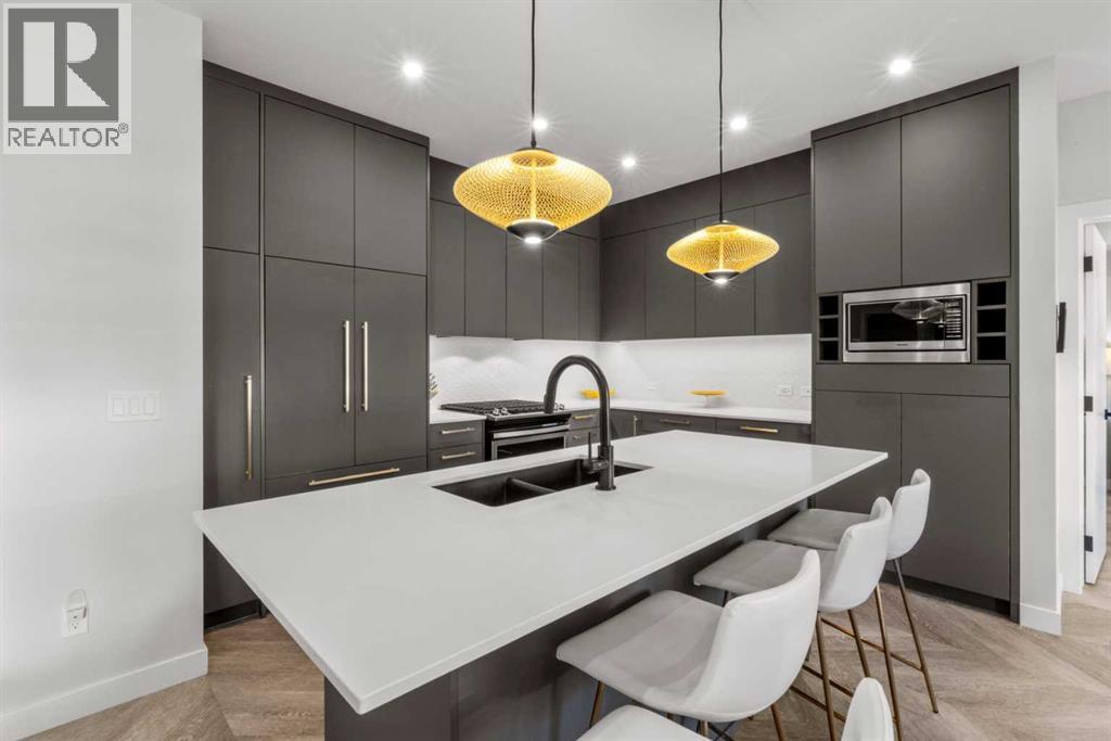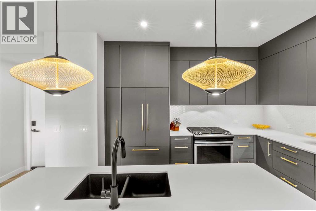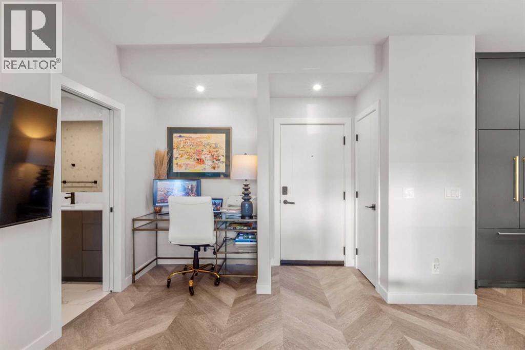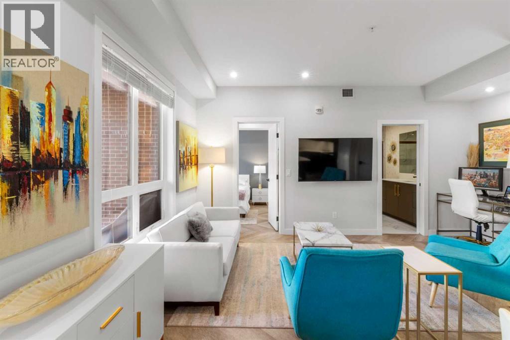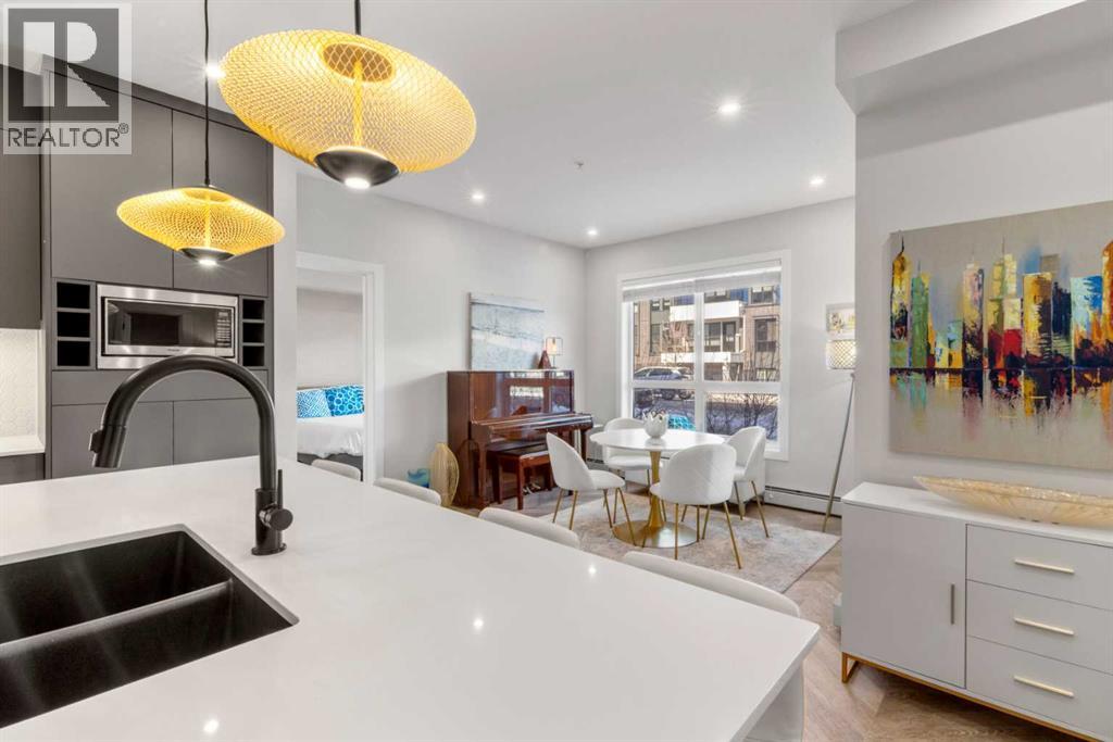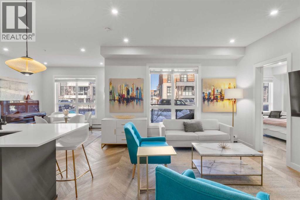 Welcome to Esquire in the heart of University District, where modern design meets a vibrant, walkable lifestyle. This ground floor unit offers next level convenience with the ability to come and go directly through your private patio, giving it a rare, almost townhome feel. Inside, the space is fresh, stylish and anything but ordinary, featuring eye catching herringbone vinyl plank flooring that runs throughout. The kitchen is a true showpiece with a large quartz island perfect for casual dining or entertaining, full height cabinetry and sleek, contemporary finishes that elevate the entire space. The open living area is bright and inviting, while both bedrooms are thoughtfully positioned on opposite sides of the living space, creating a highly functional layout with exceptional privacy. The primary bedroom feels like a retreat with a walk through closet leading to a beautifully finished ensuite complete with quartz countertops and a large walk in shower. A second spacious bedroom is ideally positioned with easy access to another full four piece bathroom, making the layout both functional and flexible. Step outside to your private patio, tucked between brick walls for added privacy, with green space out front that gives a rare sense of yard like living. Additional features include two storage lockers and a titled underground parking stall. Residents of Esquire enjoy access to a full range of amenities including a fitness centre, pet wash station, bike storage and tuning area and a workshop. All of this just steps from the University of Calgary, Alberta Children’s Hospital, Market Mall, Central Commons Park, dog parks, cafes, restaurants, grocery stores and the Cineplex VIP theatre, with easy access to transit and major routes. This is a standout opportunity to own a modern, ground level home in one of Calgary’s most dynamic and connected communities. (id:55577)