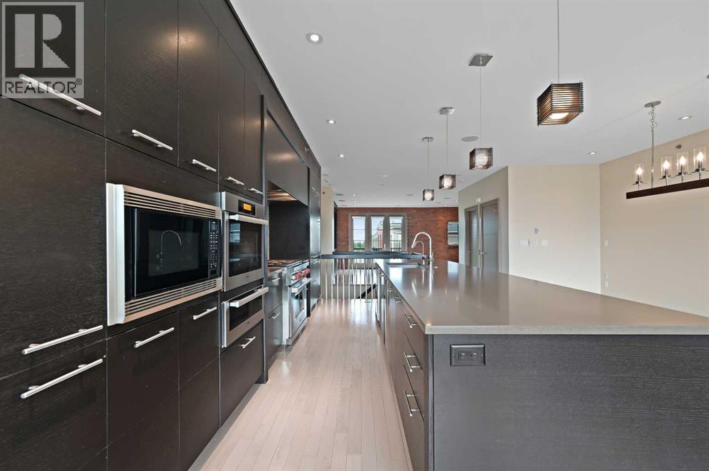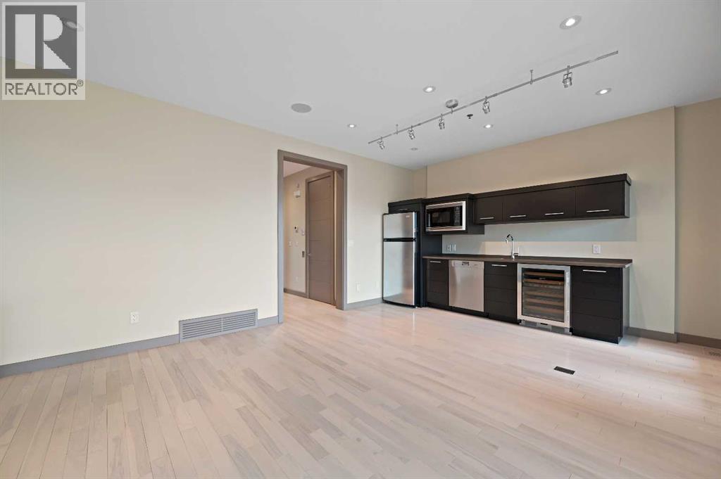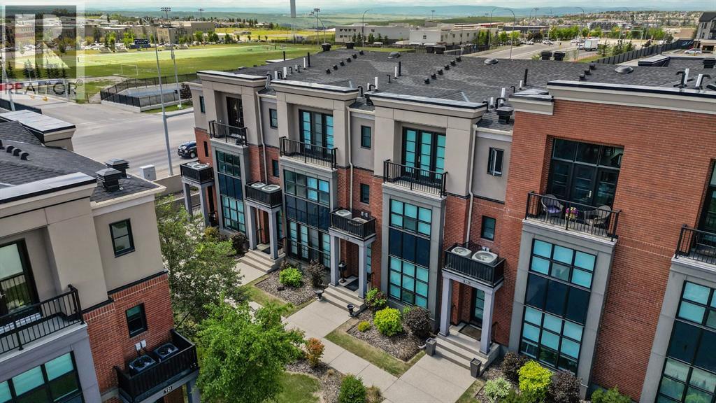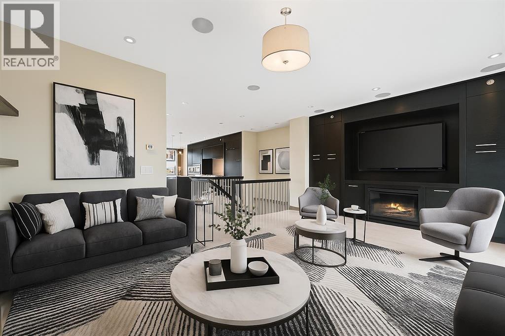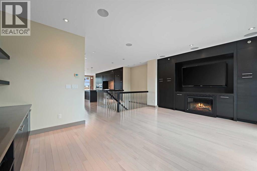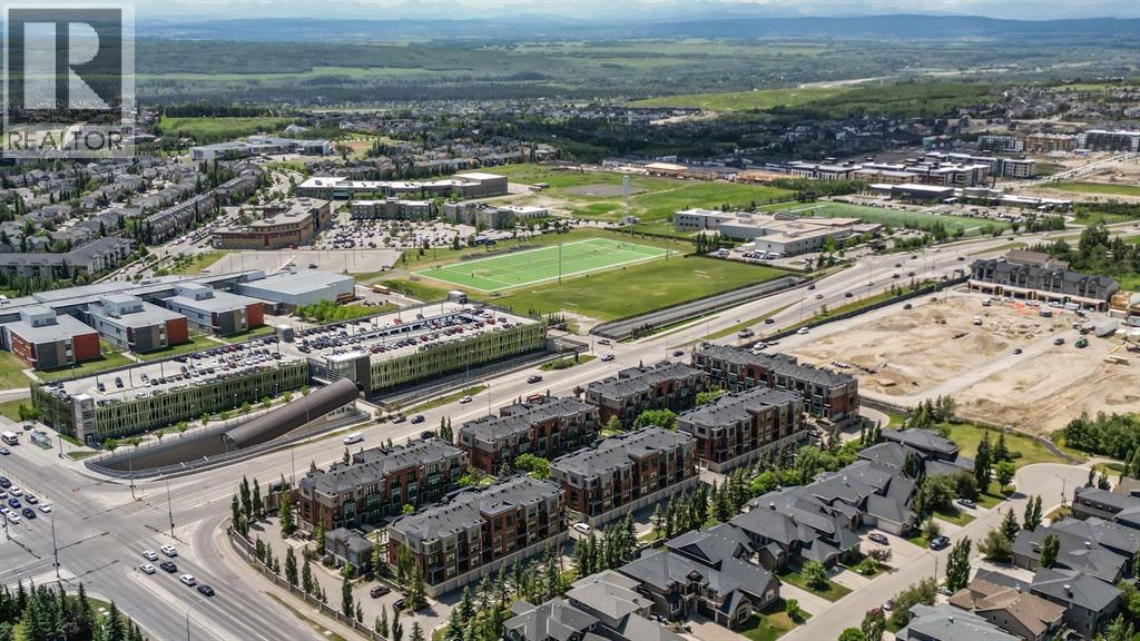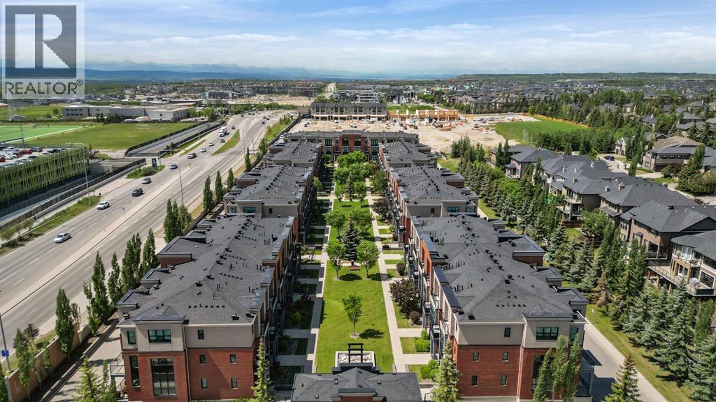 Welcome to 109 Aspen Meadows Hill, a luxury Manhattan Brownstone offering over 3,071 sqft of upscale living with one of the best locations in the complex—showcasing one of only 4 units in the complex with unobstructed views of the mountains, courtyard, and downtown skyline. This home has been meticulously upgraded with over $150,000 in high-end enhancements, creating a seamless blend of elegance, comfort, and smart functionality. Inside, you’ll find a Control4 sound system with in-ceiling speakers throughout the main living spaces and bedrooms, a reverse osmosis system, a water softener, and a smart doorbell with two-way audio and cameras at both front and rear. On the main level, a versatile front office or bedroom with built-ins, while the reconfigured family room includes premium appliances like a full-size fridge, Wolf microwave, Sub-Zero wine fridge, Miele dishwasher, and additional cabinetry—perfect for hosting. Double power blinds with blackout and sheer layers, designer light fixtures, and high-end finishes elevate every space, including a main floor bath with a modern designer sink and faucet. The kitchen impresses with two Miele dishwashers, a wall oven, warming drawer, custom tile backsplash, and striking island lighting. Upstairs, both bedrooms feature blackout + sheer blinds and track lighting, while the laundry room boasts full-size machines and upgraded lighting. The living room layout was reimagined to accommodate an 80” TV above the fireplace, with additional cabinetry added for symmetry and storage. A fully finished lower-level gym/storage space completes the home, along with elevator access featuring a built-in phone for peace of mind. The garage features full epoxy floors, high-end cabinets, and a workbench. This is a true lock-and-leave executive home for the buyer who values design, quality, and distinction in one of Calgary’s most desirable communities. (id:55577)