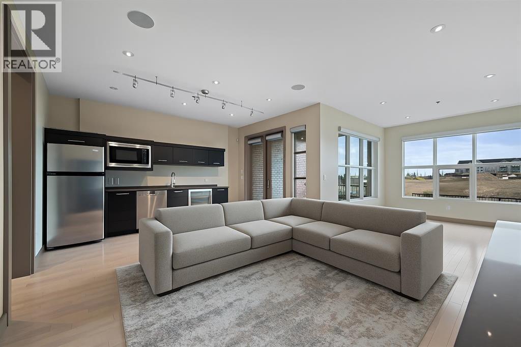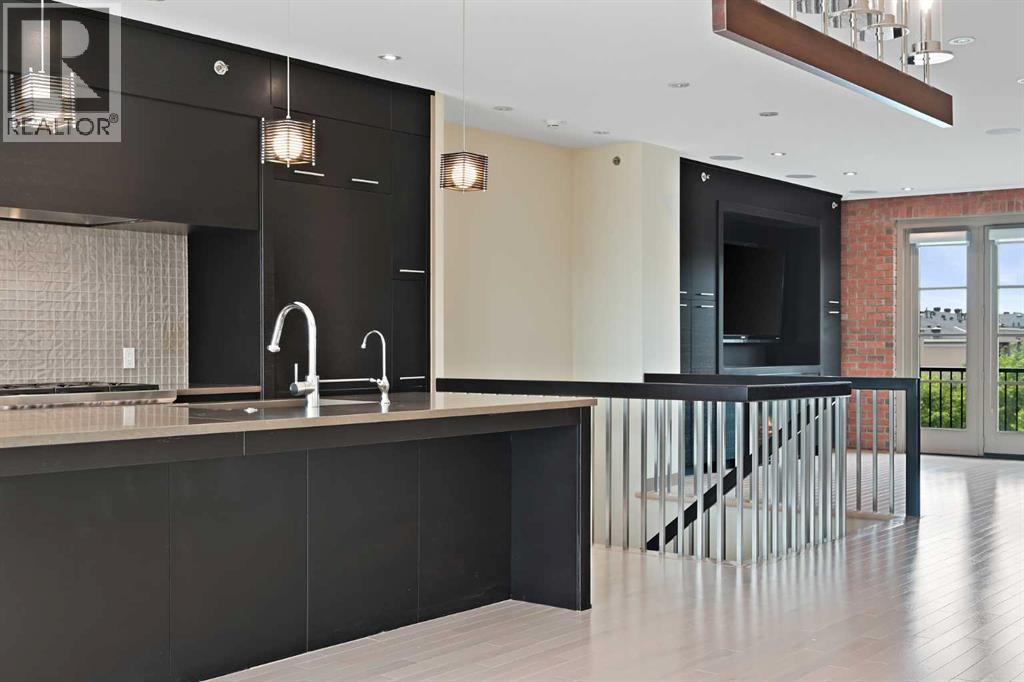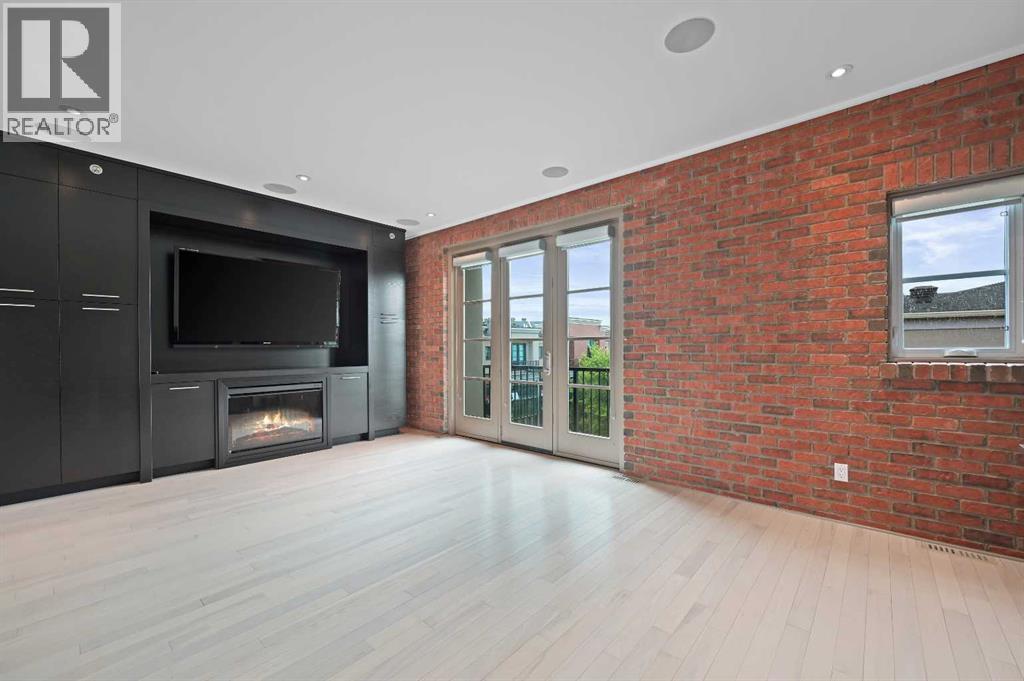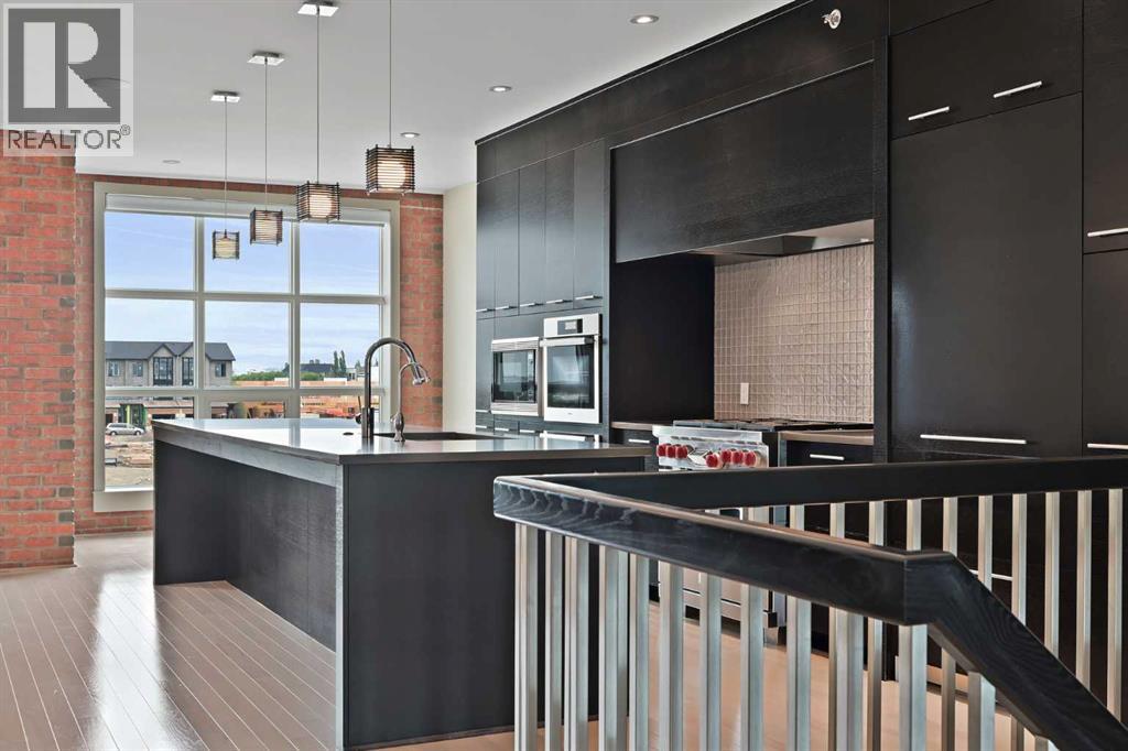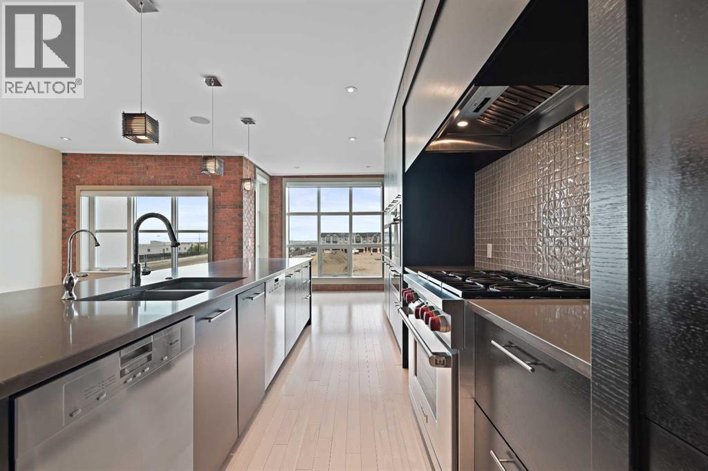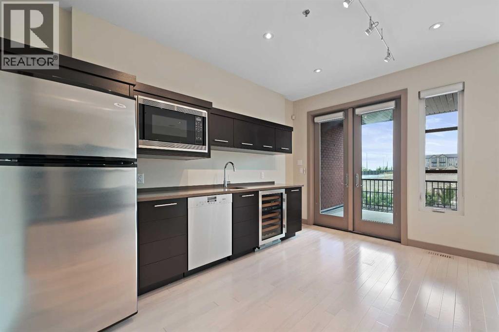 Welcome to 109 Aspen Meadows Hill, a luxury Manhattan Brownstone offering over 3,071 sqft of upscale living with one of the best locations in the complex—showcasing one of only 4 units in the complex with unobstructed views of the mountains, courtyard, and downtown skyline. This home has been meticulously upgraded with over $150,000 in high-end enhancements, creating a seamless blend of elegance, comfort, and smart functionality. Inside, you’ll find a Control4 sound system with in-ceiling speakers throughout the main living spaces and bedrooms, a reverse osmosis system, a water softener, and a smart doorbell with two-way audio and cameras at both front and rear. On the main level, a versatile front office or bedroom with built-ins, while the reconfigured family room includes premium appliances like a full-size fridge, Wolf microwave, Sub-Zero wine fridge, Miele dishwasher, and additional cabinetry—perfect for hosting. Double power blinds with blackout and sheer layers, designer light fixtures, and high-end finishes elevate every space, including a main floor bath with a modern designer sink and faucet. The kitchen impresses with two Miele dishwashers, a wall oven, warming drawer, custom tile backsplash, and striking island lighting. Upstairs, both bedrooms feature blackout + sheer blinds and track lighting, while the laundry room boasts full-size machines and upgraded lighting. The living room layout was reimagined to accommodate an 80” TV above the fireplace, with additional cabinetry added for symmetry and storage. A fully finished lower-level gym/storage space completes the home, along with elevator access featuring a built-in phone for peace of mind. The garage features full epoxy floors, high-end cabinets, and a workbench. This is a true lock-and-leave executive home for the buyer who values design, quality, and distinction in one of Calgary’s most desirable communities. (id:55577)