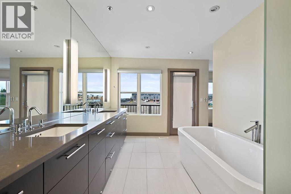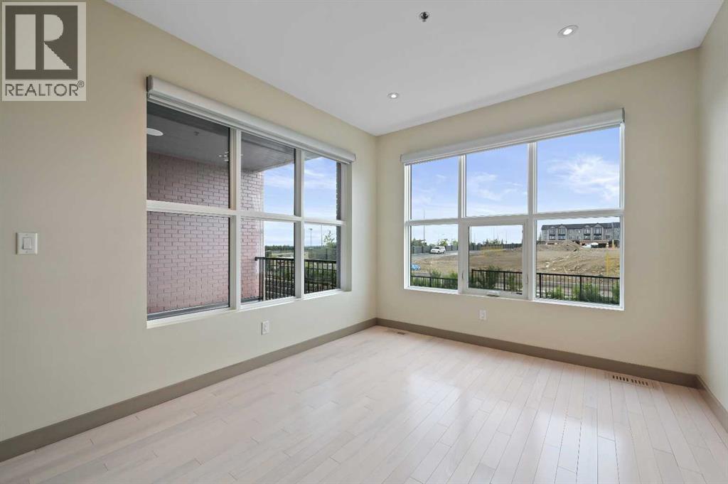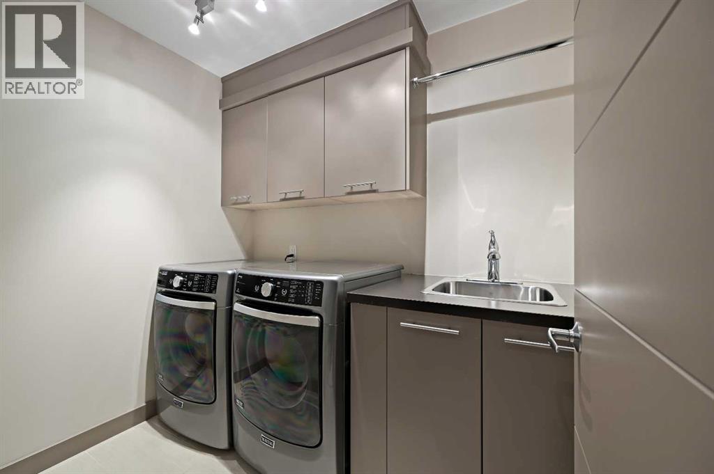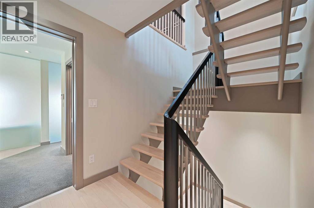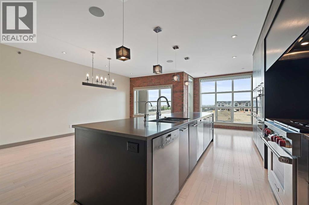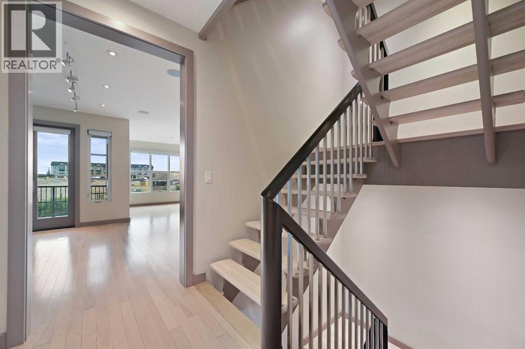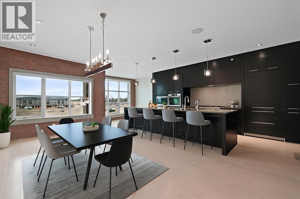 Welcome to 109 Aspen Meadows Hill, a luxury Manhattan Brownstone offering over 3,071 sqft of upscale living with one of the best locations in the complex—showcasing one of only 4 units in the complex with unobstructed views of the mountains, courtyard, and downtown skyline. This home has been meticulously upgraded with over $150,000 in high-end enhancements, creating a seamless blend of elegance, comfort, and smart functionality. Inside, you’ll find a Control4 sound system with in-ceiling speakers throughout the main living spaces and bedrooms, a reverse osmosis system, a water softener, and a smart doorbell with two-way audio and cameras at both front and rear. On the main level, a versatile front office or bedroom with built-ins, while the reconfigured family room includes premium appliances like a full-size fridge, Wolf microwave, Sub-Zero wine fridge, Miele dishwasher, and additional cabinetry—perfect for hosting. Double power blinds with blackout and sheer layers, designer light fixtures, and high-end finishes elevate every space, including a main floor bath with a modern designer sink and faucet. The kitchen impresses with two Miele dishwashers, a wall oven, warming drawer, custom tile backsplash, and striking island lighting. Upstairs, both bedrooms feature blackout + sheer blinds and track lighting, while the laundry room boasts full-size machines and upgraded lighting. The living room layout was reimagined to accommodate an 80” TV above the fireplace, with additional cabinetry added for symmetry and storage. A fully finished lower-level gym/storage space completes the home, along with elevator access featuring a built-in phone for peace of mind. The garage features full epoxy floors, high-end cabinets, and a workbench. This is a true lock-and-leave executive home for the buyer who values design, quality, and distinction in one of Calgary’s most desirable communities. (id:55577)
