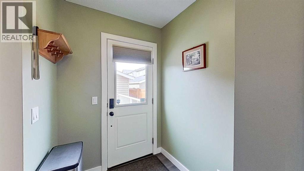 Welcome to Heartland in Cochrane. This beautifully designed 1,421 sq. ft. duplex combines modern style with practical function in the family-friendly community of Heartland. The home features a bright, open-concept. The spacious rear kitchen is equipped with stainless steel appliances, granite countertops in the kitchen, and plenty of cabinetry for storage. The main floor flows seamlessly from kitchen to dining to living space, creating the perfect environment for everyday living. Upstairs offers three generously sizedbedrooms and two bathrooms, including a primary suite with a walk-in closet and private ensuite. A laundry closet with shelving completes the upper floor for added convenience. All windows are finished with shades. The unfinished basement provides endless possibilities, ready for your personaltouch. The property is fully landscaped and includes an oversized and insulated 20’ x 28’ detached double-car garage at the rear, as well as a 10’ x 12’ deck. Heartland is a young vibrant community known for its open green spaces, parks, playgrounds, and walking paths. Only 22 kms to Calgary. The home is protected 24/7 by five high def Reolink security cameras and exterior doors are secured by Eufy Security Smart Locks. (id:55577)