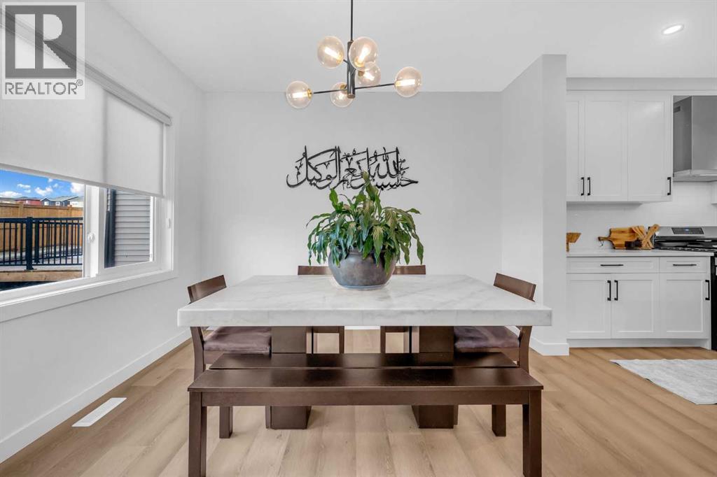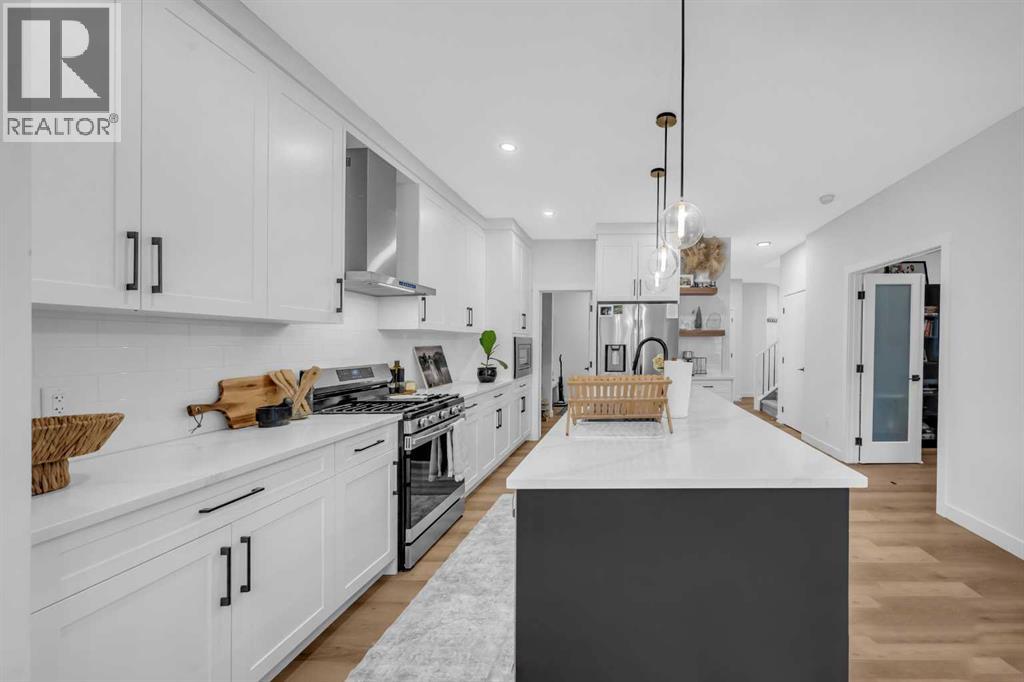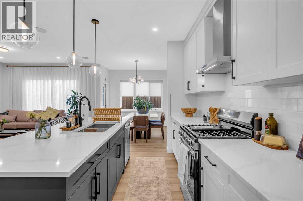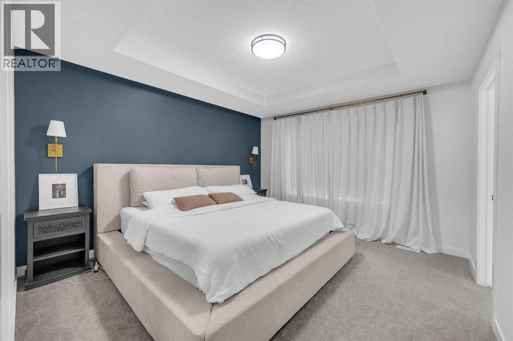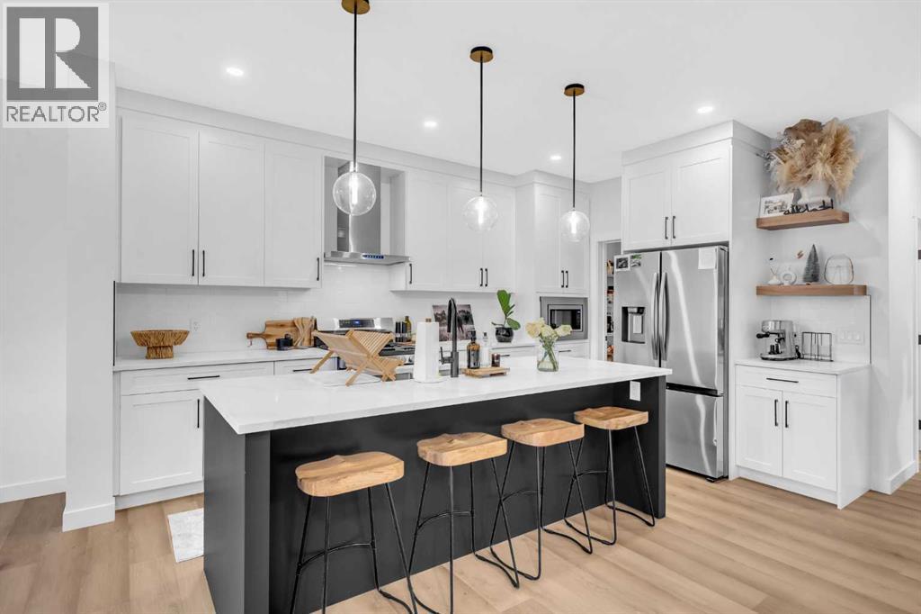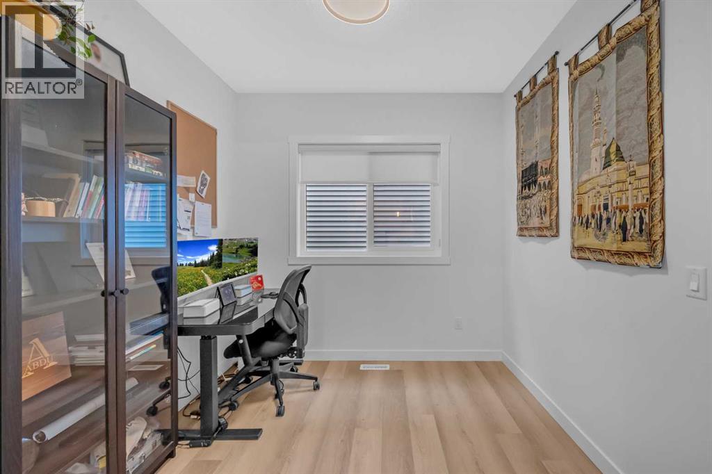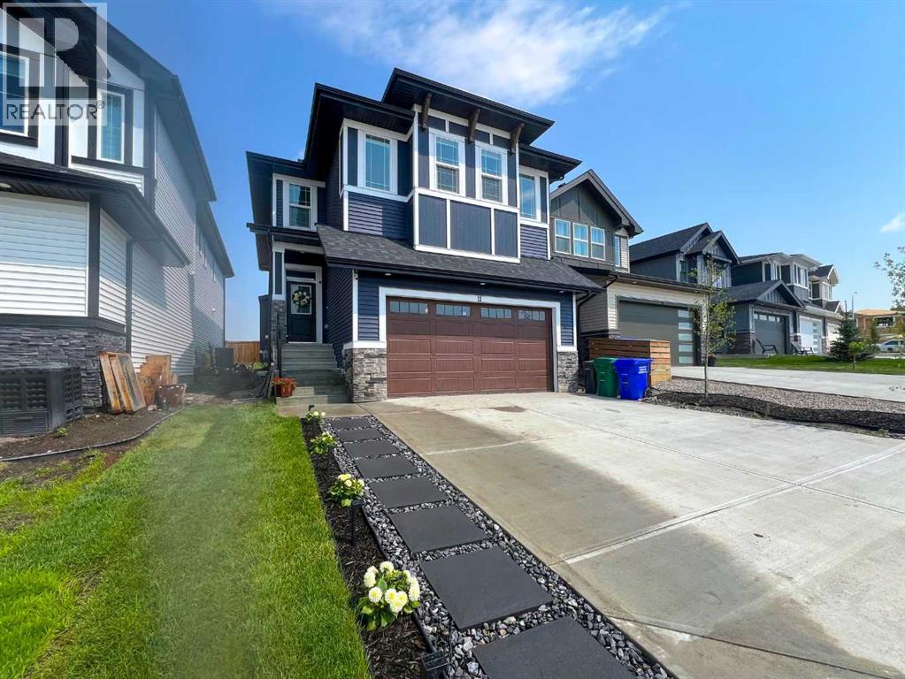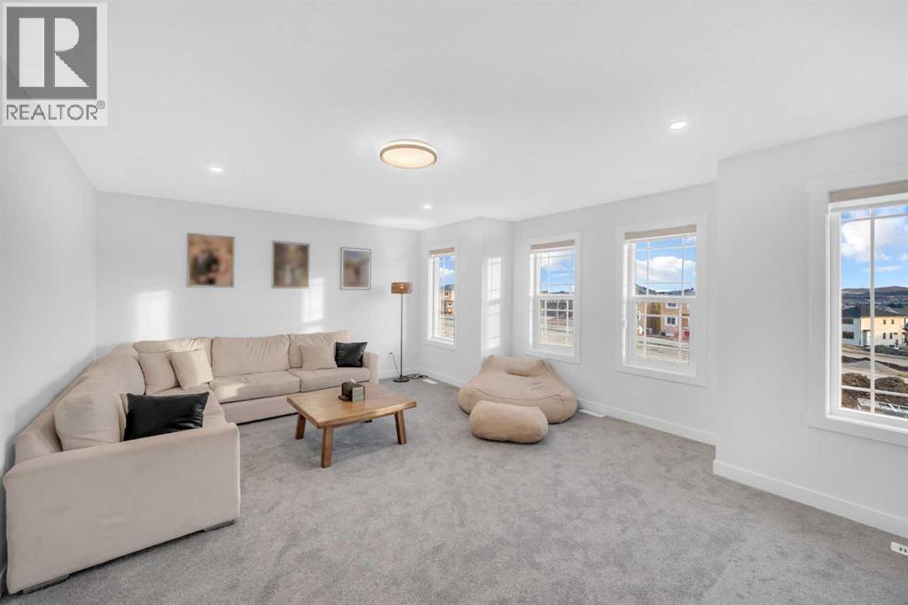 Welcome to this stunning home in Cochrane offering over 2,200 SF of living space. This incredible home is finished top to bottom with beautiful modern finishes and the perfect layout for growing and large families. 3 Full bedrooms, Two and a half bathrooms, office and an enormous Bonus room. Bright and well lit with 9' ceilings and located on a quiet road with breath taking mountain views make this home a standout it growing Cochrane. Step on to the main floor which offers a huge open concept kitchen with a massive island, spacious dining room and fireplace lit living room. Not to mention the private office on the main floor for the professionals and an added guest bathroom. The finishes in this home are beautiful and its evident from the photos. The kitchen has Bone white shaker cabinets, pearl sheen countertops and sleek subway style backsplash. The living room has a clear stone fireplace with Bluetooth audio and speaker against an Azure blue mantel. Milk glass doors in the office give it the privacy needed for professionals when working from home and the floor is adorned with dessert gold vinyl flooring providing the home with a warm atmosphere. Upstairs is just as impressive. The bonus room is a staggering 20 x 15 feet! Fitting several couches, tables, and even desks for additional office space as well as entertainment. The master bedroom is complete with a walk in closet and a 5 piece ensuite bathroom. The Ensuite comes complete with "his and hers" vanities, deep soaker tub and oversized custom shower. Lush carpets on the second floor provide the second floor with perfect comfort. Mas sive Vinyl windows pour light into the spacious living space. The HRV system in the home provides constant clean air circulation to keep the air quality high to compliment the mountain air of Cochrane. The exterior has a royal presence with Navy Blue Vinyl siding, board and batten and rustic wood grain features to round out the long lasting and durable exterior. The basement is wide open and briming with potential and has its own separate entrance. Dont miss your chance to own this beautiful home in Cochrane with local access to skiing, hiking, horseback riding, and camping. A robust economy, Alberta mountains and one of the most affordable places in AB. Location, size, and finishes. This home is a gem. (id:55577)