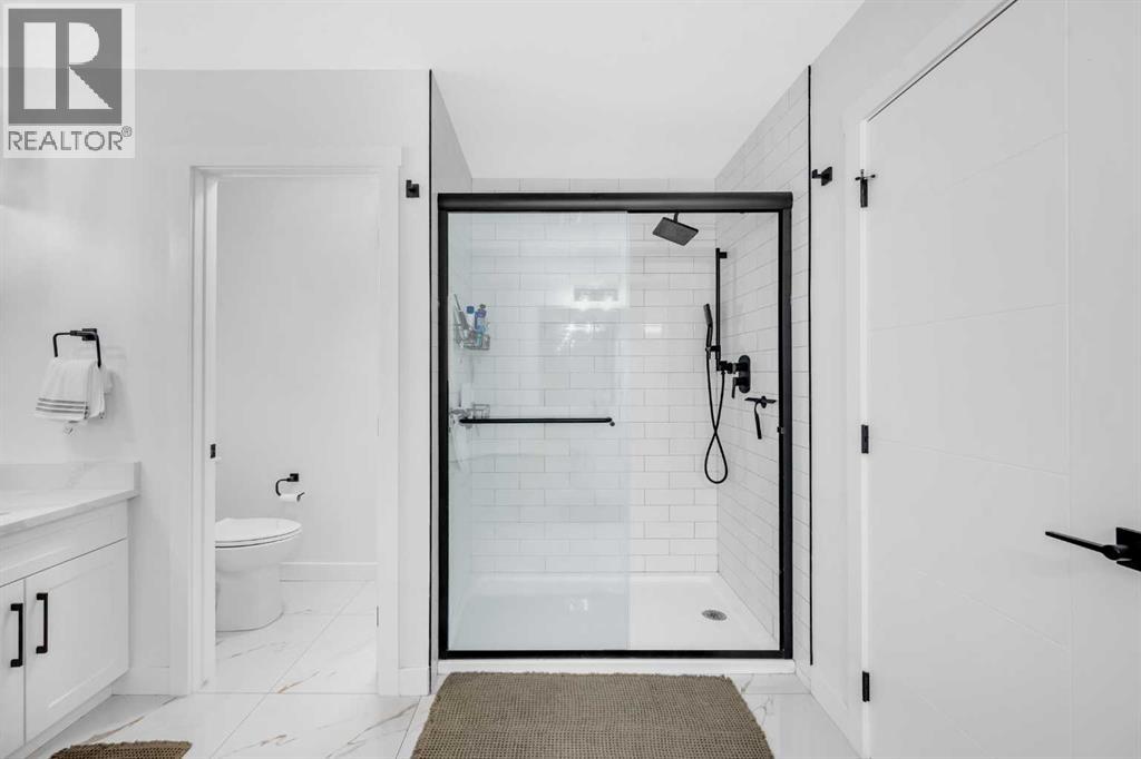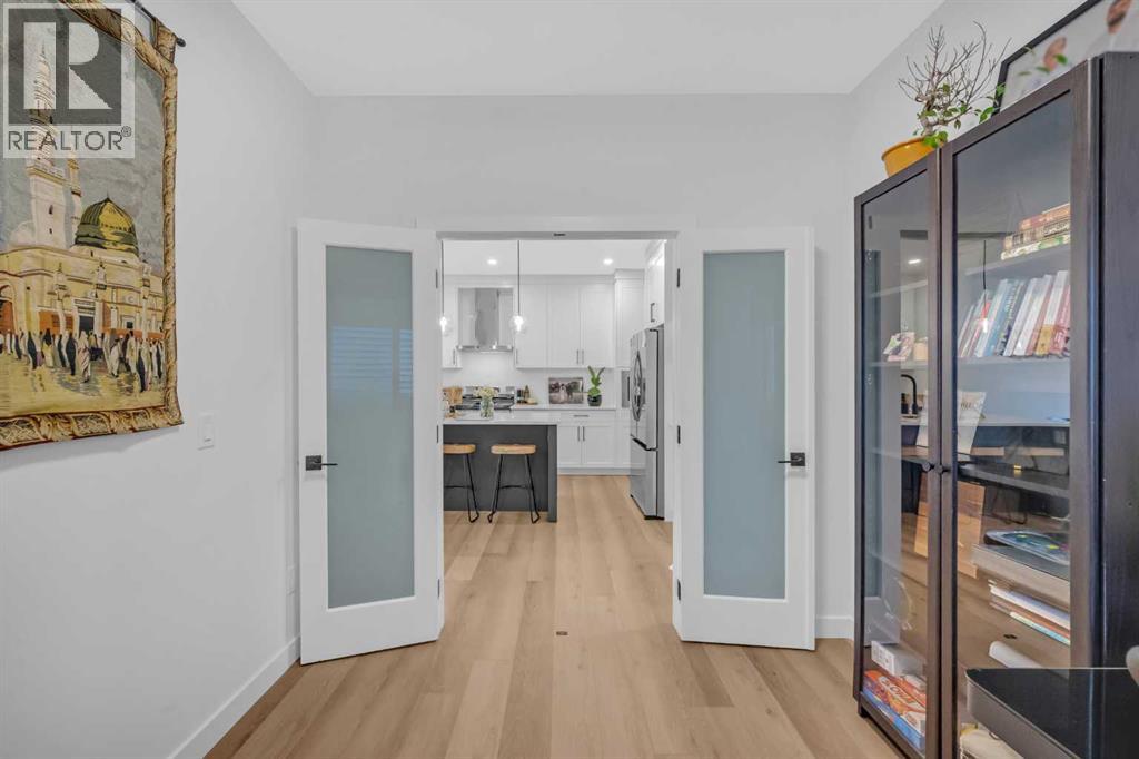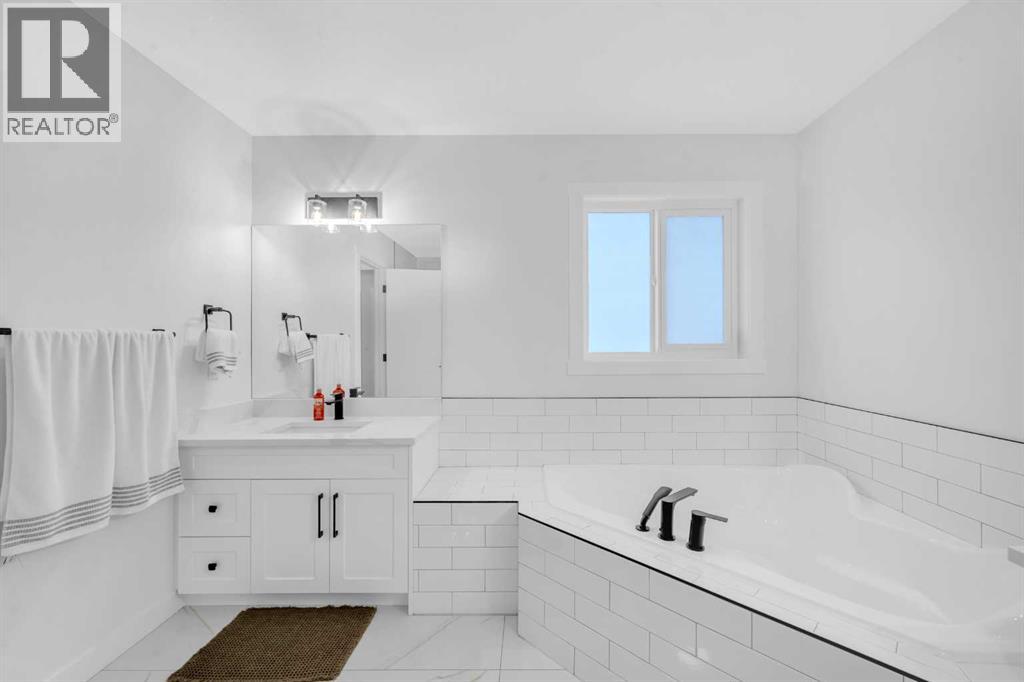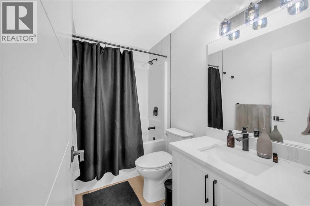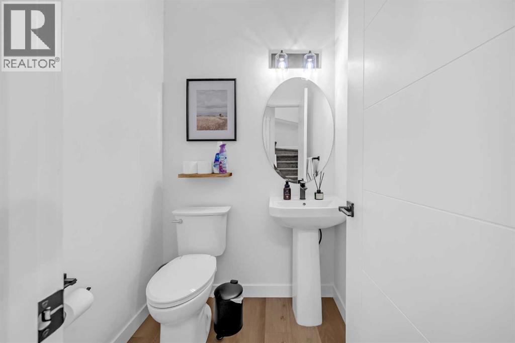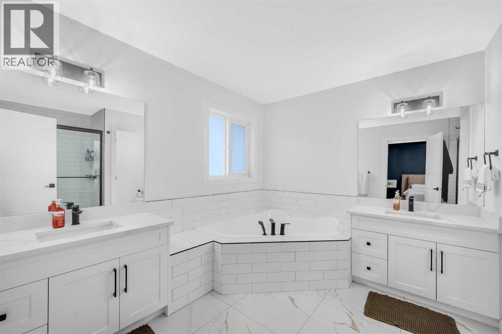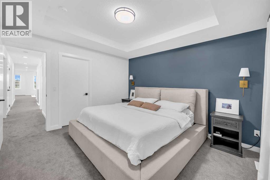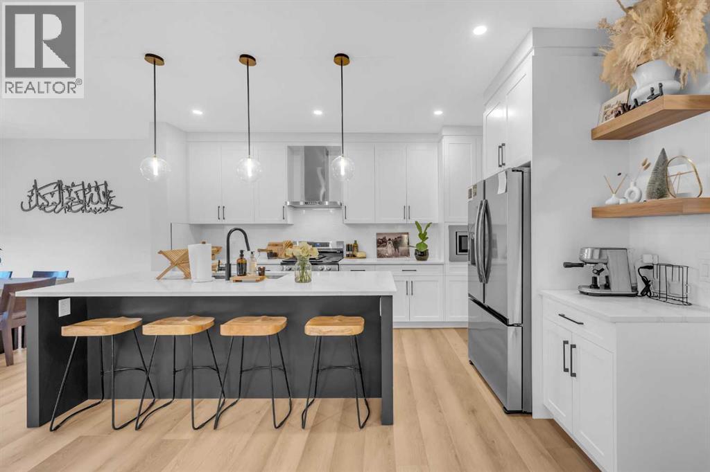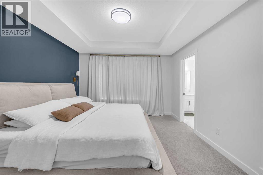 Welcome to this stunning home in Cochrane offering over 2,200 SF of living space. This incredible home is finished top to bottom with beautiful modern finishes and the perfect layout for growing and large families. 3 Full bedrooms, Two and a half bathrooms, office and an enormous Bonus room. Bright and well lit with 9' ceilings and located on a quiet road with breath taking mountain views make this home a standout it growing Cochrane. Step on to the main floor which offers a huge open concept kitchen with a massive island, spacious dining room and fireplace lit living room. Not to mention the private office on the main floor for the professionals and an added guest bathroom. The finishes in this home are beautiful and its evident from the photos. The kitchen has Bone white shaker cabinets, pearl sheen countertops and sleek subway style backsplash. The living room has a clear stone fireplace with Bluetooth audio and speaker against an Azure blue mantel. Milk glass doors in the office give it the privacy needed for professionals when working from home and the floor is adorned with dessert gold vinyl flooring providing the home with a warm atmosphere. Upstairs is just as impressive. The bonus room is a staggering 20 x 15 feet! Fitting several couches, tables, and even desks for additional office space as well as entertainment. The master bedroom is complete with a walk in closet and a 5 piece ensuite bathroom. The Ensuite comes complete with "his and hers" vanities, deep soaker tub and oversized custom shower. Lush carpets on the second floor provide the second floor with perfect comfort. Mas sive Vinyl windows pour light into the spacious living space. The HRV system in the home provides constant clean air circulation to keep the air quality high to compliment the mountain air of Cochrane. The exterior has a royal presence with Navy Blue Vinyl siding, board and batten and rustic wood grain features to round out the long lasting and durable exterior. The basement is wide open and briming with potential and has its own separate entrance. Dont miss your chance to own this beautiful home in Cochrane with local access to skiing, hiking, horseback riding, and camping. A robust economy, Alberta mountains and one of the most affordable places in AB. Location, size, and finishes. This home is a gem. (id:55577)