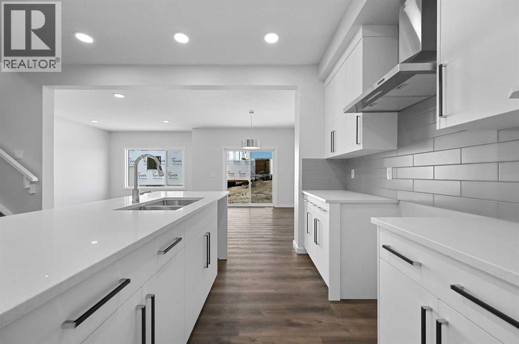 The Amari by Bedrock Homes combines modern style with practical design in the heart of Cochrane. Offering 2,270 sq. ft. of beautifully crafted living space, this 4-bedroom, 3-bathroom home features west-facing mountain views from the upper floor and a separate entrance to the basement, making it an ideal choice for families of all sizes. From the striking open-to-above foyer, you're welcomed into a main floor that includes a full bedroom and bathroom that is perfect for guests, a home office, or multi-generational living. The open-concept main level features a central kitchen, bright dinette, corner pantry and spacious great room at the rear of the home, ideal for entertaining. A mudroom that provides direct access to the double attached garage for added convenience. Upstairs, enjoy a central bonus room, two secondary bedrooms, a full bathroom, laundry room, and a private primary suite complete with a large walk-in closet and spa-inspired ensuite. A full basement awaits your personal design touches, the yard offers outdoor space for enjoyment. Thoughtfully designed for today’s lifestyle, this home truly checks all the boxes. (id:55577)