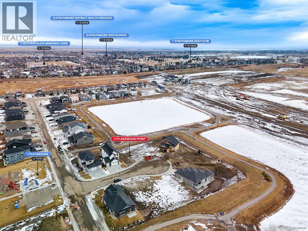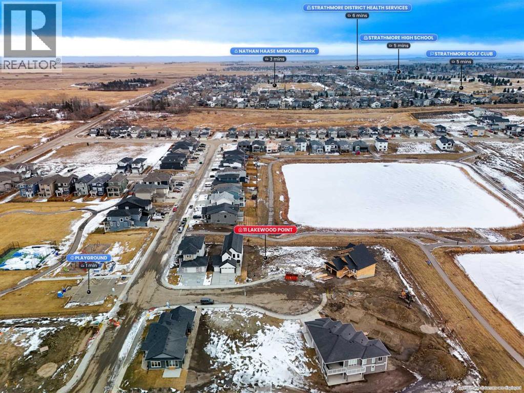 Welcome to an exceptional opportunity in Lakewood, one of Strathmore’s most picturesque and thoughtfully designed communities. Built by Dhaduk Homes, this future bungalow sits quietly in the cul-de-sac of Lakewood Point, backing directly onto the pond with peaceful east facing water views and west facing curb appeal out front. Life in Lakewood is centered around connection and the outdoors, with scenic walking paths, beautiful canal and water views, playground, and community spaces including pickleball courts, all designed to make it easy to enjoy fresh air, movement, and time with neighbours and family. A welcoming front porch sets the tone, inviting you into a home designed for both comfort and connection. The spacious foyer offers an immediate sense of arrival, with a bedroom and full bathroom nearby that is perfect for guests, family, or a home office. As you move into the heart of the home, the space opens into a bright and airy living room. The living room, kitchen, and dining area flow seamlessly together, creating an ideal setting for everyday living and entertaining. The kitchen features a large island, a generous walk in pantry, and easy access to the dining area, where patio doors lead out back toward the pond, making indoor outdoor living feel effortless. Tucked privately at the rear of the home, the primary suite is designed as a relaxing retreat. It includes a walk in closet and a beautiful ensuite with an enclosed shower and a freestanding tub, offering a spa like experience at the end of the day. The double attached garage gives you flexibility for storage, hobbies, or larger vehicles. The basement will be fully developed, with 3 additional bedrooms, 2 bathrooms, a full bar area, a utility room, and a large entertainment area that connects to a covered patio. Construction has not yet begun, with an estimated build timeline of 6 to 8 months to possession once underway. This is a rare chance to get in early, personalize your selections, and build a home that perfectly matches your lifestyle in a quiet, water backing location, surrounded by the best of Lakewood living. (id:55577)