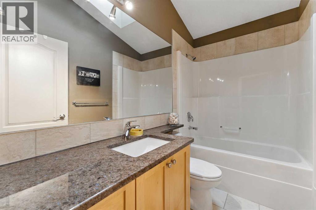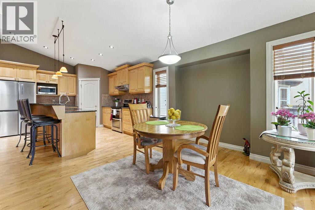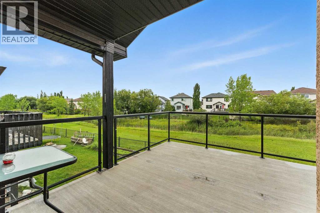Welcome to 110 West Creek Springs — a beautifully maintained walkout bungalow located in the highly sought-after community of West Creek! Perfectly situated on an over 5,400 square foot south-backing lot, this home offers over 2,900 square feet of living space across both levels.Inside, you’ll find a thoughtfully designed open-concept layout featuring maple hardwood flooring, expansive tinted windows, sky lights that flood the home with natural light, and a seamless flow between the living, dining, and kitchen areas. The inviting living room is highlighted by a tile-surround gas fireplace below vaulted ceilings, while the chef-inspired kitchen boasts granite countertops, solid wood cabinetry, stainless steel appliances, and a walk-through pantry.The main level includes a spacious primary suite complete with walk-in closet, spa-like ensuite with separate tub and stand-up shower, along with another additional bedroom/office and and secondary 4-piece bathroom. A recently updated Duradek vinyl balcony provides plenty of additional outdoor living space and includes glass railings and a gas line for BBQ's.The fully finished walkout lower level extends your living space, offering in-floor heating, a bright rec room, secondary gas fireplace, large windows along with 2 bedrooms, 4-piece bathroom, and a very generous storage area. Step outside to enjoy your sun soaked, south exposed backyard with exposed aggregate patio, garden bed, and direct access to the interconnected canal system — an ideal retreat for both relaxation and entertaining.Additional highlights include: central air conditioning, dual hot water tanks, sump pump, water filtration, hot tub electrical rough in, and a central vacuum system.The location is unbeatable — close to schools, parks, shopping, amenities, Lakeside Golf Club, and only a couple minutes to Chestermere Lake.This is a rare opportunity to own a turnkey walkout bungalow in one of Chestermere’s most family-friendly neighborhoods. Boo k a private showing with your favorite Realtor® today! (id:55577)