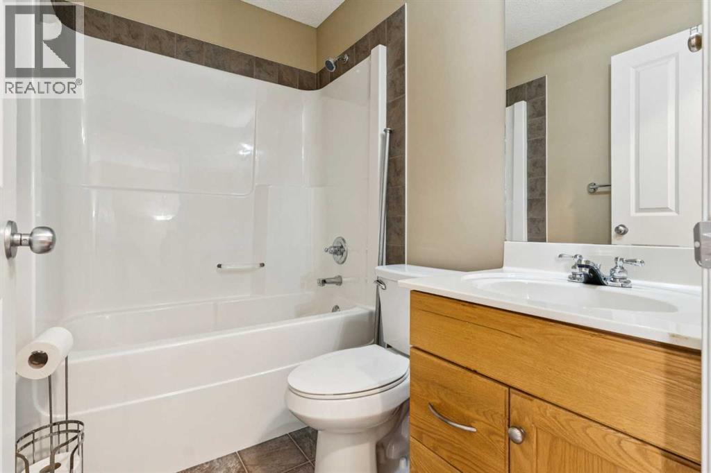 Welcome to the Patios of Sagewood! This lovely corner unit townhome with front porch charm features 3 spacious bedrooms and 2 titled parking stalls. The main floor is bright and open - being an end unit means extra windows with lots of natural light. The kitchen and dining area are open concept with laminate flooring. The kitchen boasts stainless steel appliances, an island and a pantry for extra storage. French doors in the dining area lead to your private backyard patio. There is even a front porch where you can sit and watch the kids play. The primary bedroom upstairs has a full ensuite and walk-in closet. There are 2 additional bedrooms upstairs and a second full bath. The basement is unfinished and perfect for storage. Call today! (id:55577)