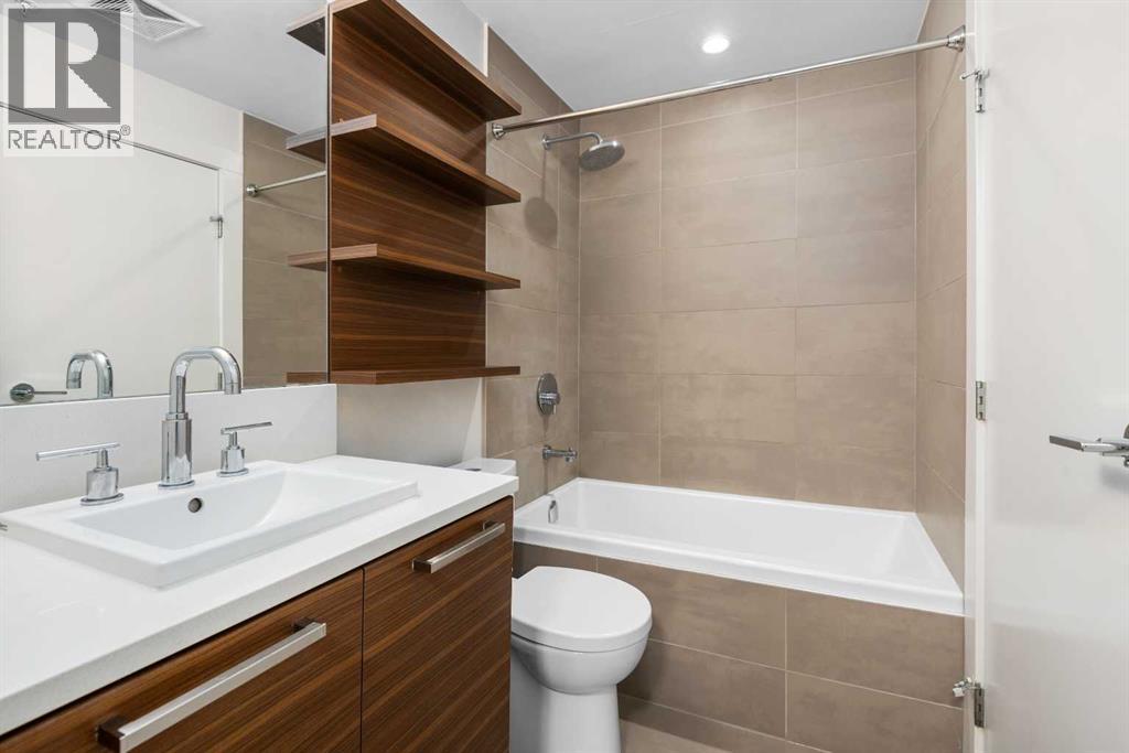 **OPEN HOUSE SAT/SUN 2:00-4:00 This ground floor unit with a fantastic layout includes a must have DEN, unique upgrades, titled parking and convenient storage. The original owners had the builder add a built in pantry/cabinet at end of the kitchen as well as additional shelving in ensuite. The very convenient ground floor access means no elevators and visitors can come directly through the private patio. The unit comes with one title parking stall in the secured underground parking where you will find secure storage for your convenience rather than hauling items through the elevators and hallways. A previous occupant also had security set up on patio for comfort and peace of mind. The bedroom features a walkthrough closet leading to the well appointed 4 piece bath with some custom shelving. With the DEN. the open floor plan, well appointed kitchen, full size washer/dryer and the direct access for your guests this is an amazing opportunity. Bridgeland is known to be one of the best inner city communities in Calgary, This unit sits in one of the best locations within Bridgeland being far enough from Memorial to minimize traffic noise and close enough for an easy walk to the LRT, Zoo, river paths, downtown and several coffee shops and restaurants and shops. Vacant and available for possession at your convenience. (id:55577)